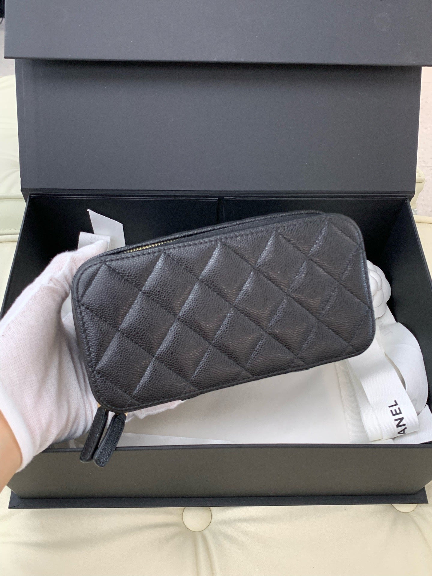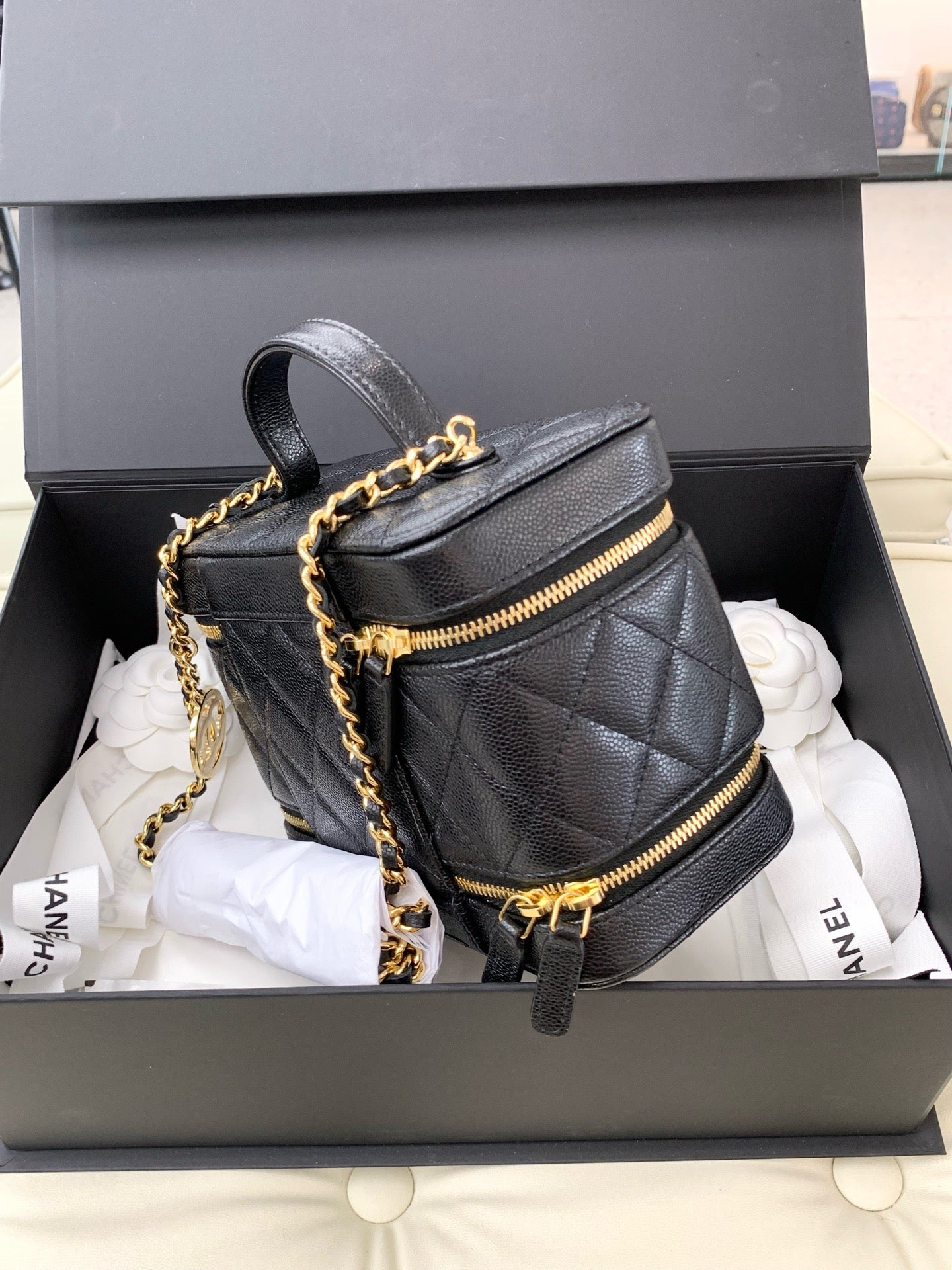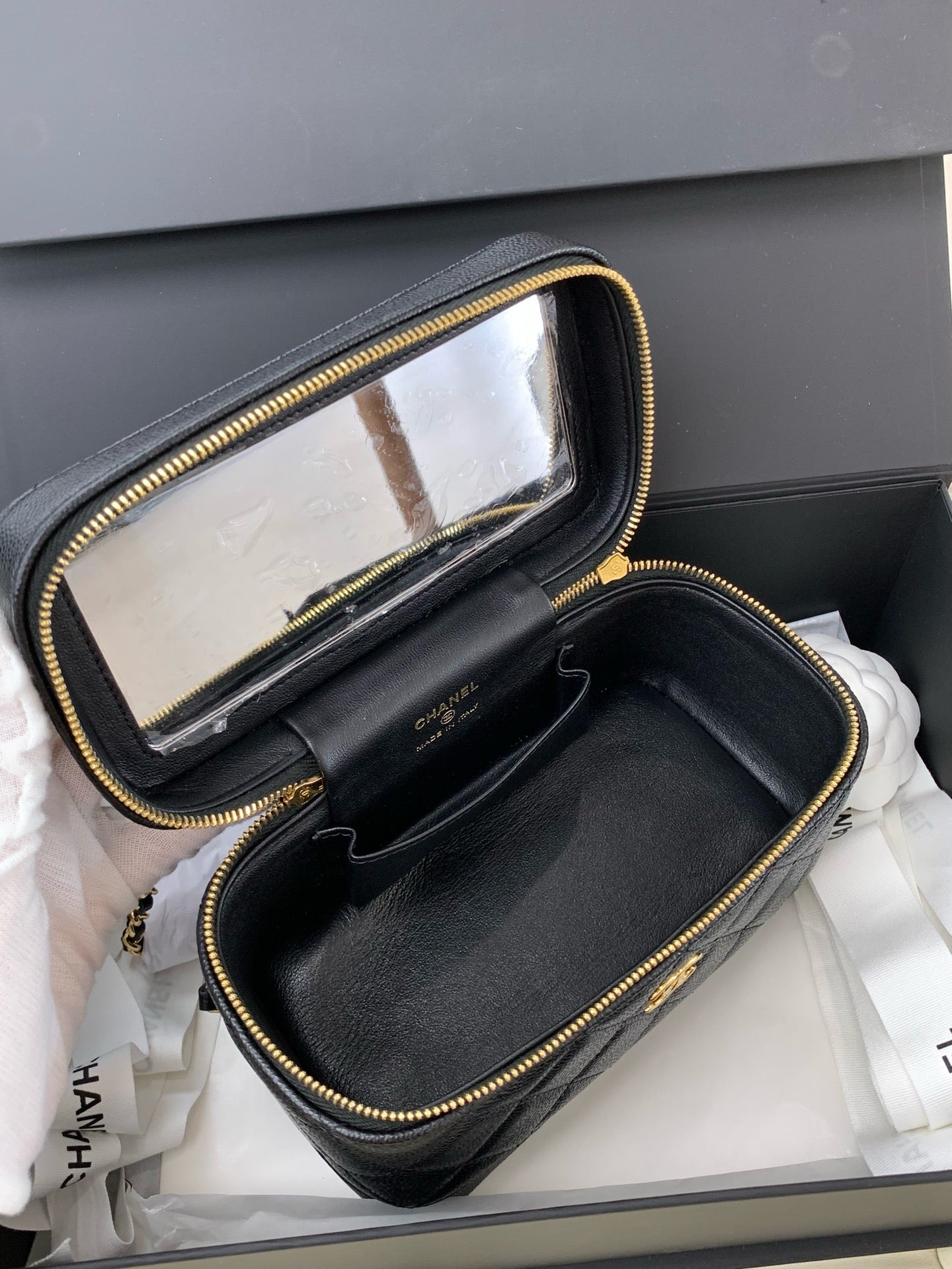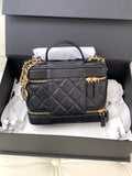 Chanel quilted vanity case with handle, made of grained calfskin, black.