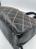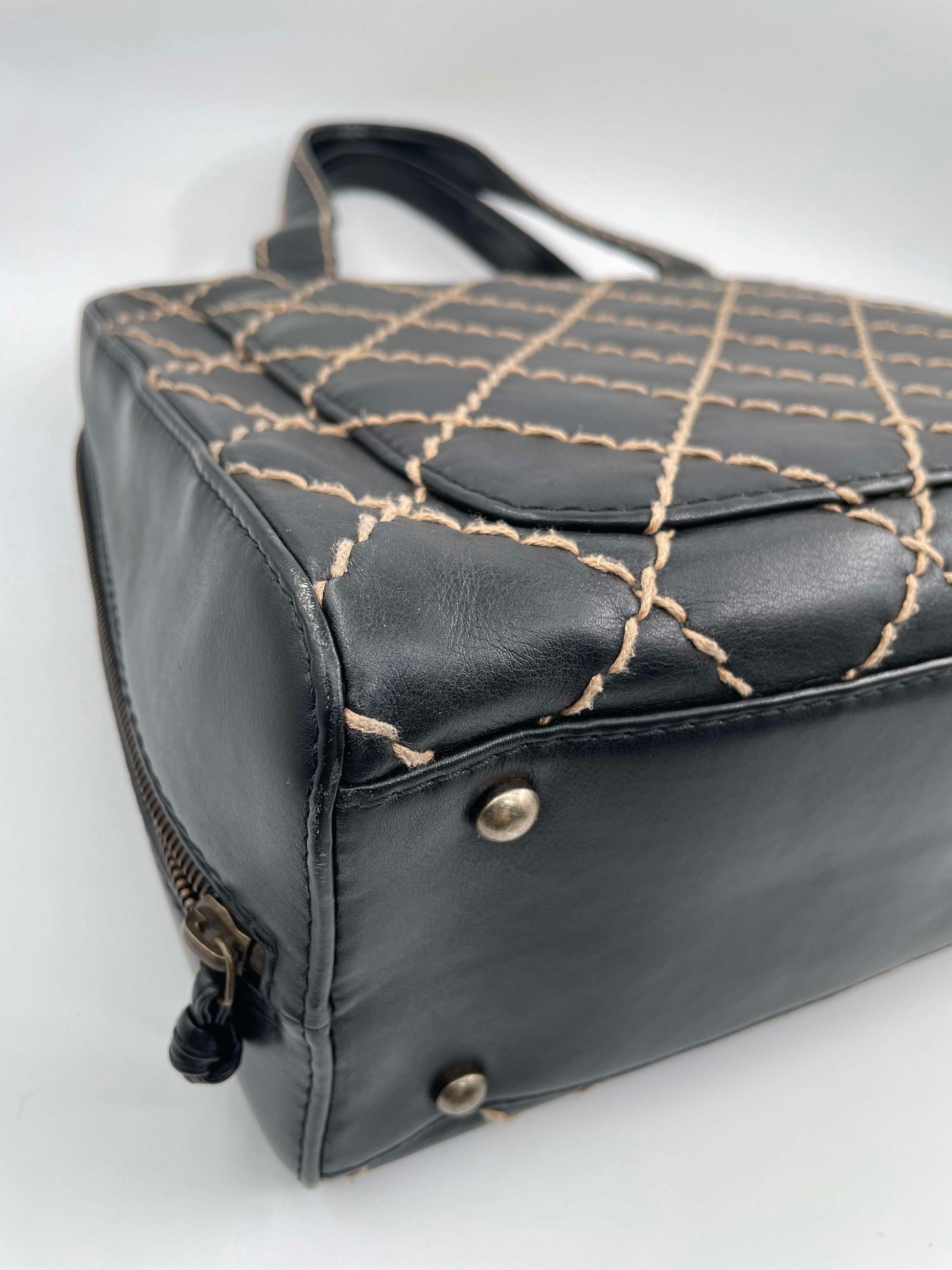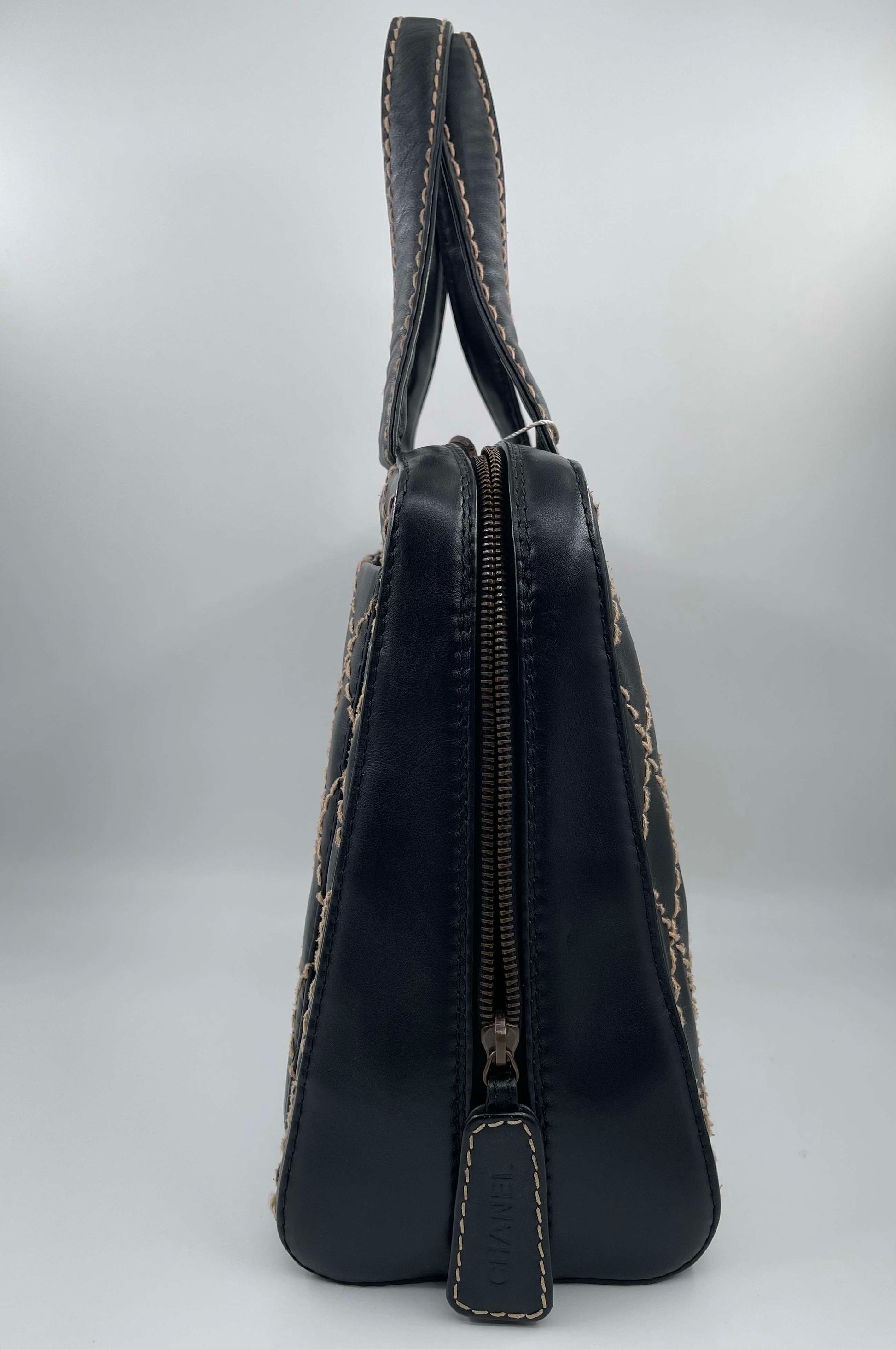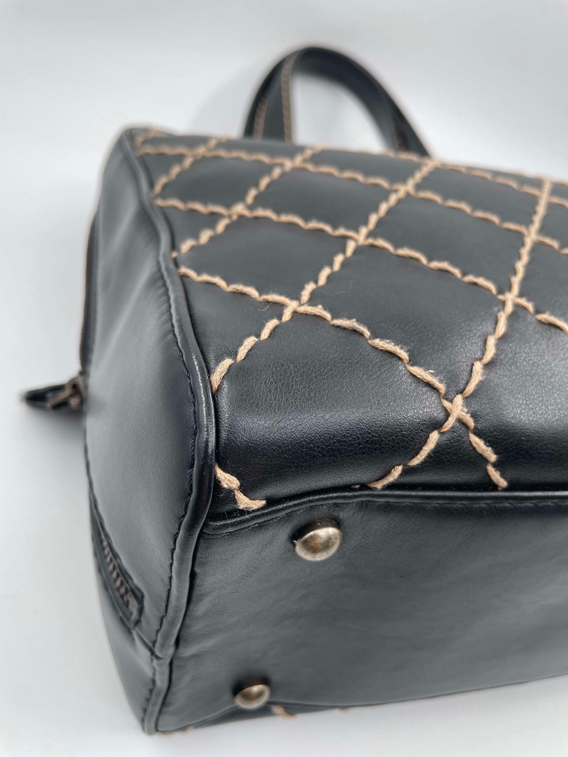 CHANEL VINTAGE BOSTON HANDBAG Wild Stitch Black Beige Leather