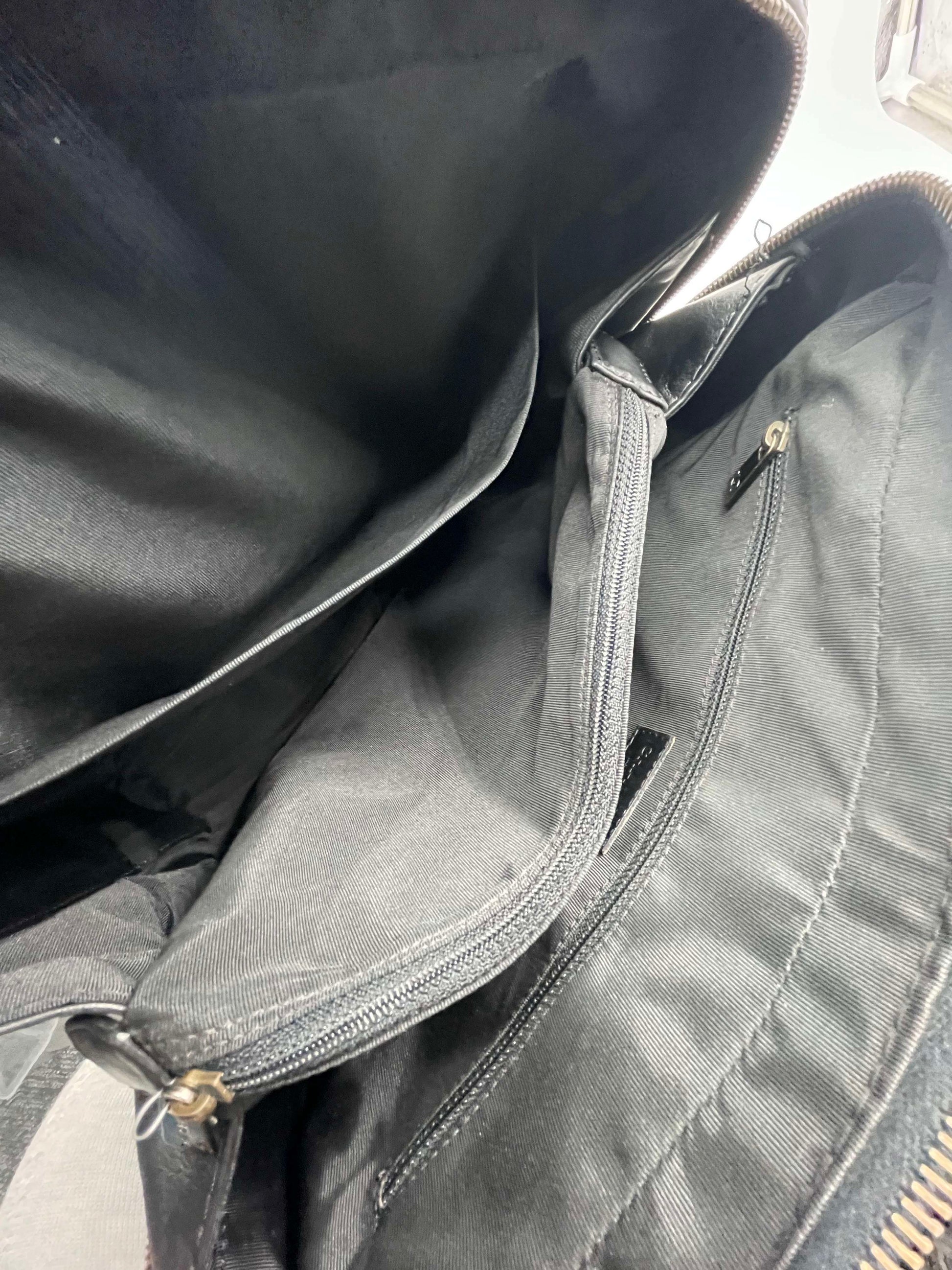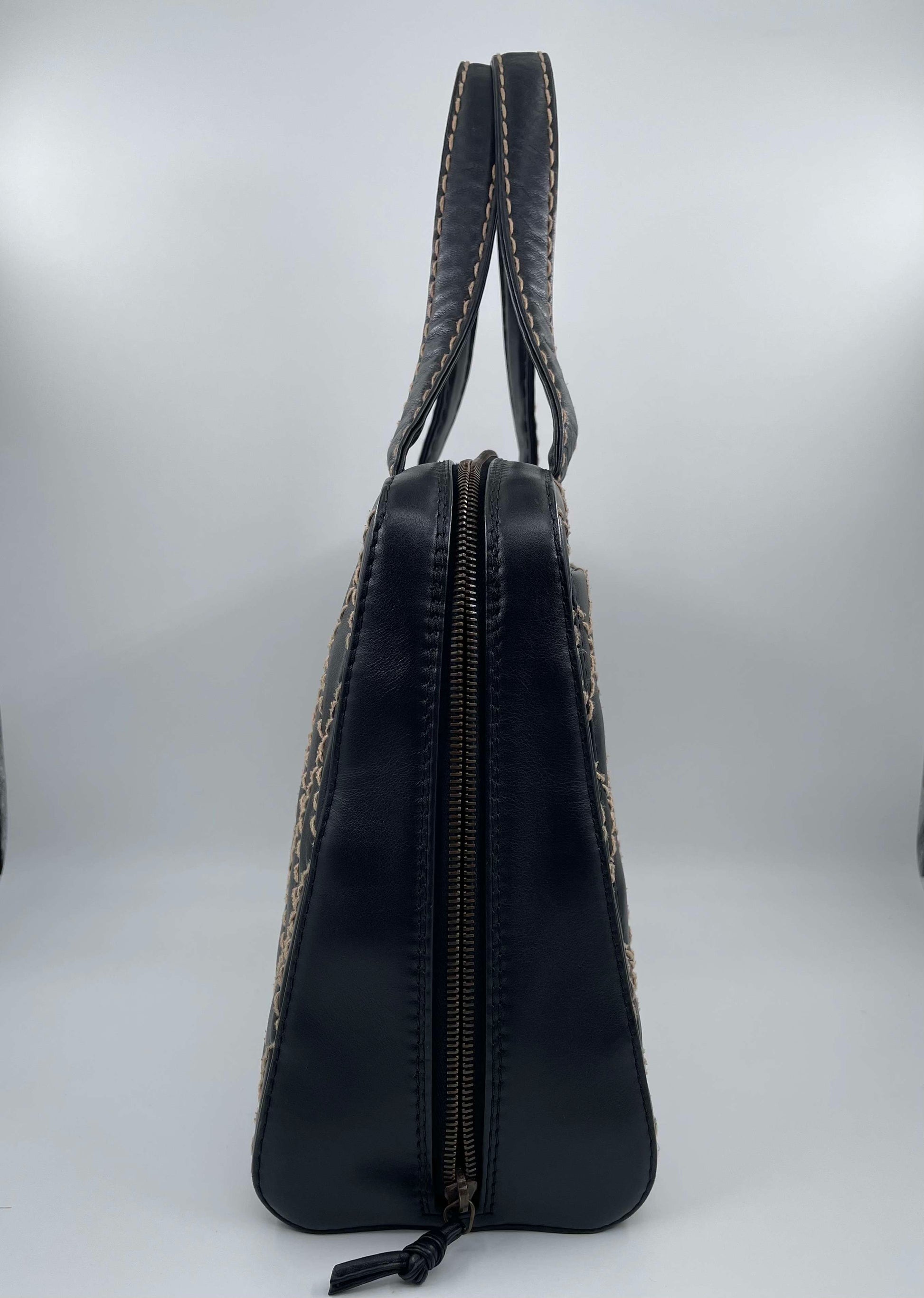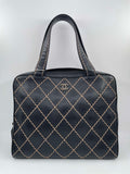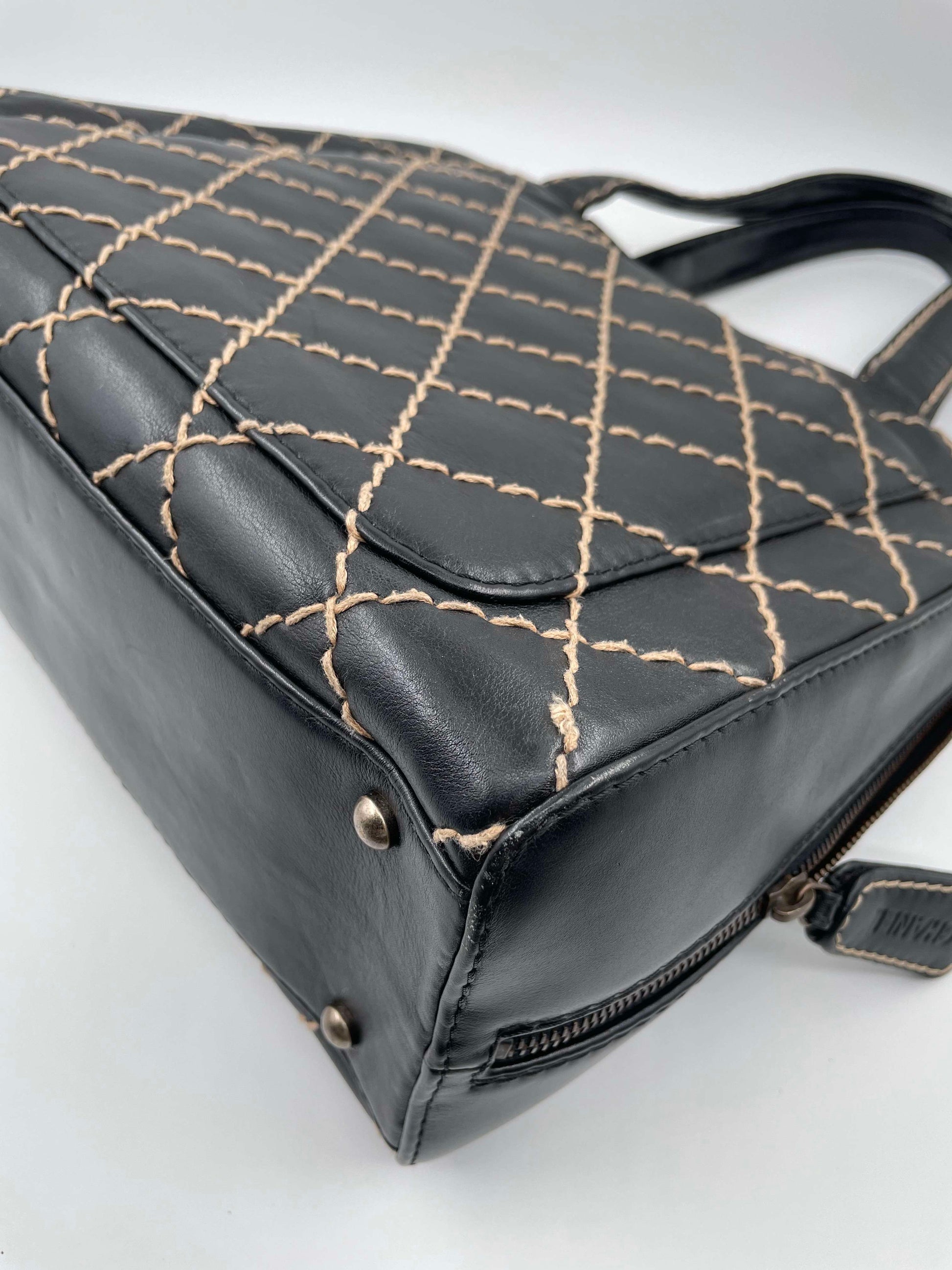 CHANEL VINTAGE BOSTON HANDBAG Wild Stitch Black Beige Leather