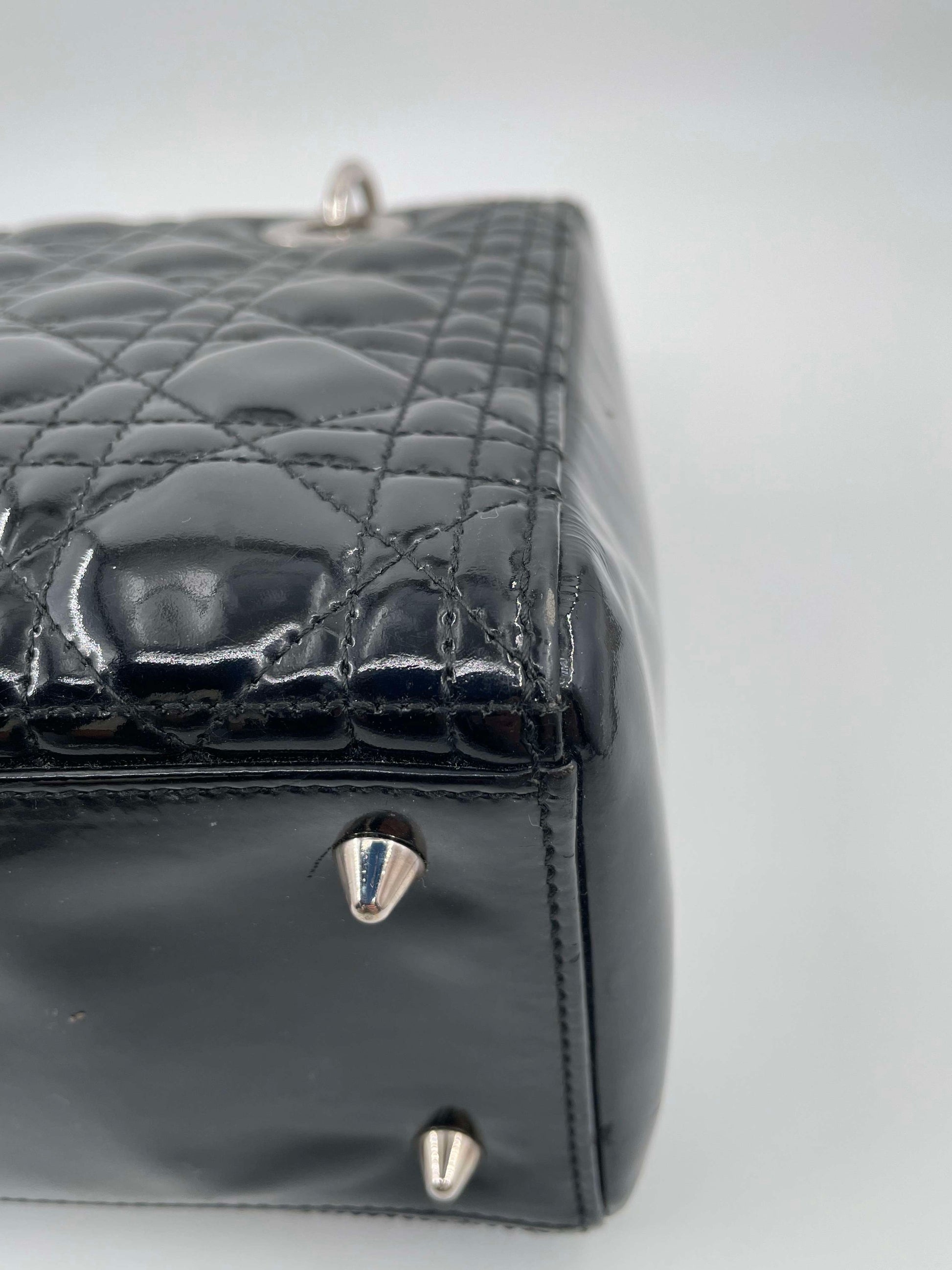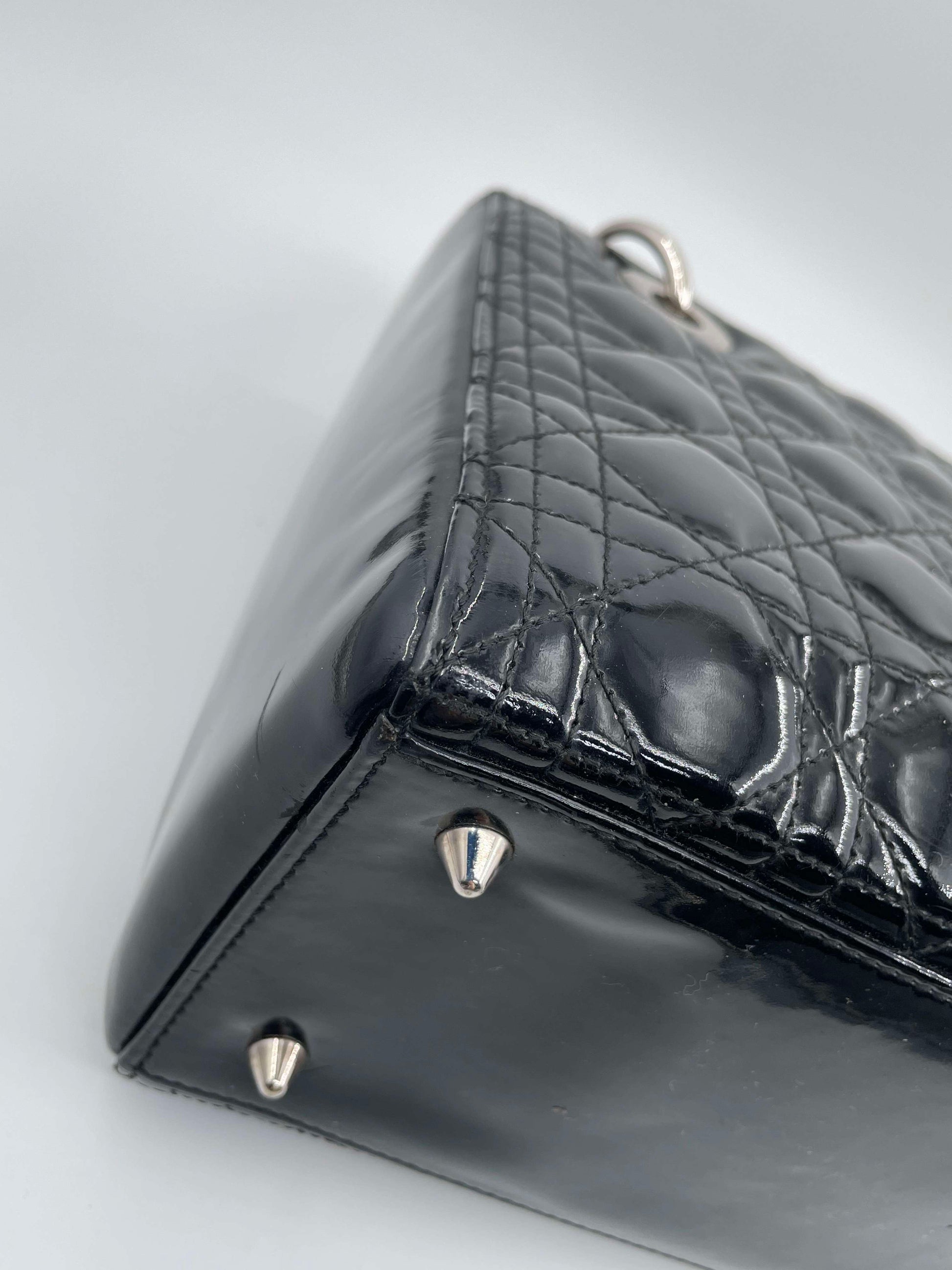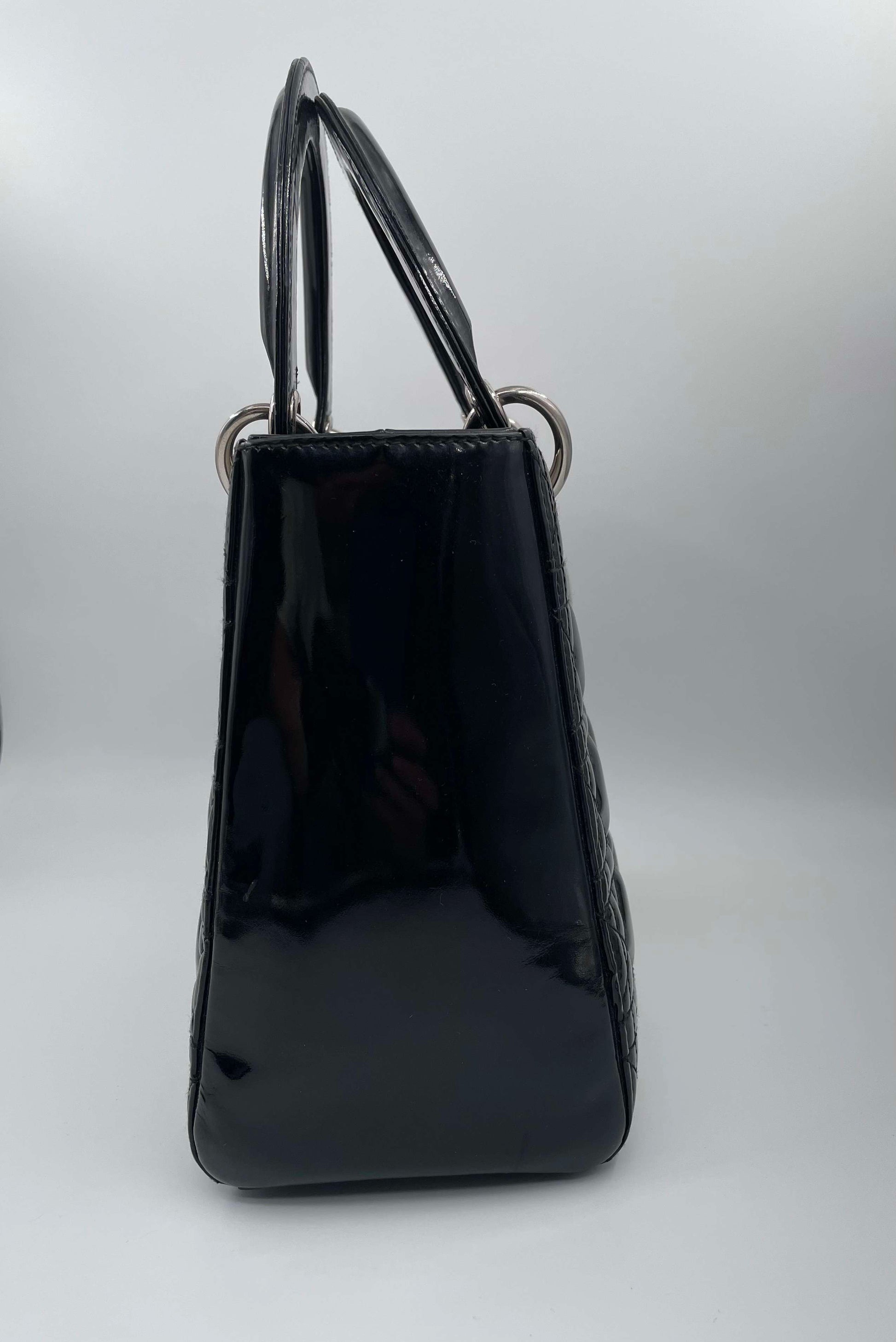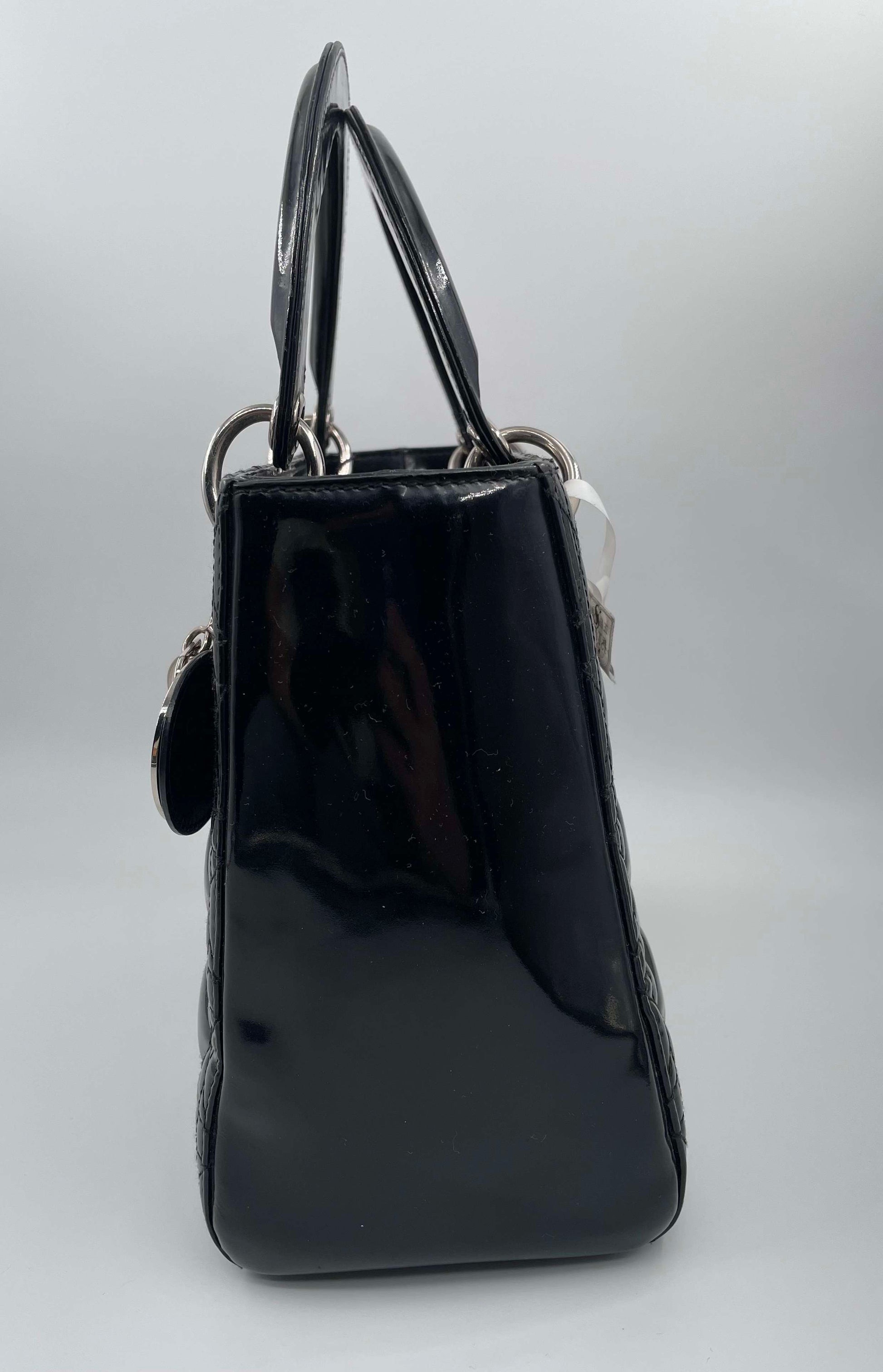 Christian Dior Black Patent Medium Lady Dior Handbag