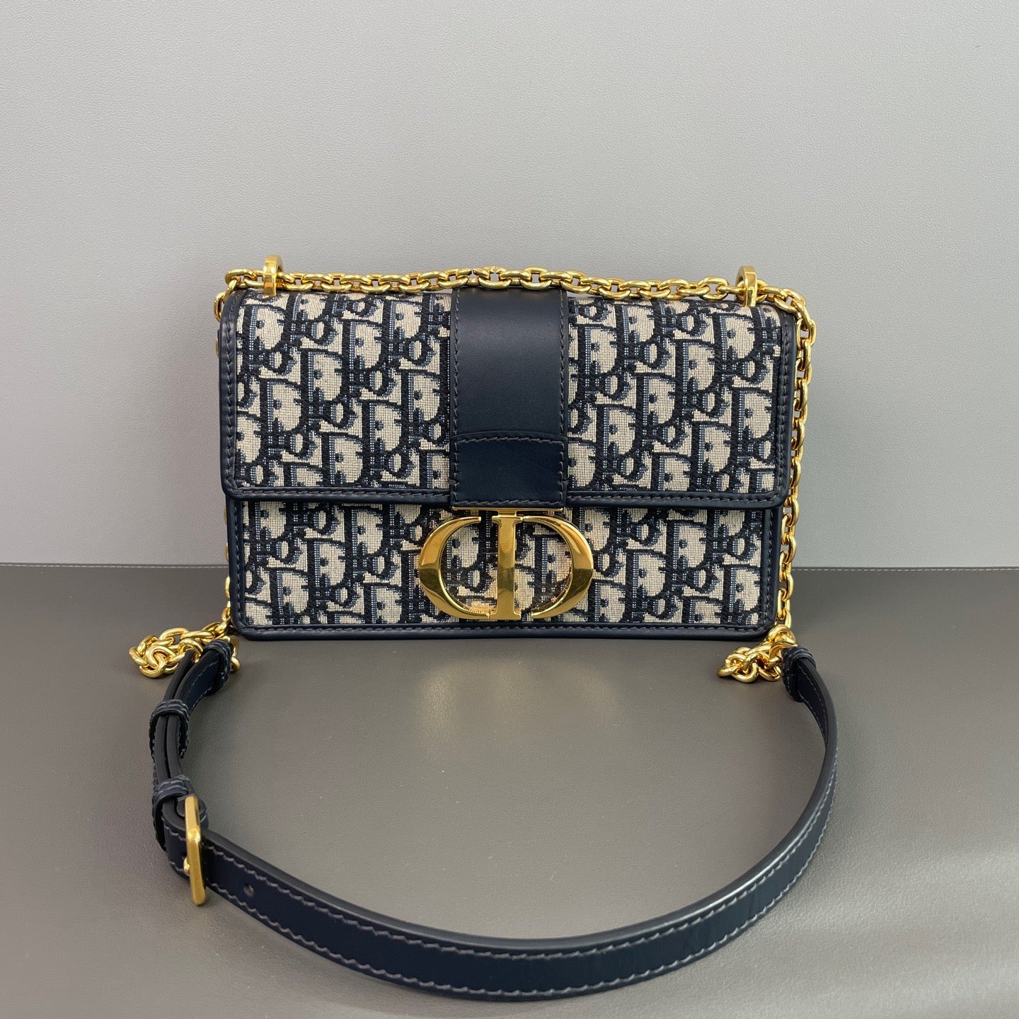 Christian Dior Oblique 30 Montaigne Chain Flap Bag, Blue