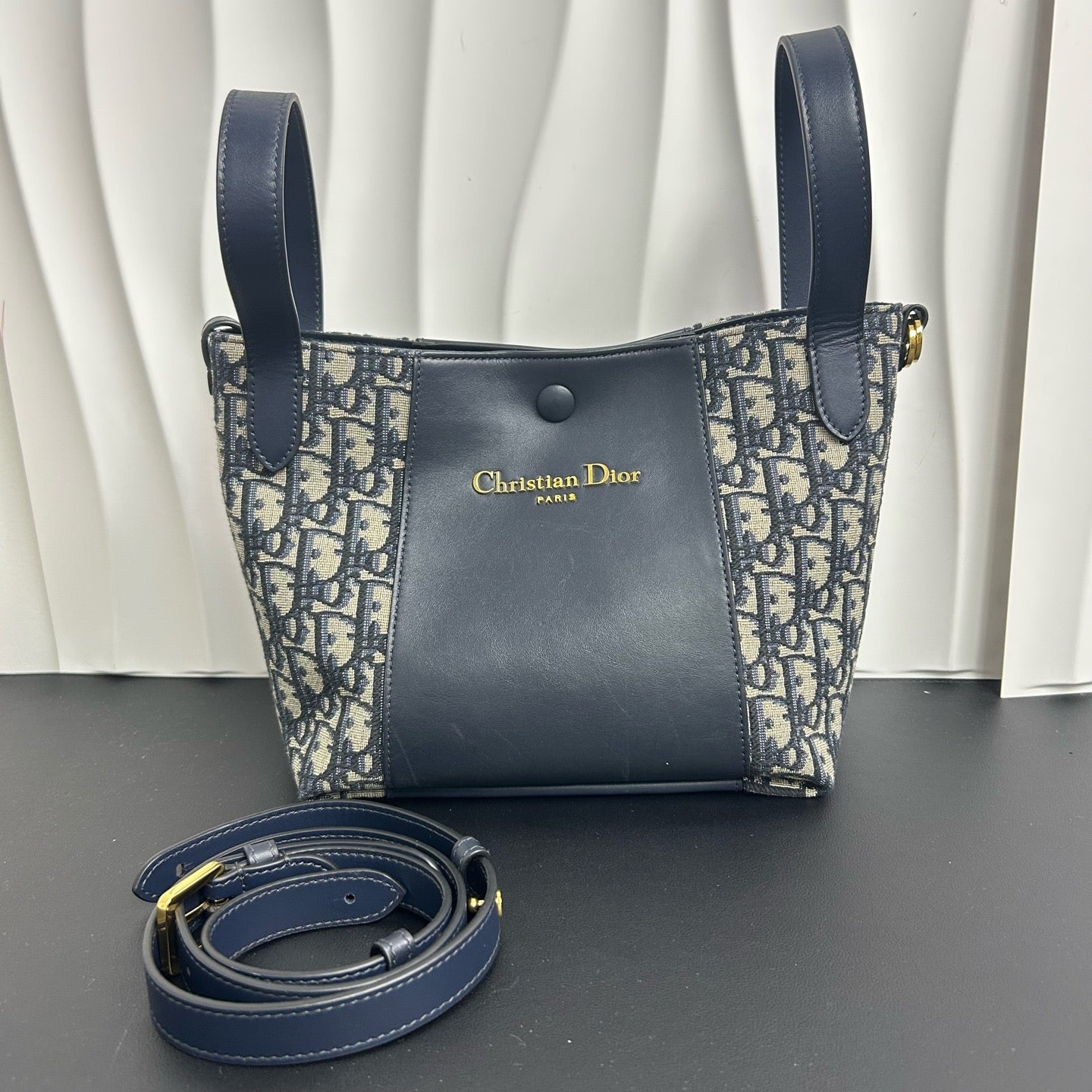 Christian Dior Oblique medium classic bucket bag in calfskin, blue