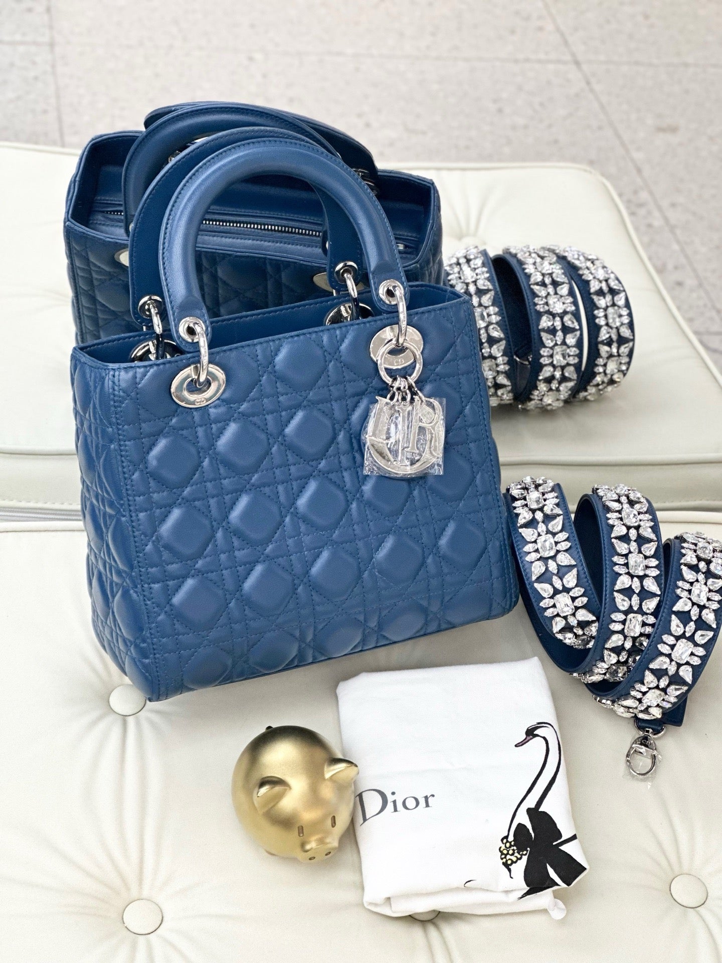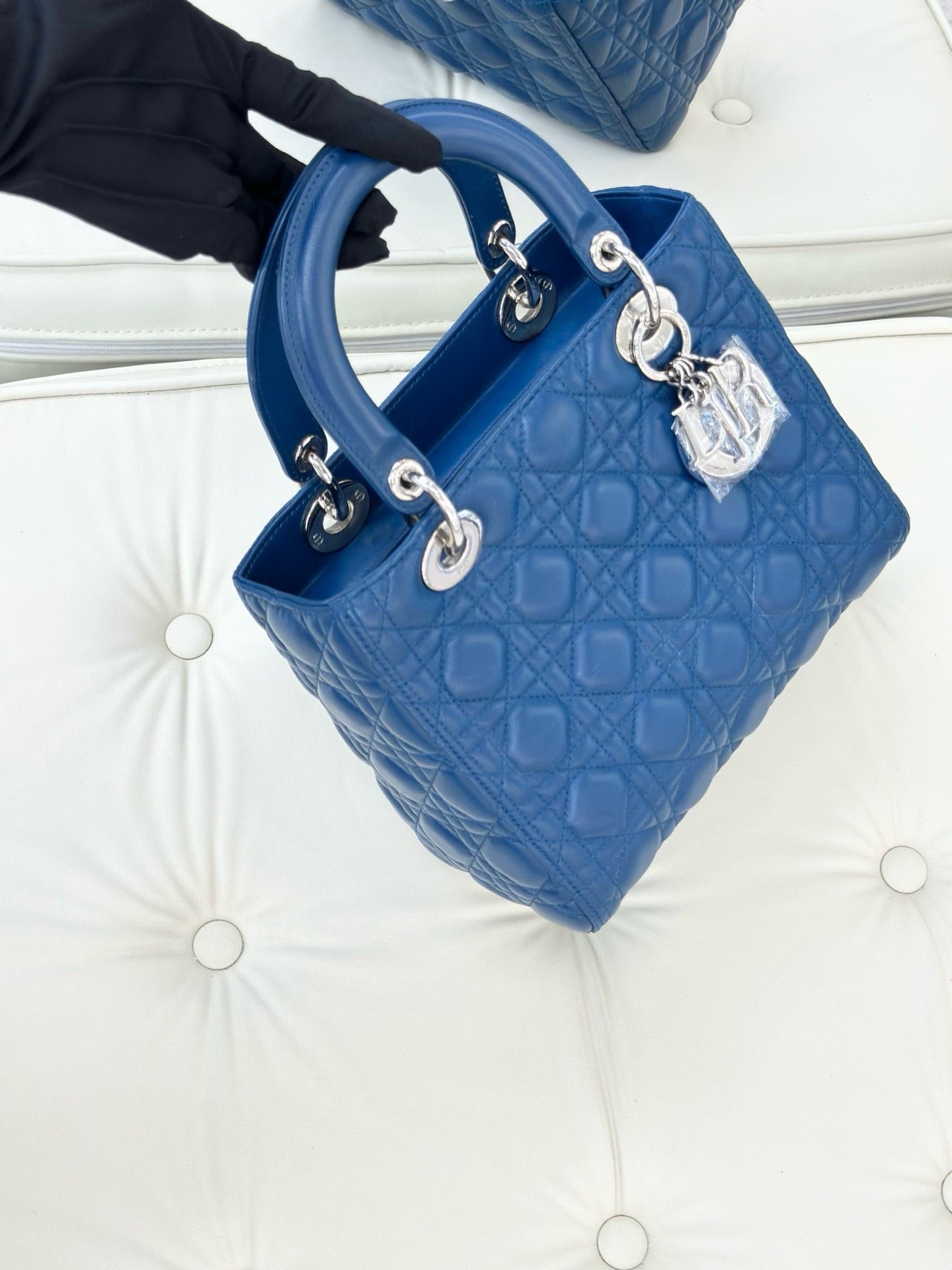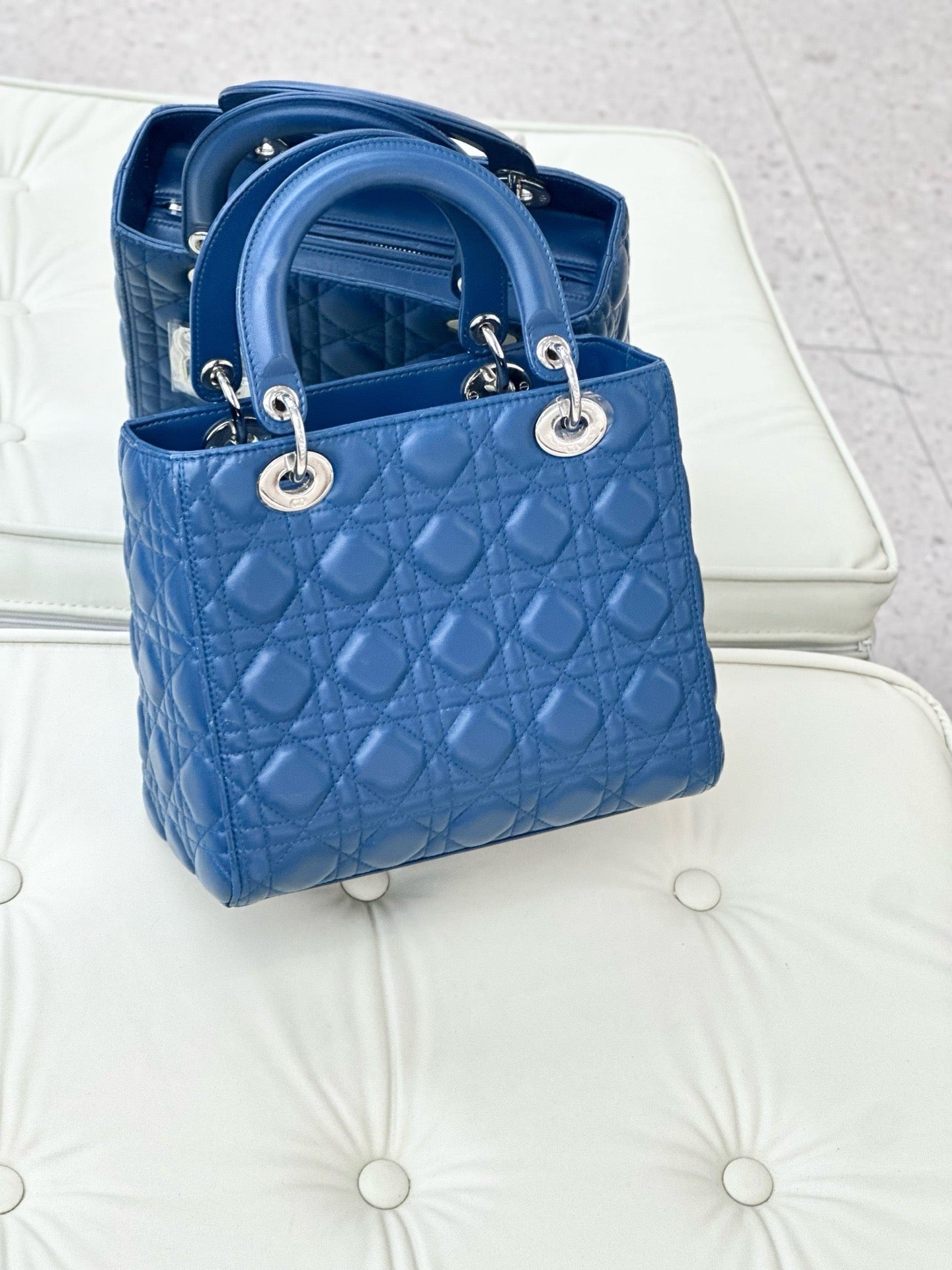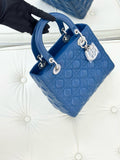 Dior Blue Lambskin Cannage Medium Lady Dior