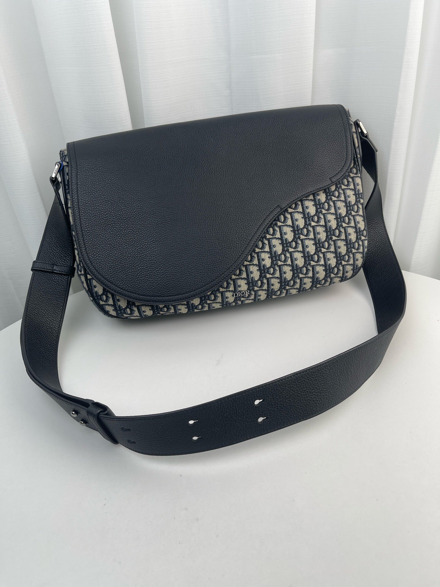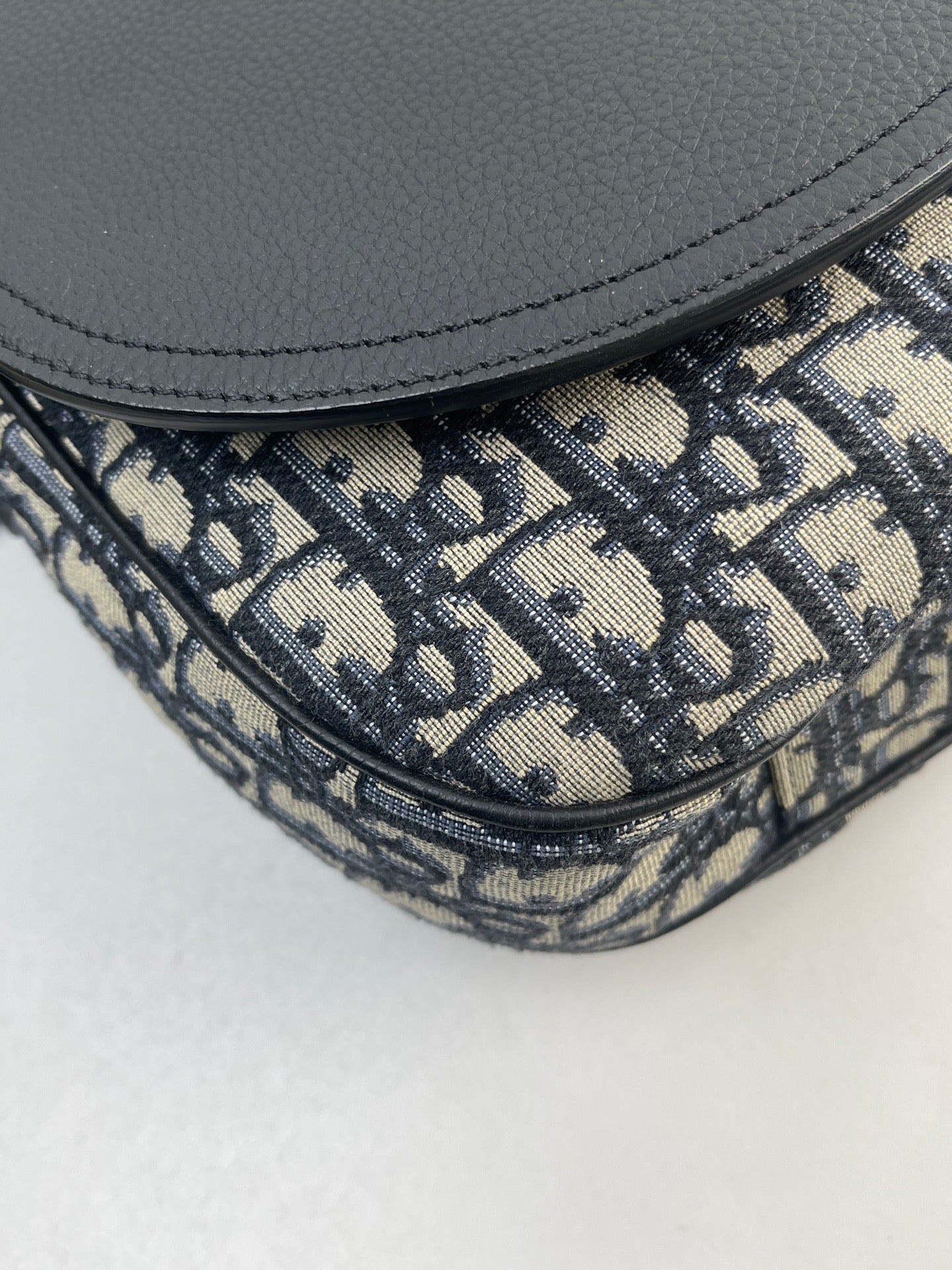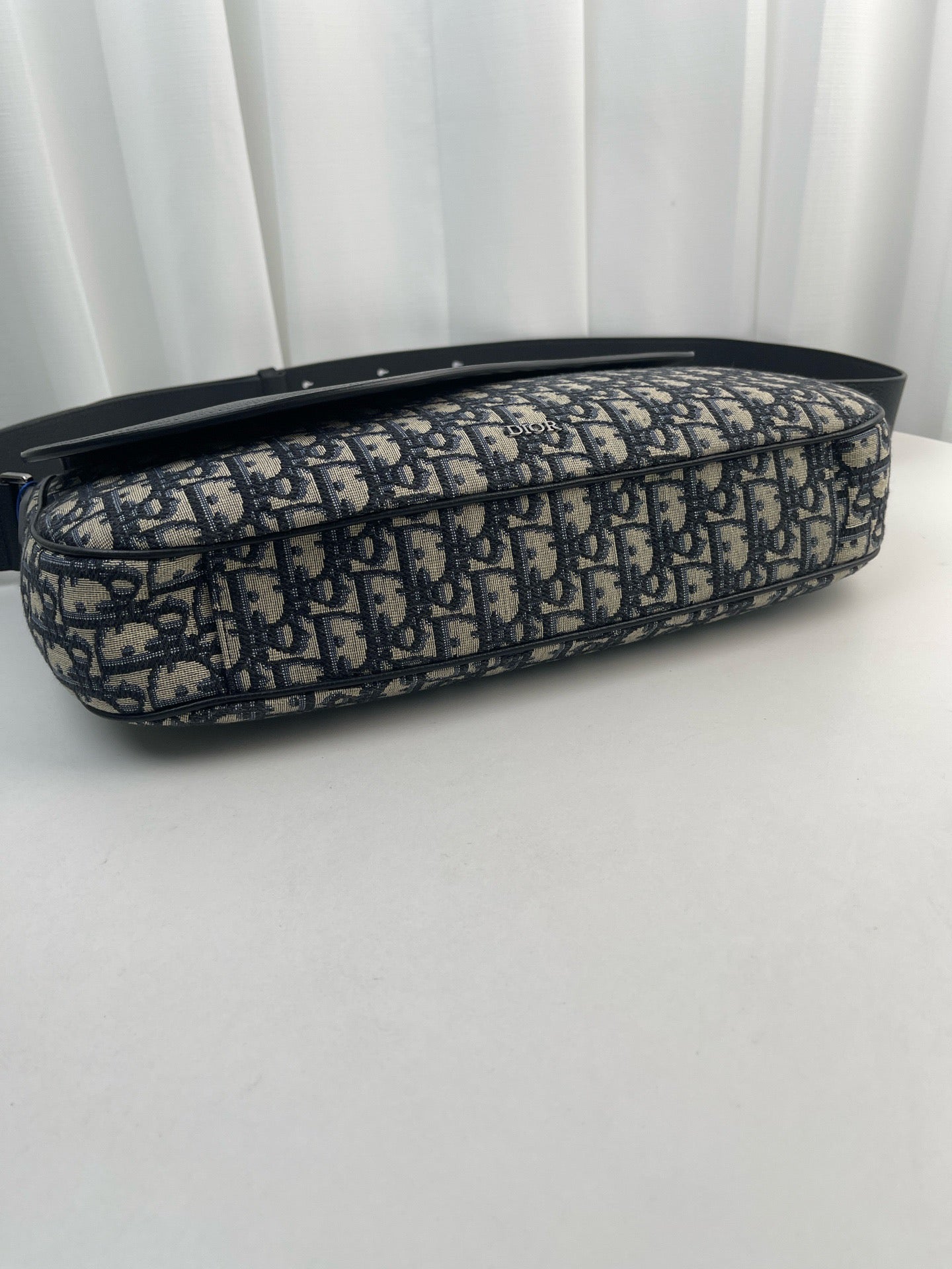 Dior Saddle Messenger Bag, Jacquard Canvas, Beige/Blue