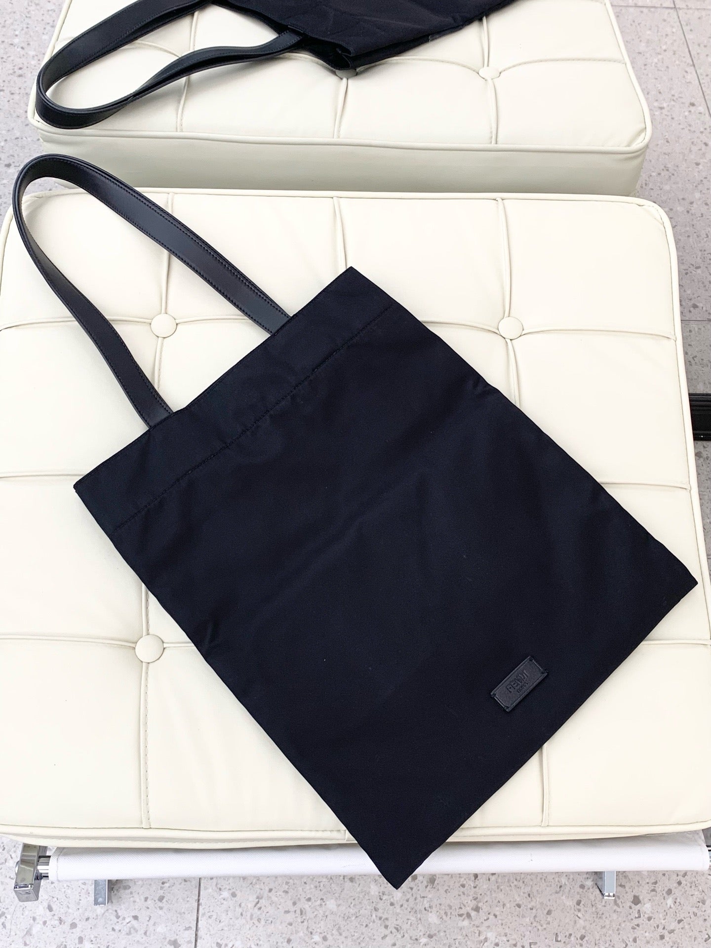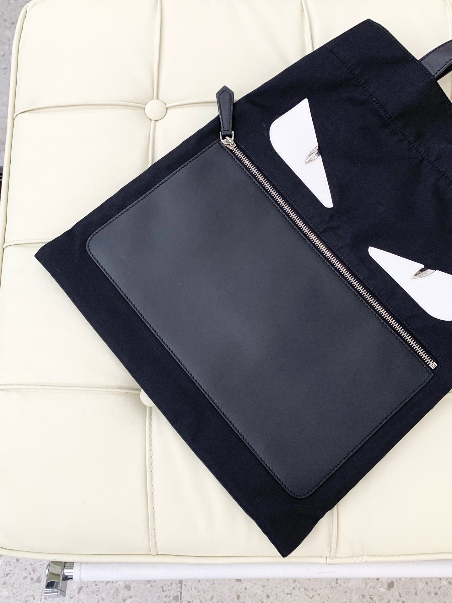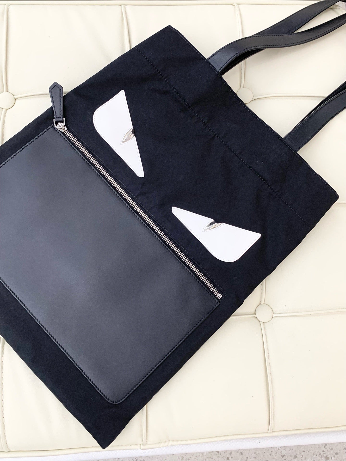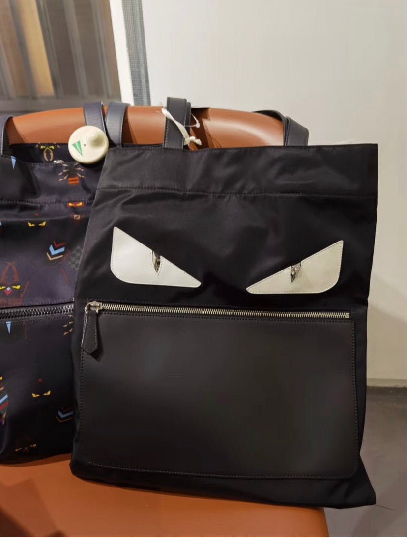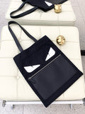FENDI Monster Logo Canvas Tote Bag, Black and Silver Shoulder Bag, Classic Style