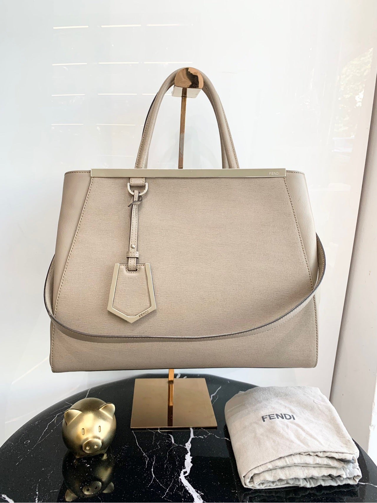 Fendi Tortora Vitello Leather Medium 2Jours Elite Handbag
