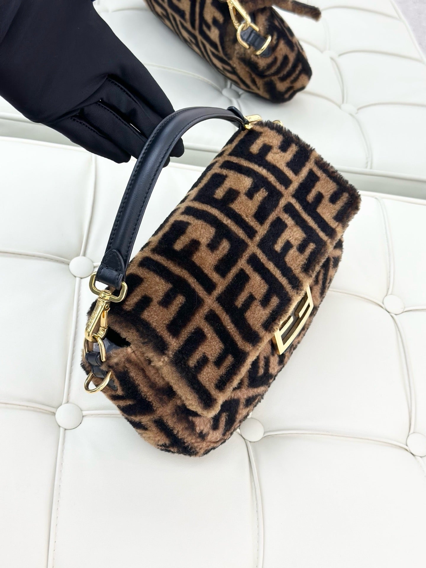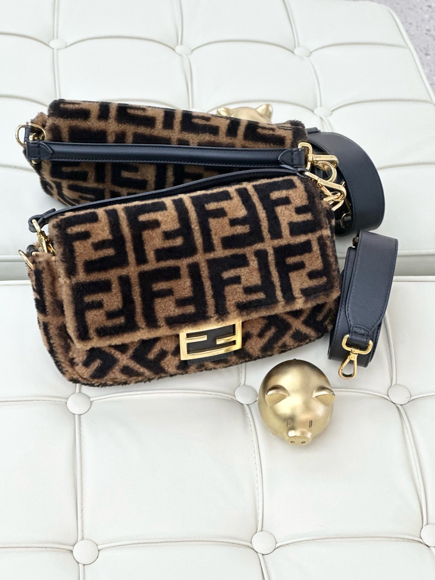 FENDI Zucca Baguette Brown Plush Reversible Bag