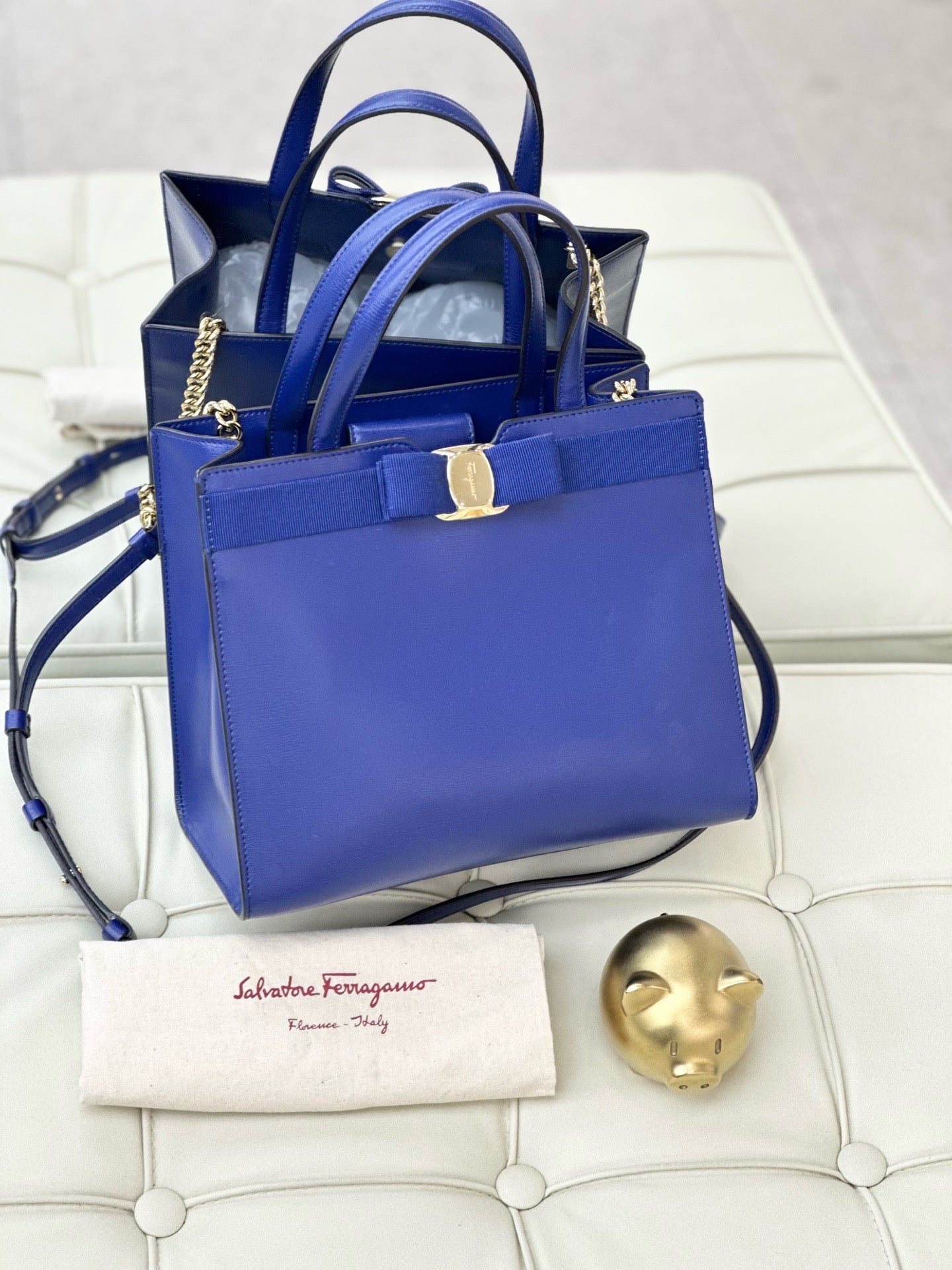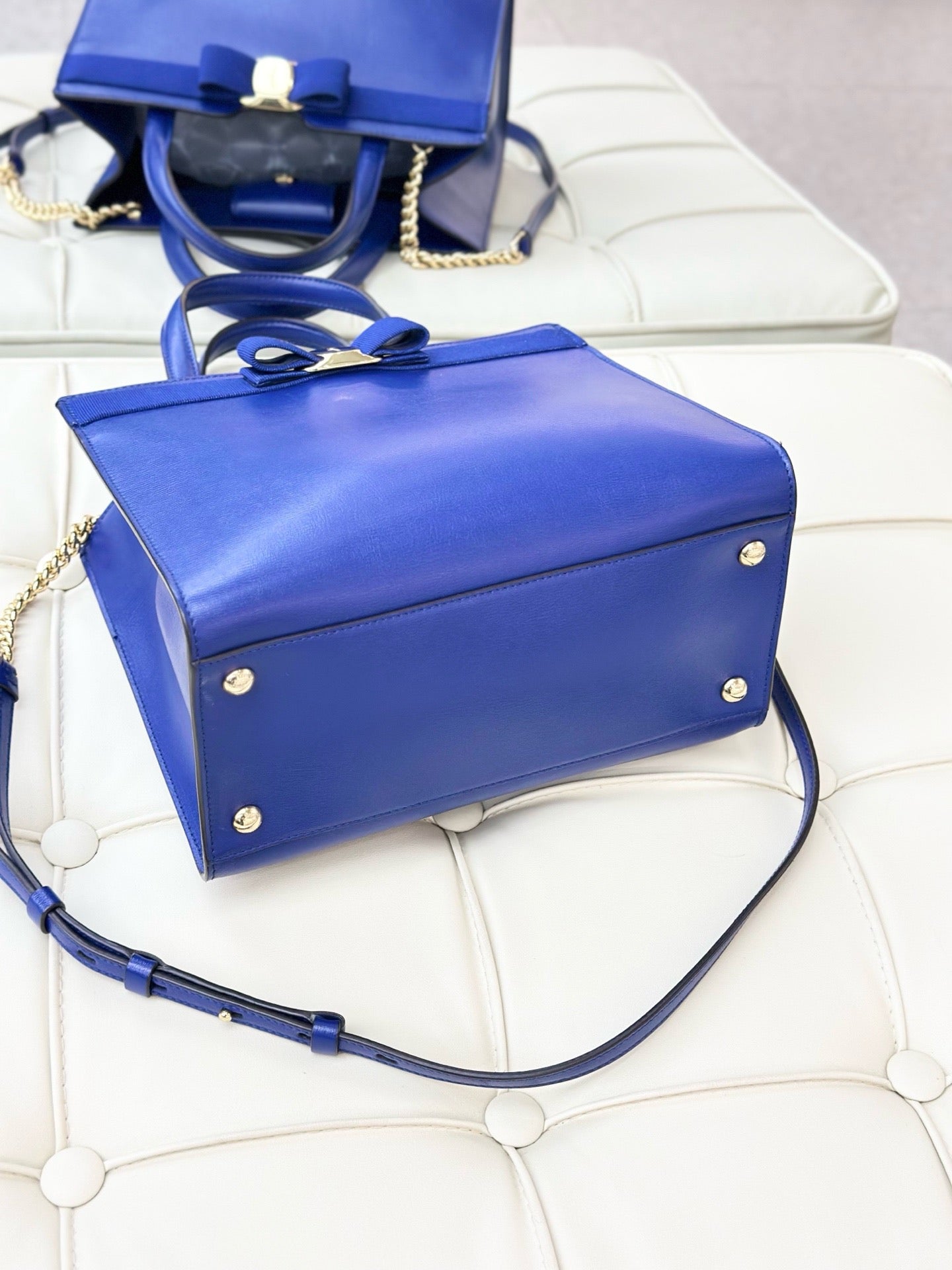 Ferragamo Vara series blue-purple/electric blue bow gold buckle tote bag
