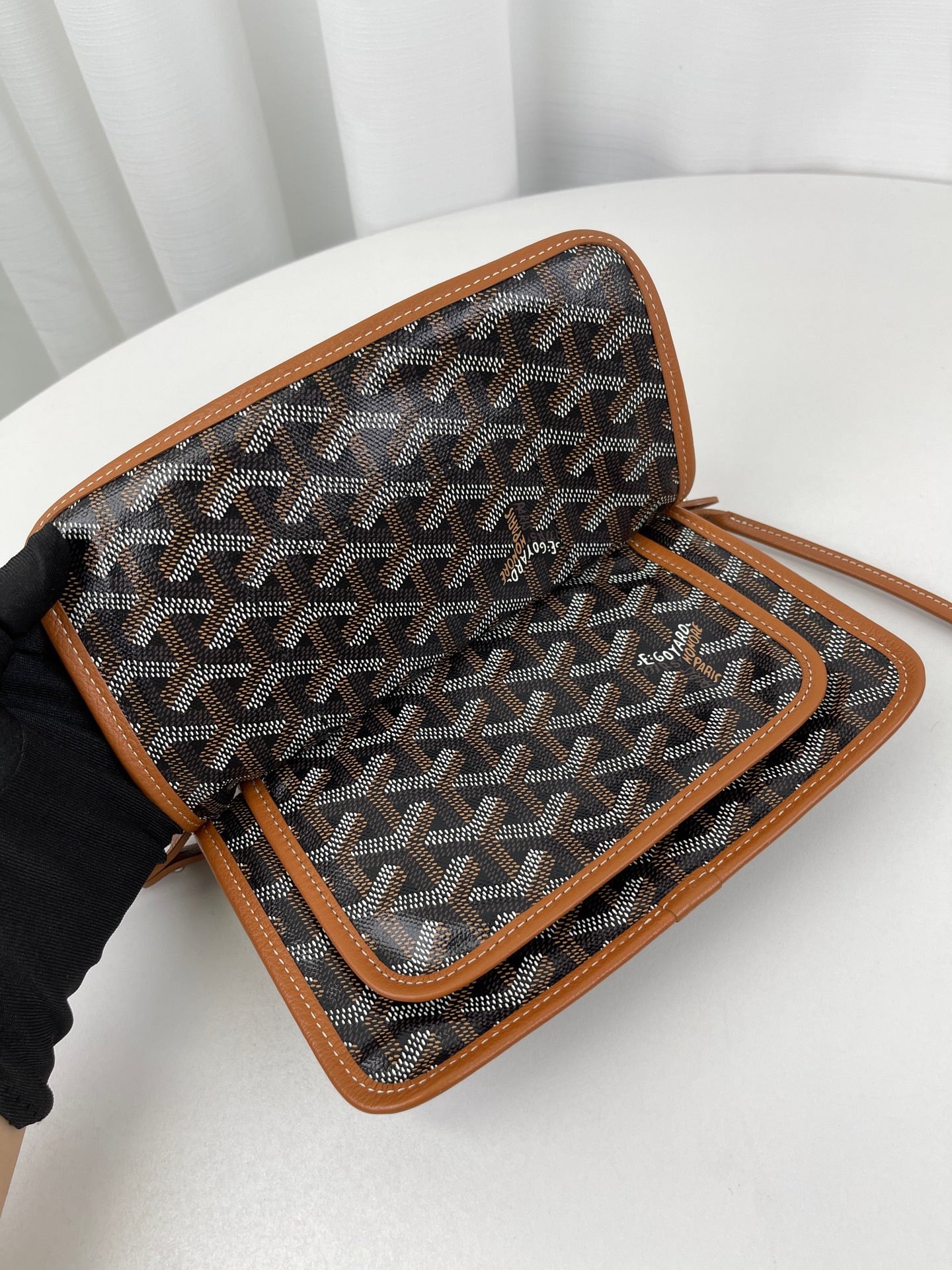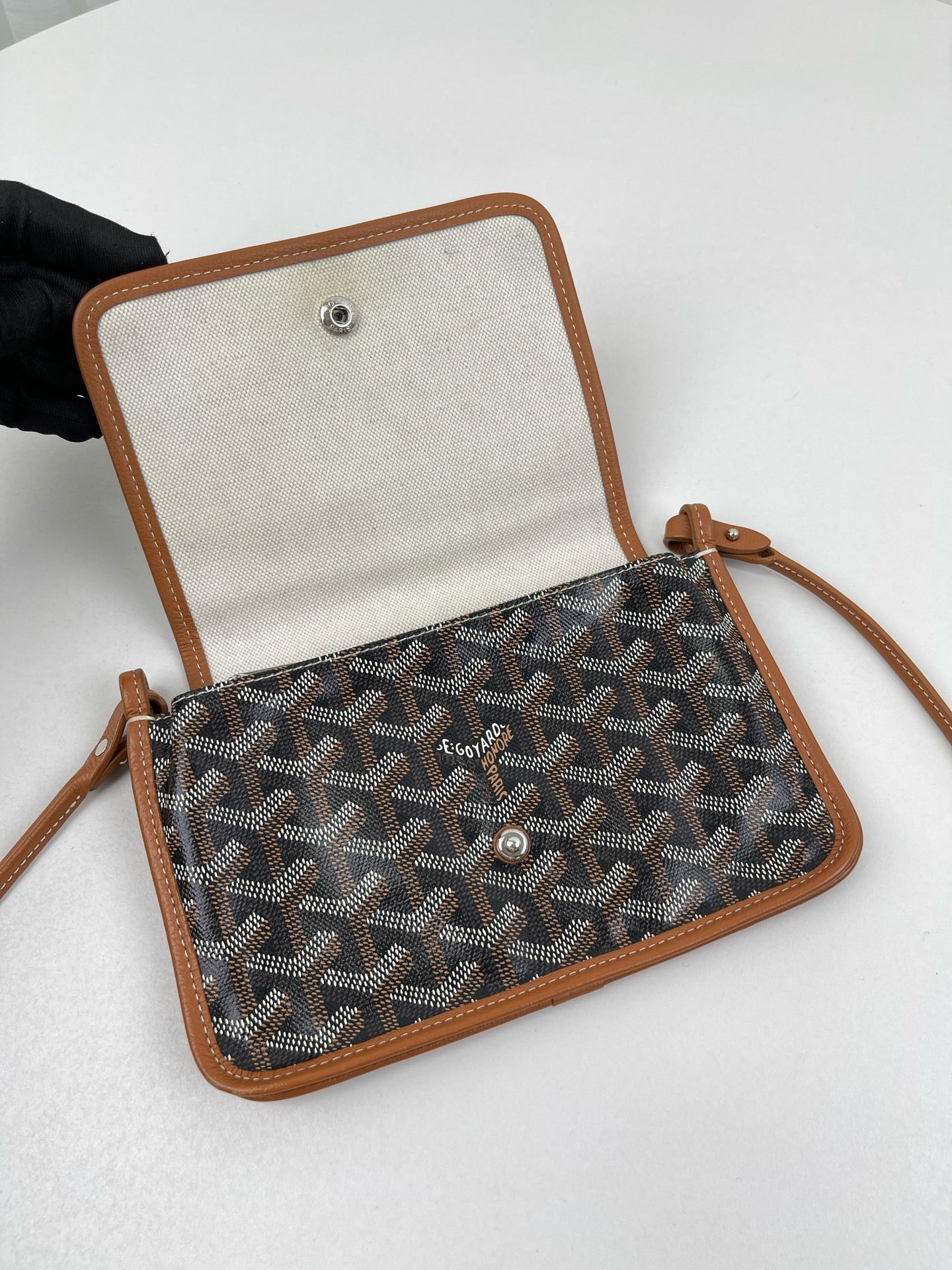 GOYARD Plumet Pocket Wallet Shoulder Bag PVC Leather Black Purse