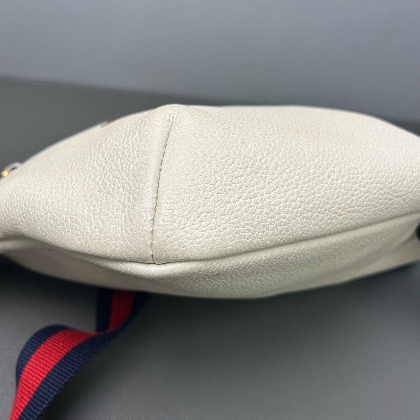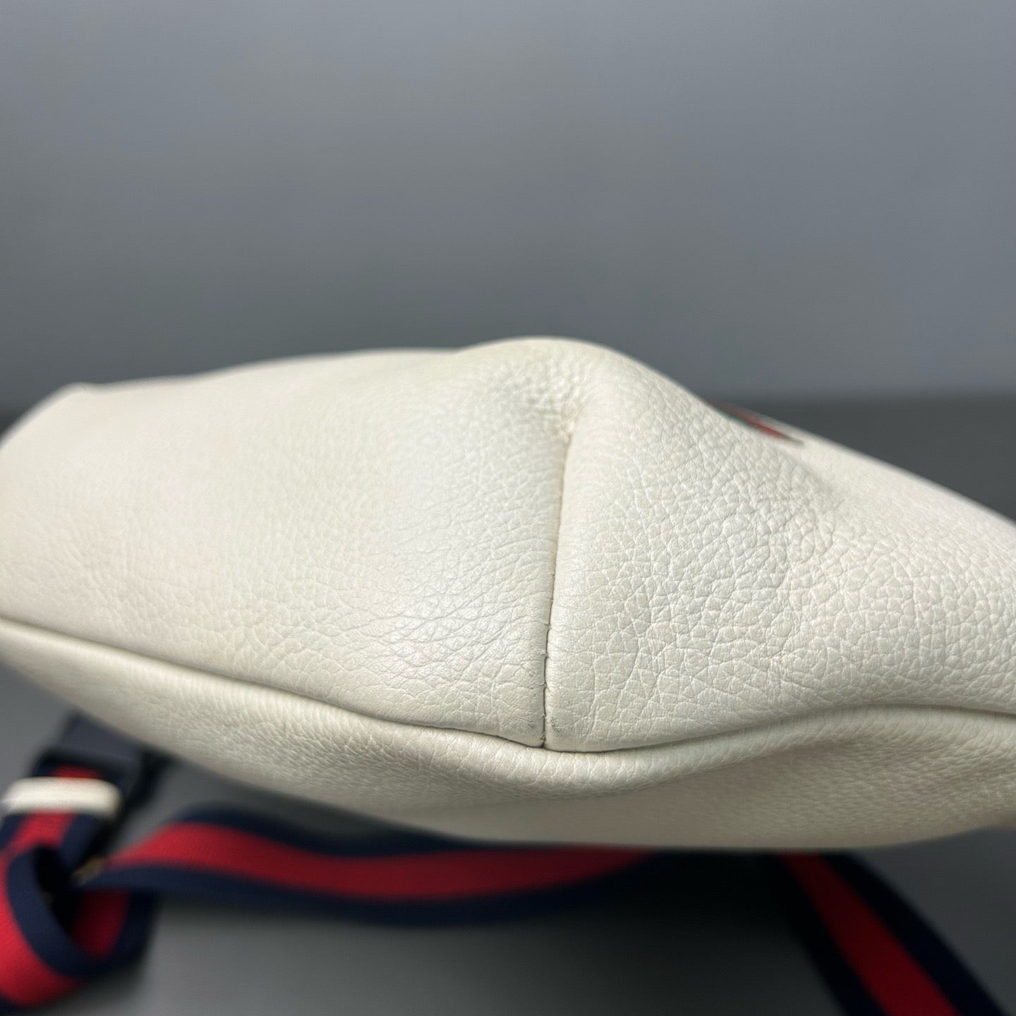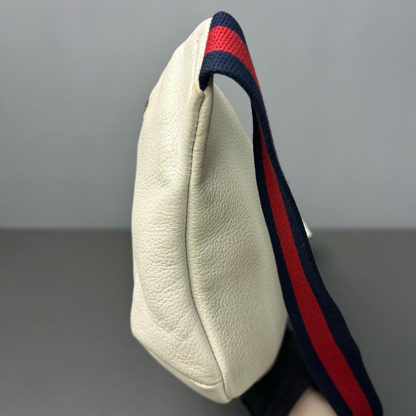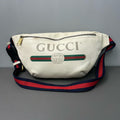 Gucci belt bag with logo on ivory leather webbing