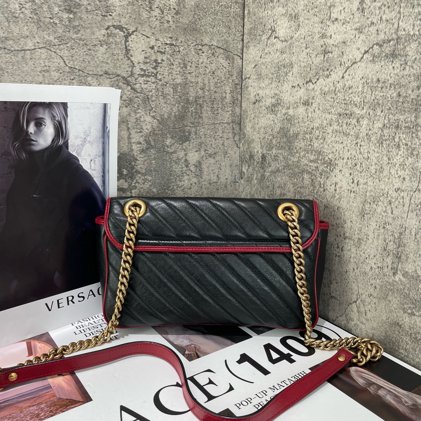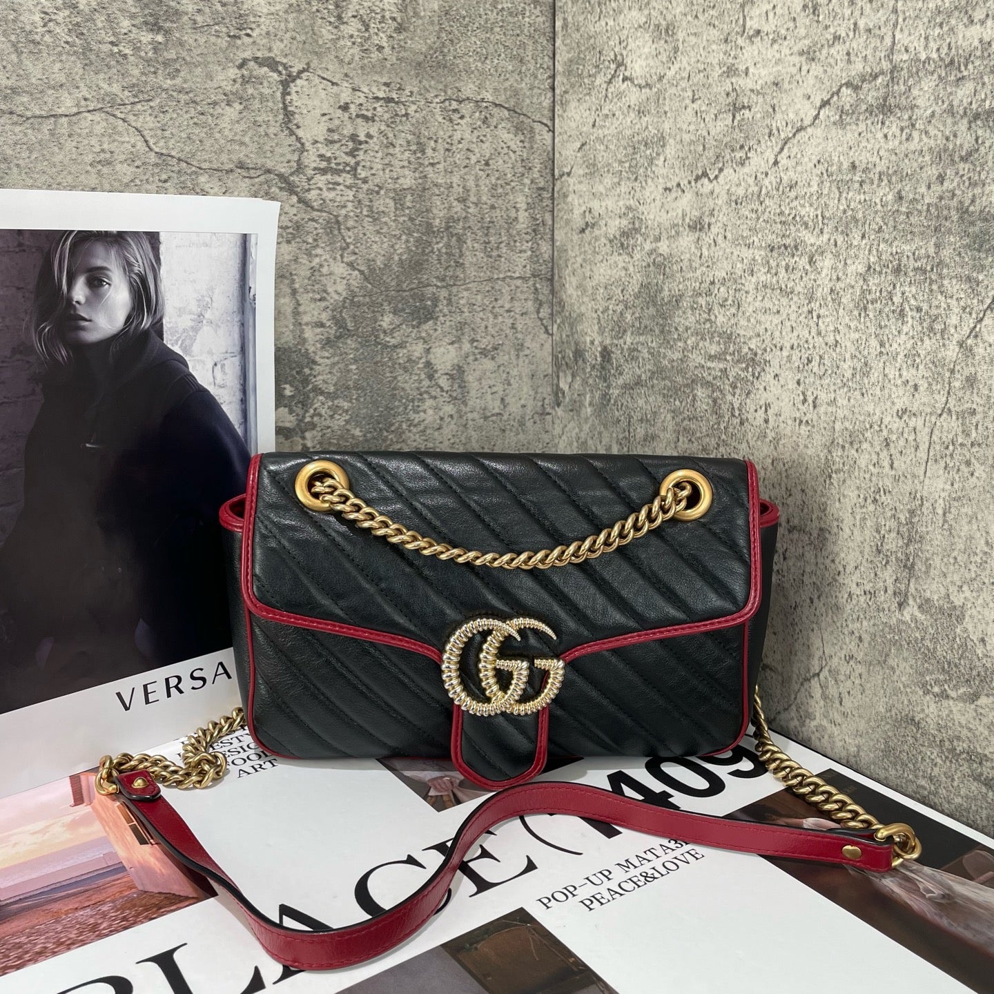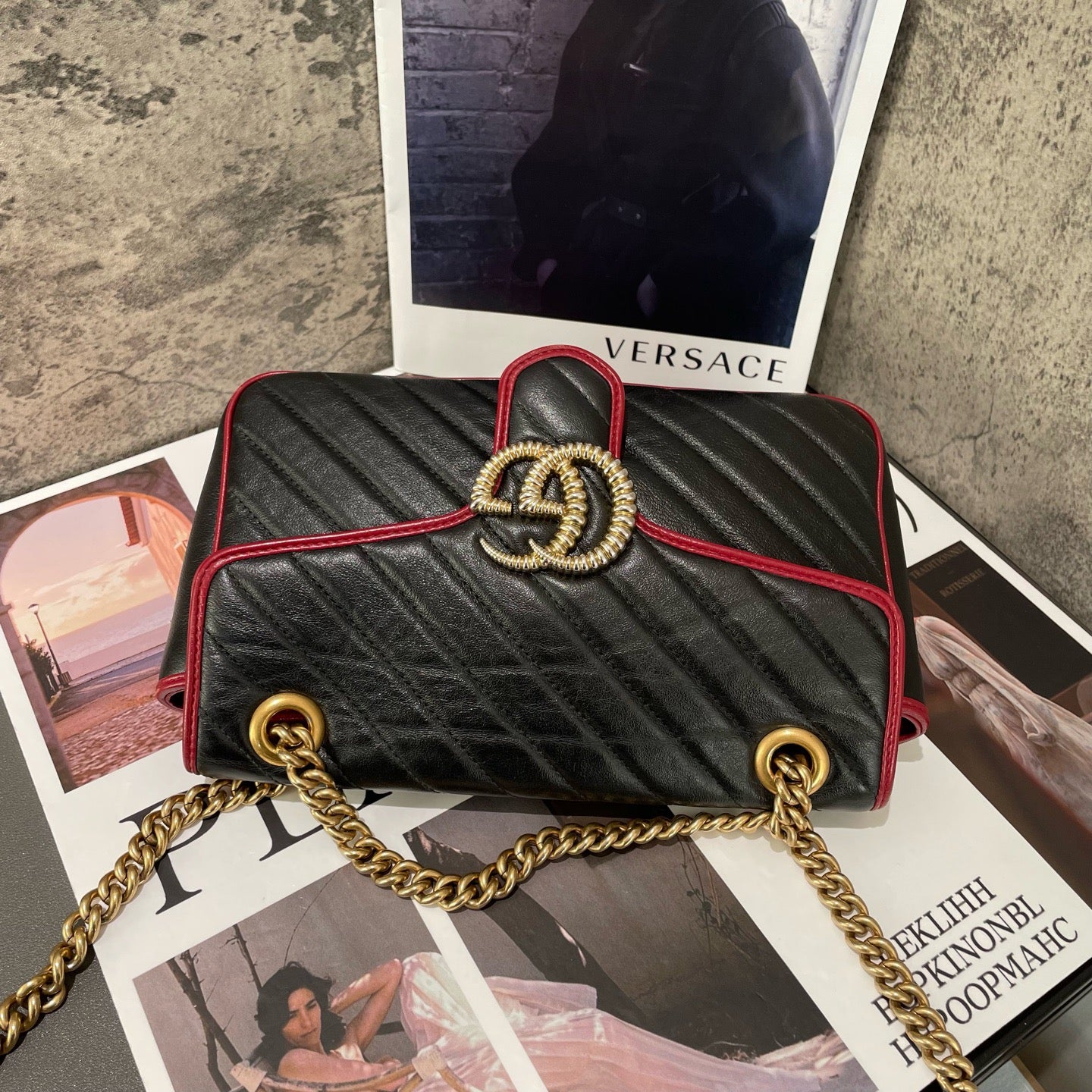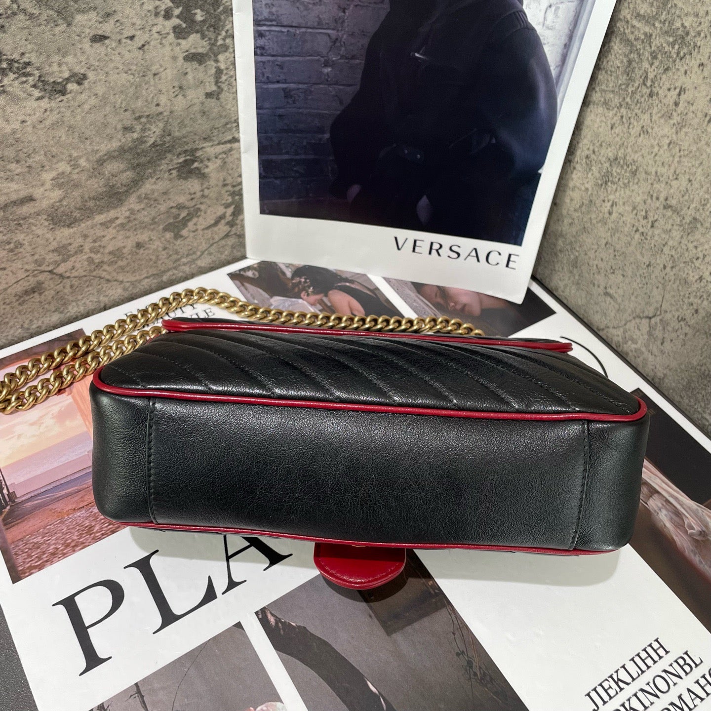 Gucci GG Marmont leather tote bag, black and red