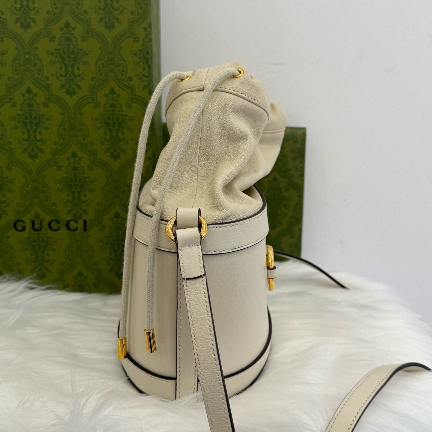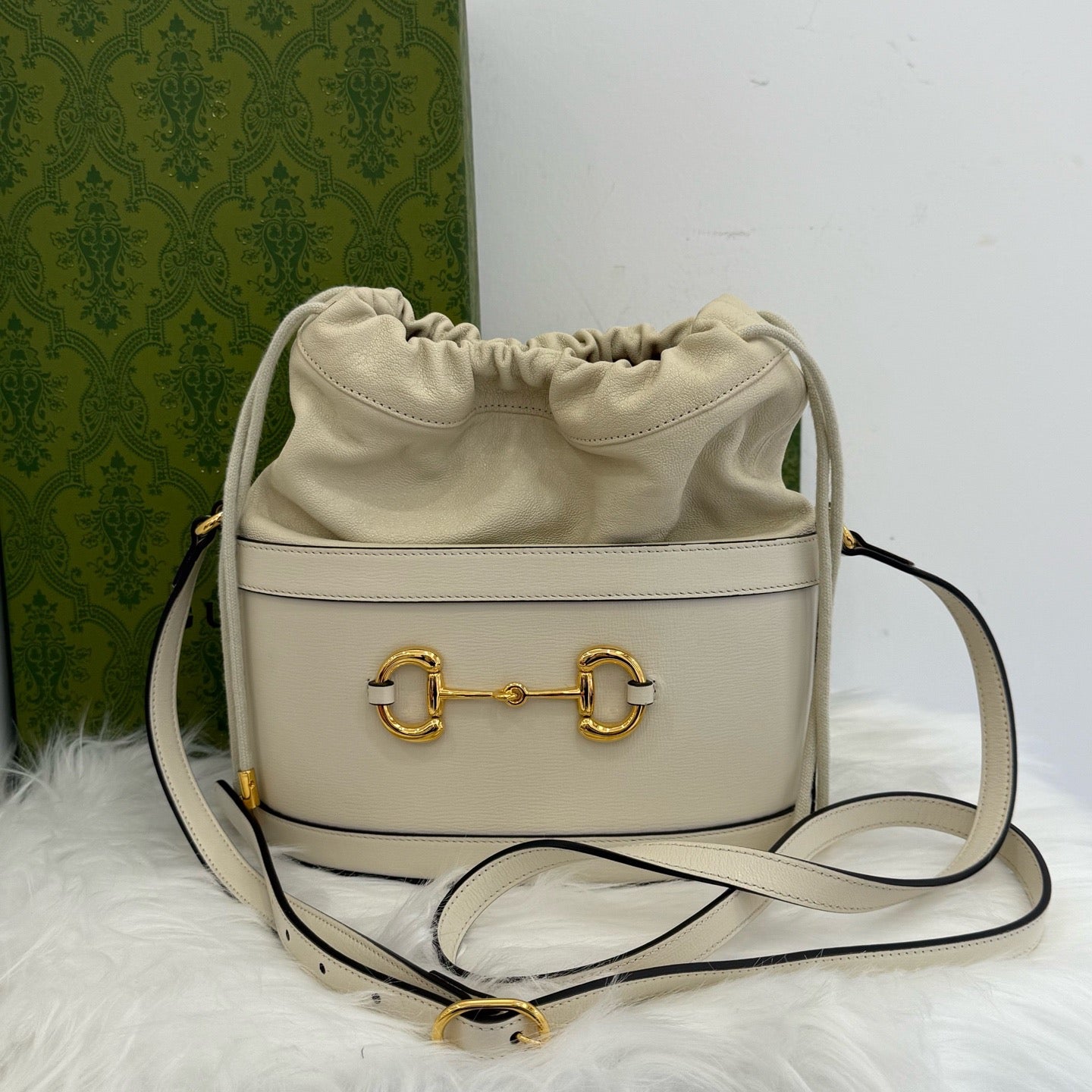 Gucci Horsebit 1955 White Leather Bucket Bag