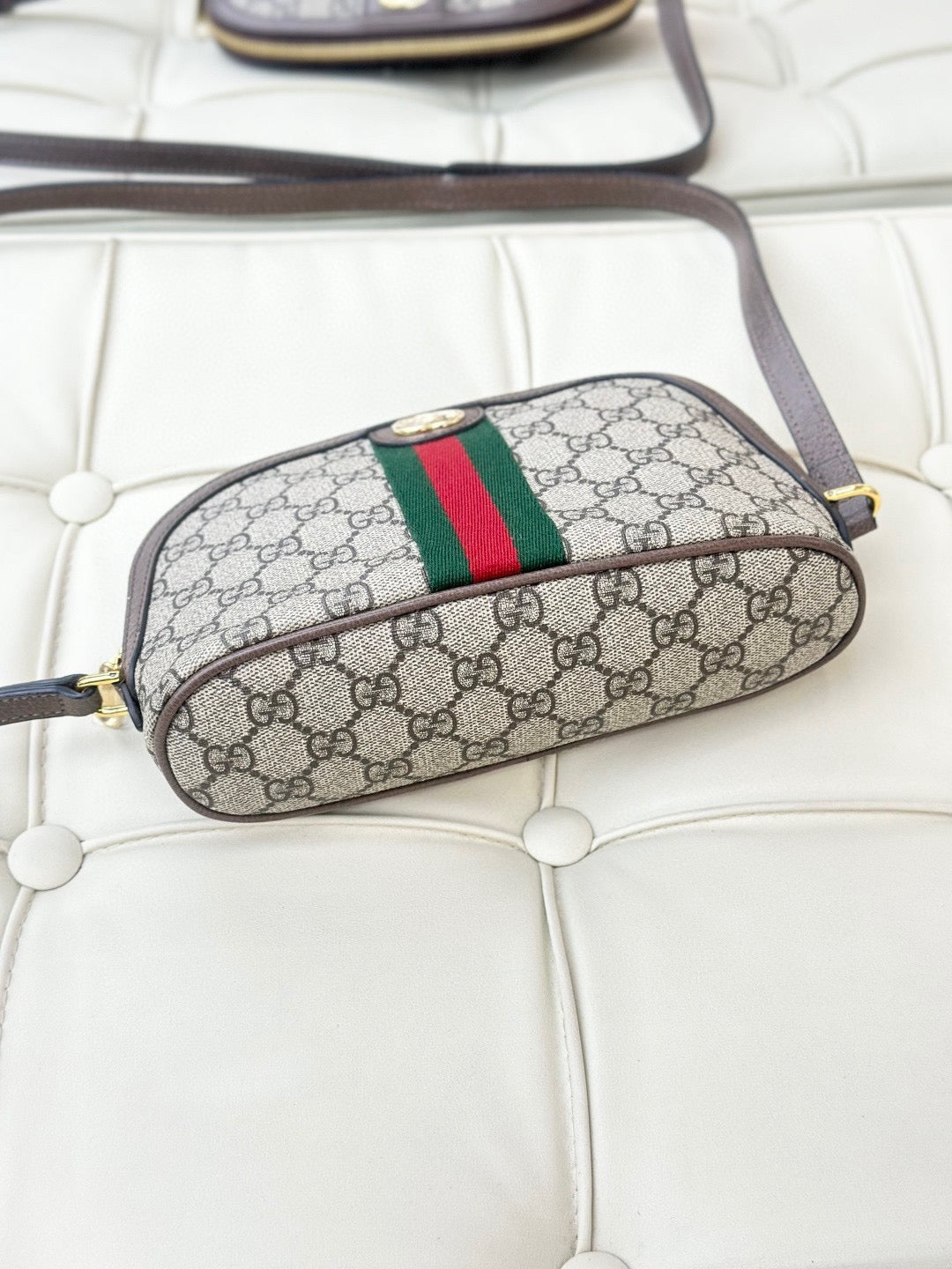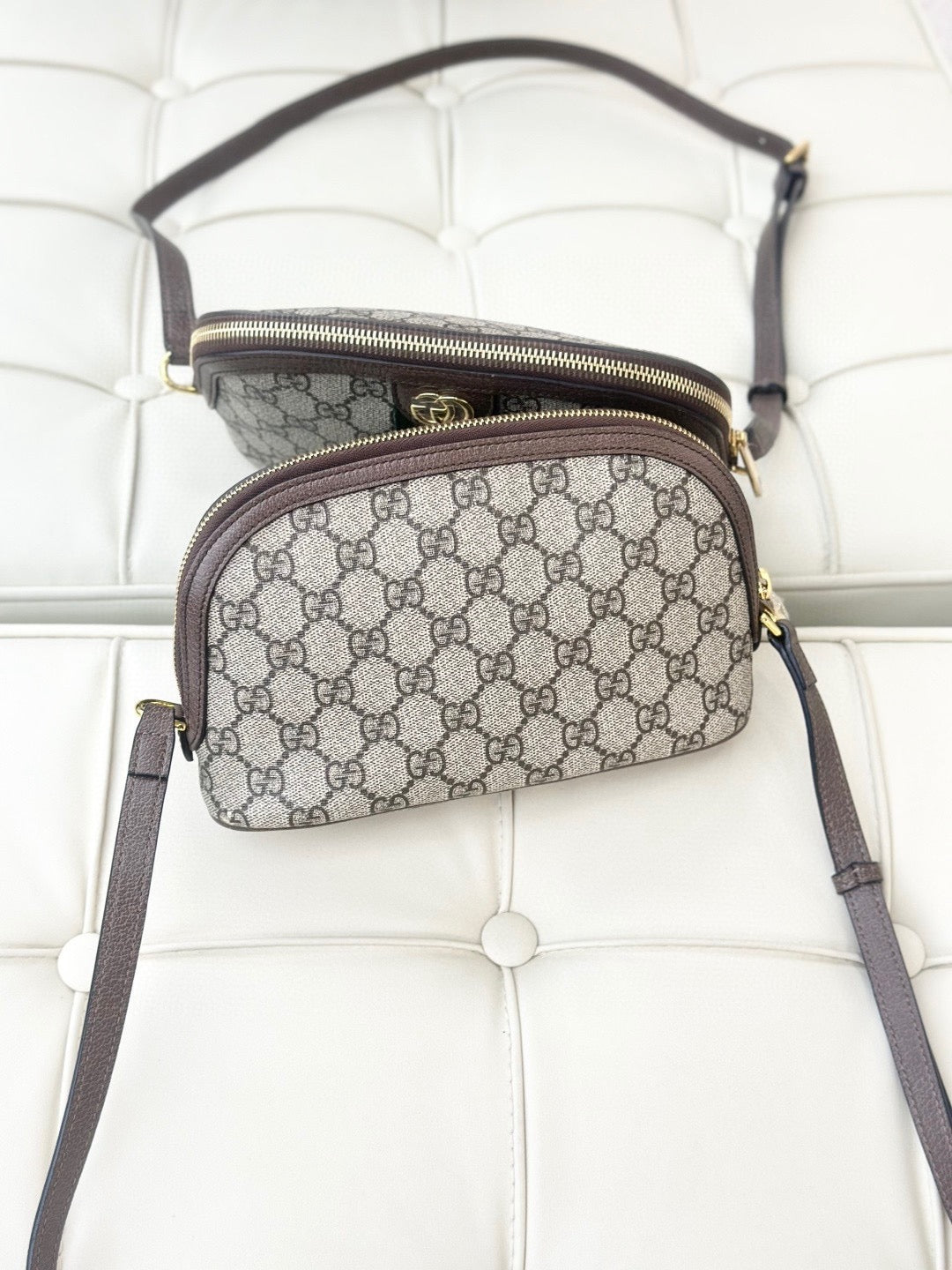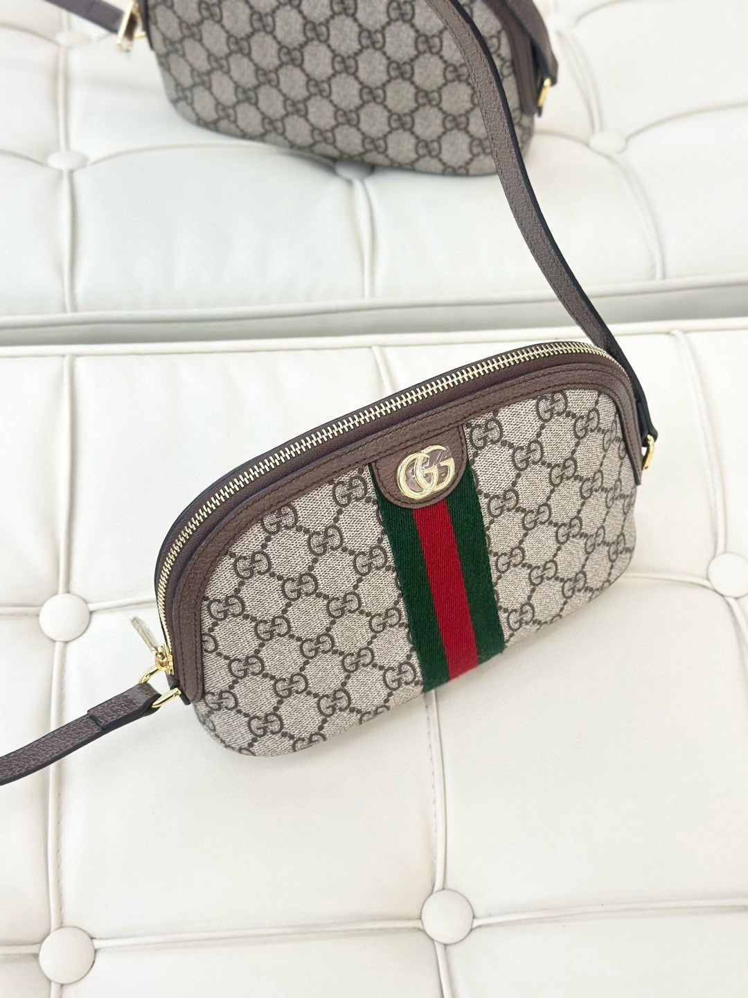Gucci Ophidia series brown monogram shell cosmetic bag with gold hardware (modified)