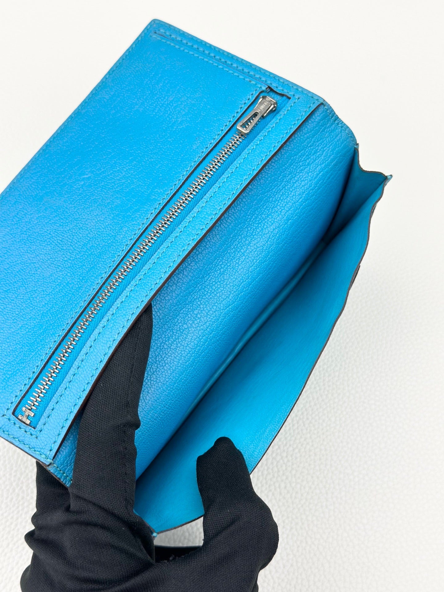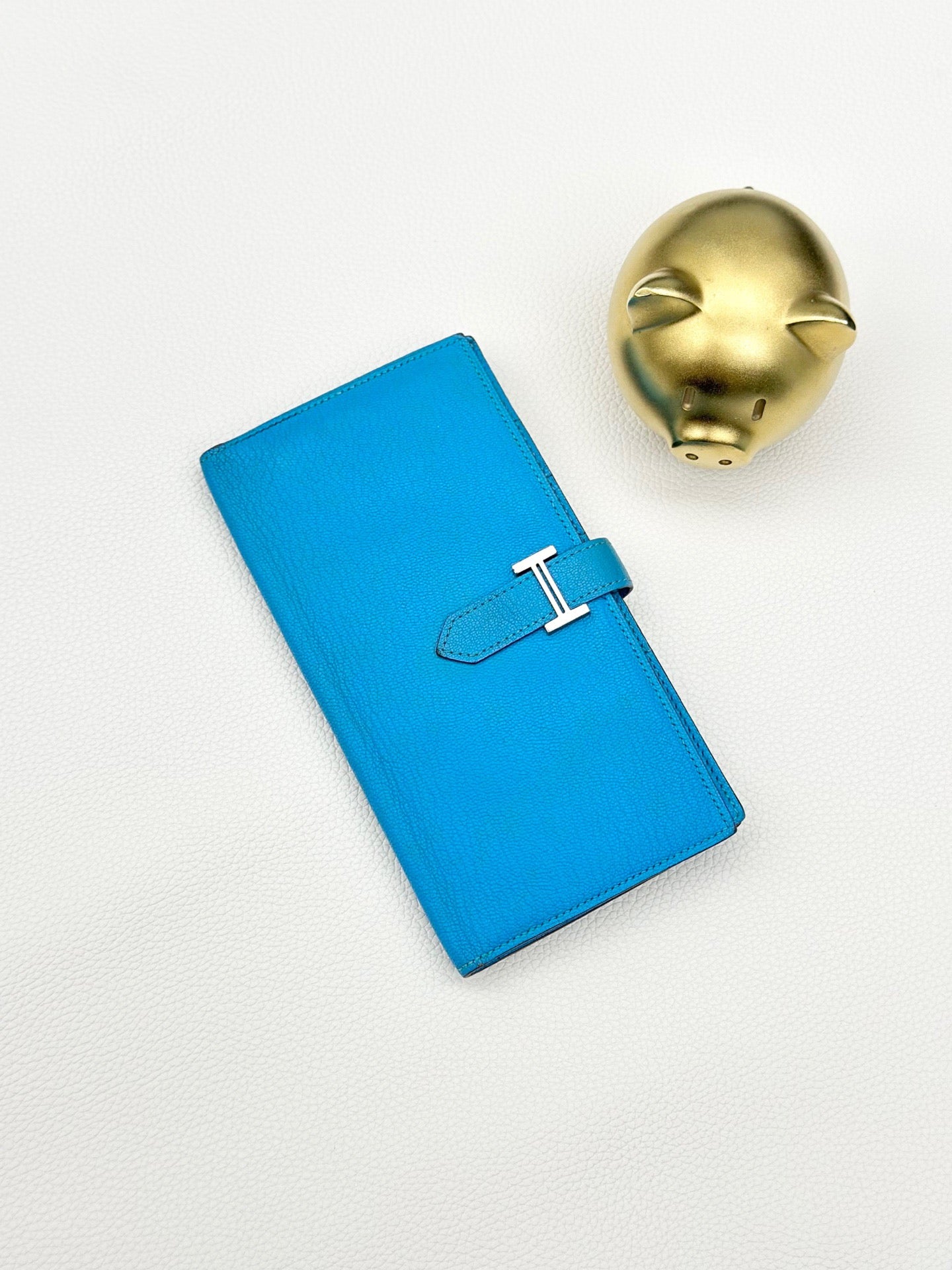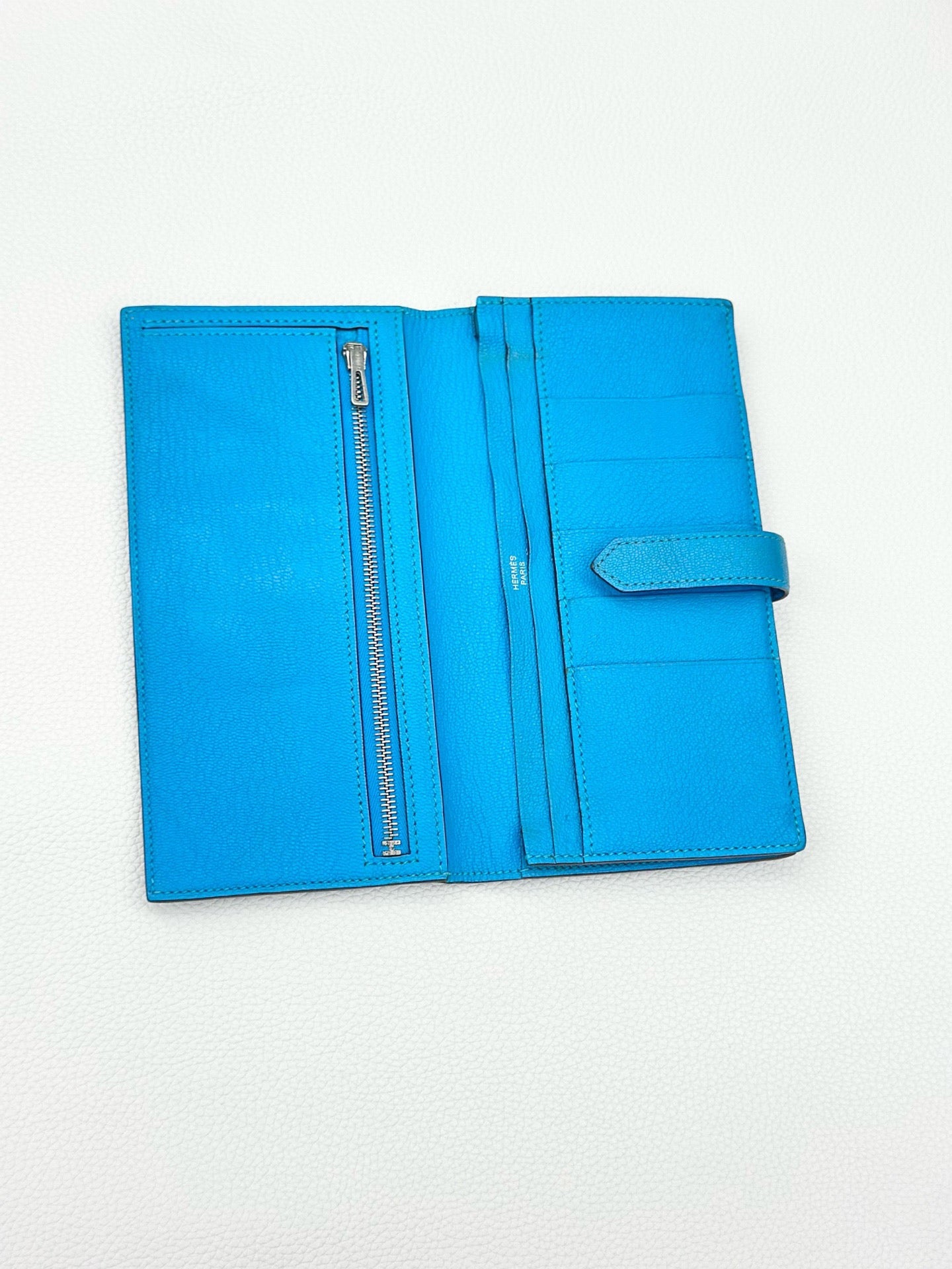 Hermes 75 Denim Blue Brean Silver Buckle Wallet