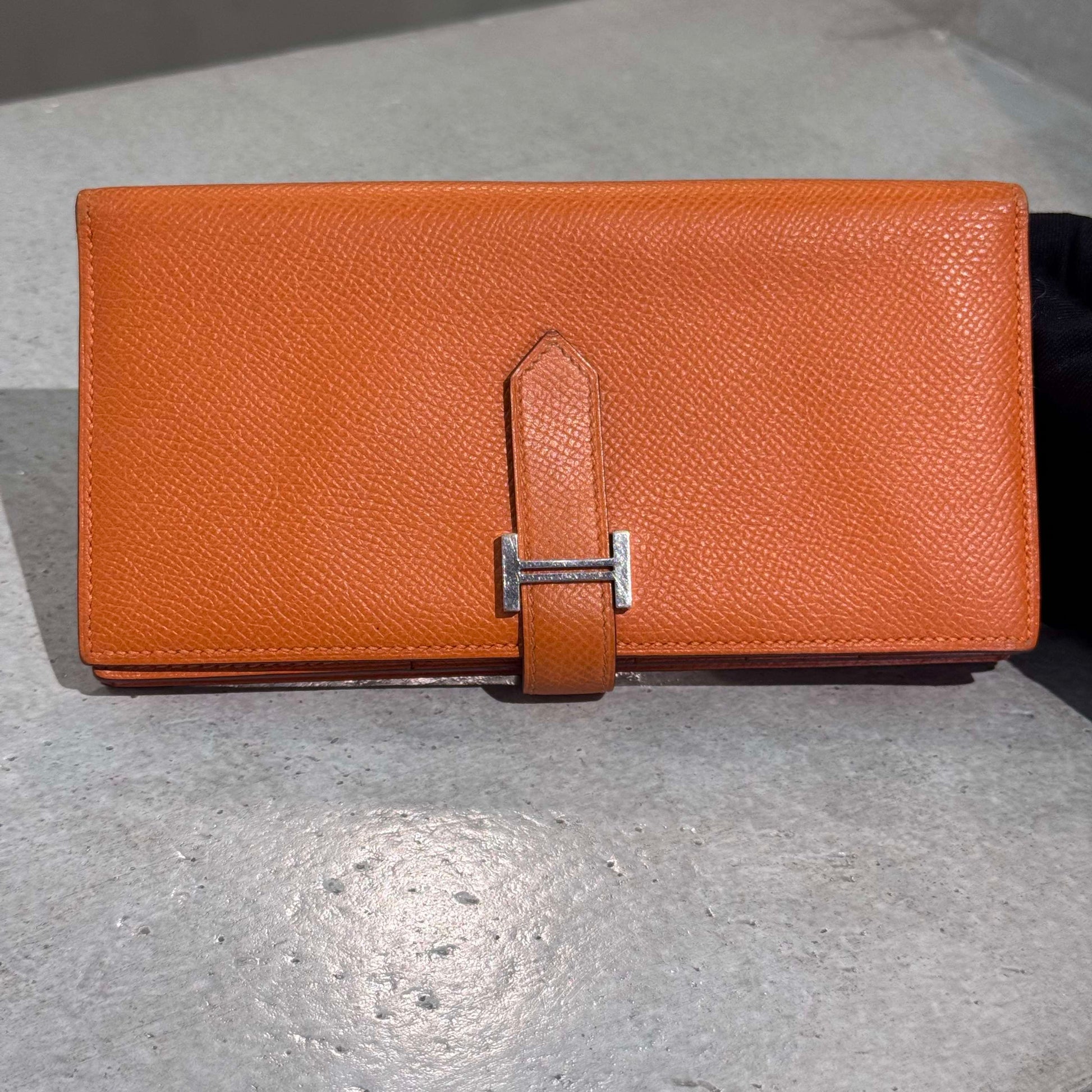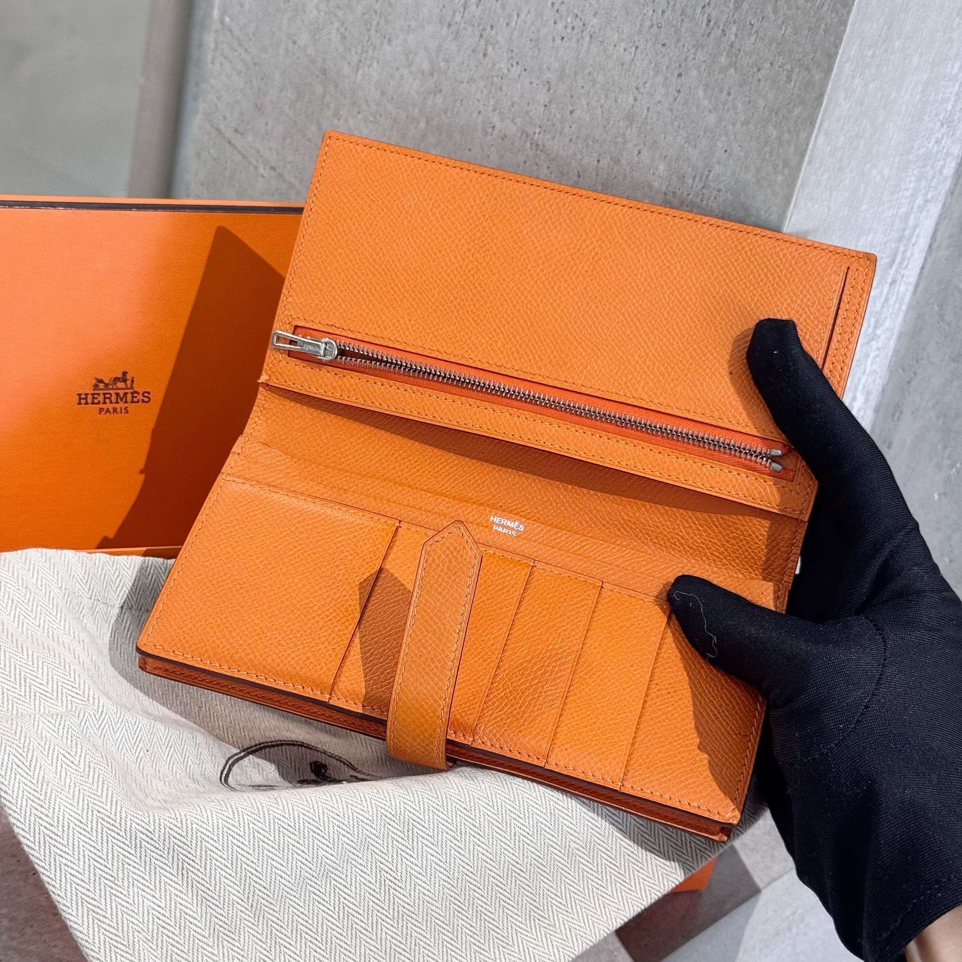 Hermes Bearn Soufflet Verso Apricot/Rose azalee Epsom leather Silver hardware