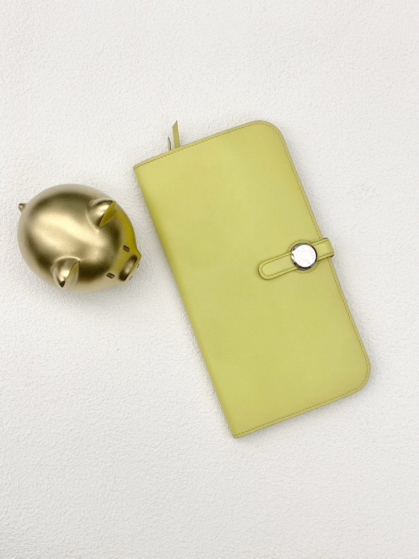 Hermes Dogon Chick Yellow Silver Buckle Long Wallet
