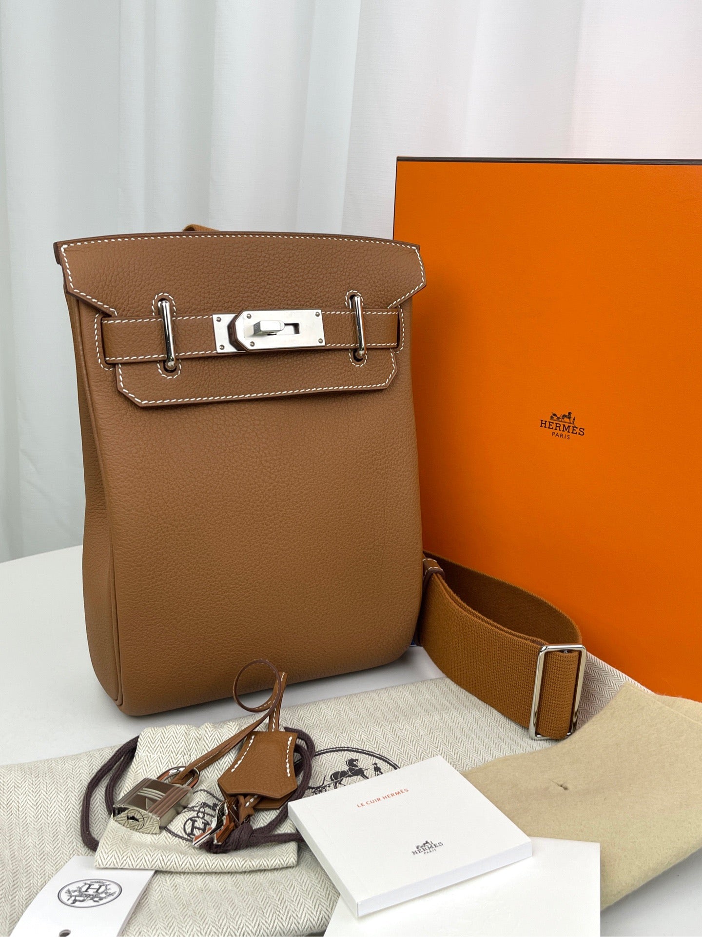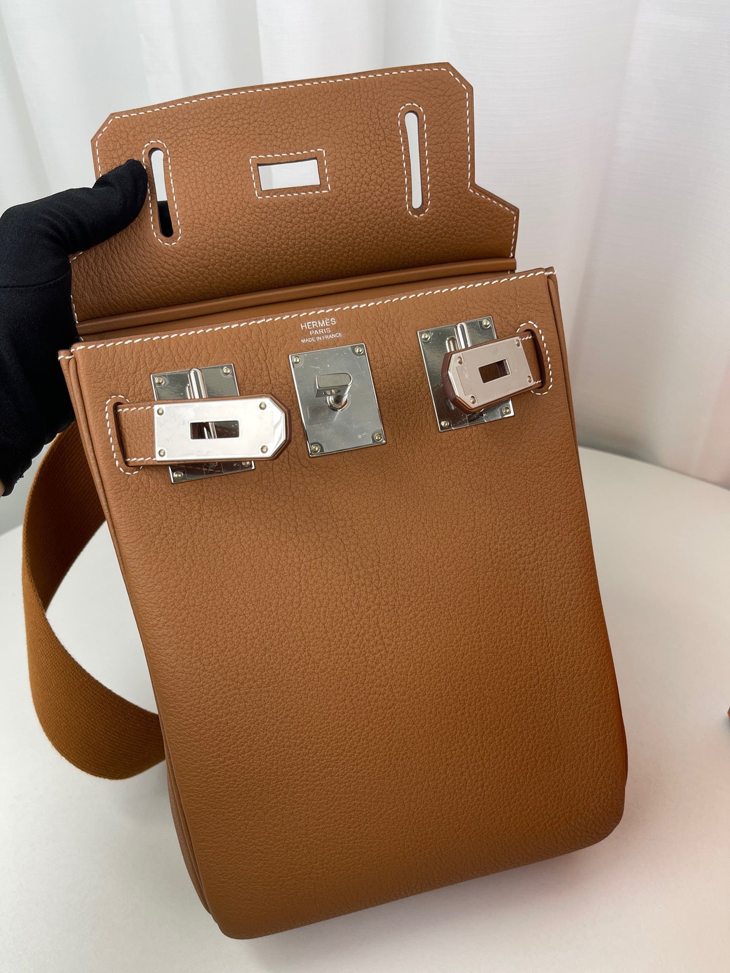 Hermès HAC A DOS gold brown with silver hardware, Togo leather