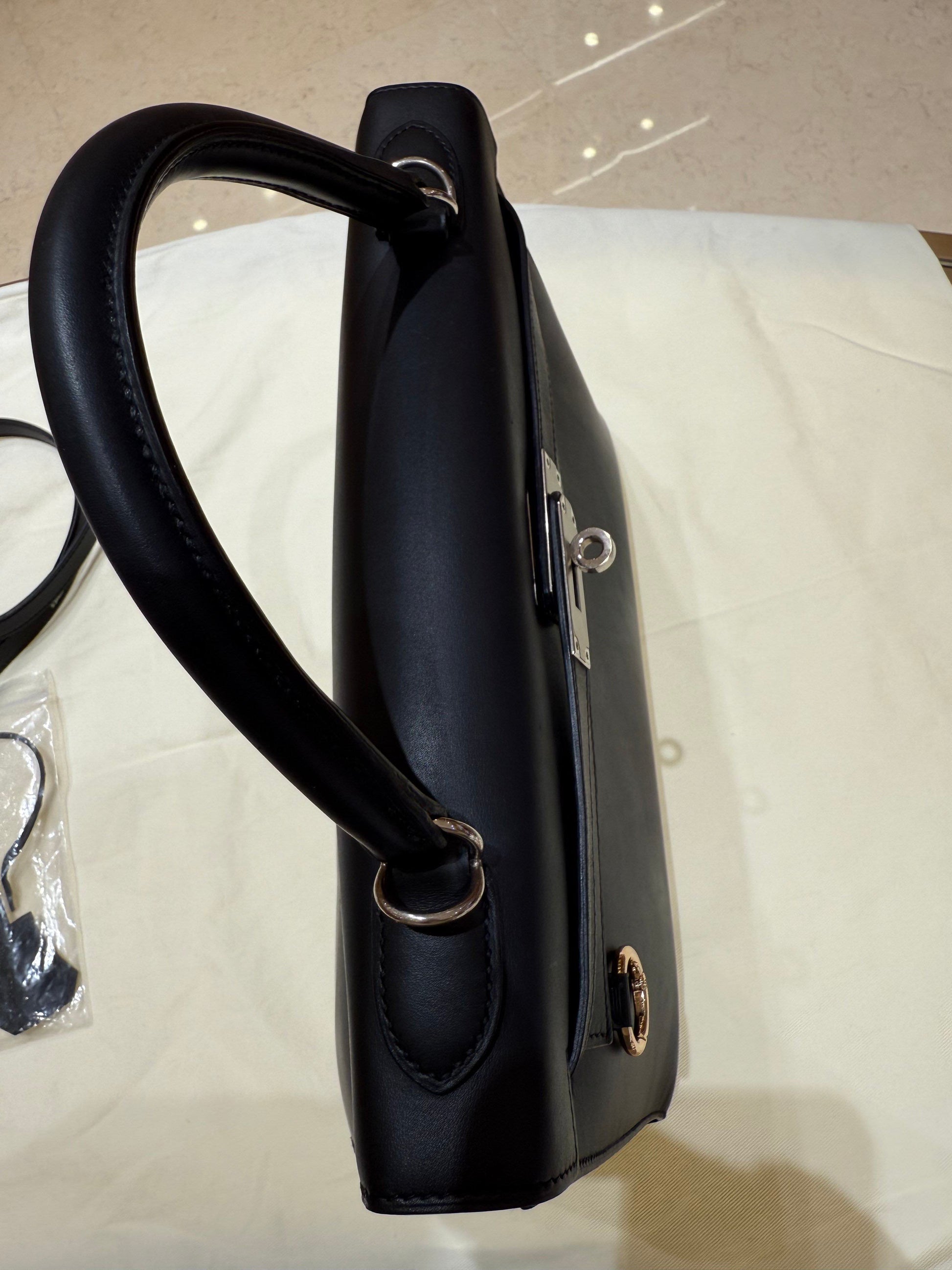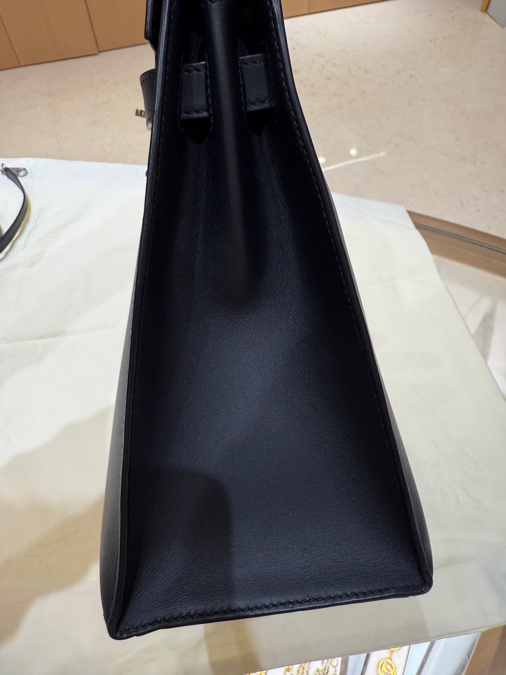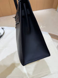 Hermès Kelly 32 Black and Silver Box Leather
