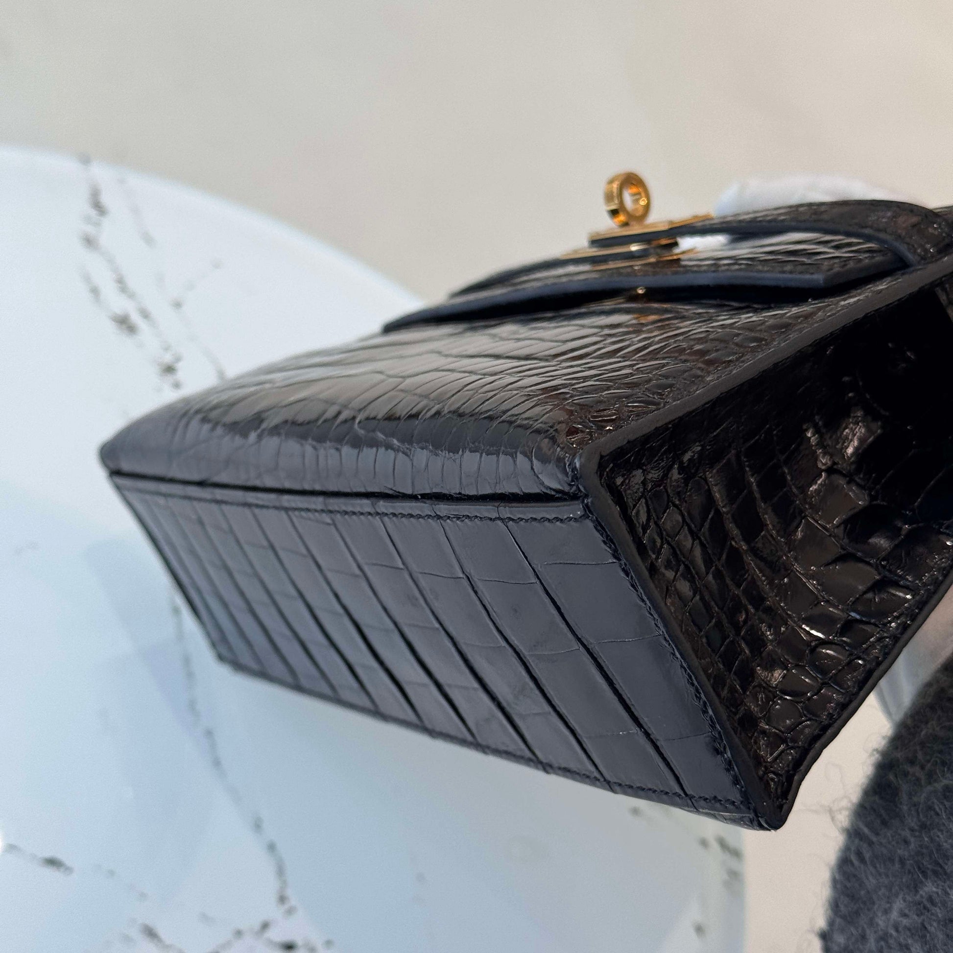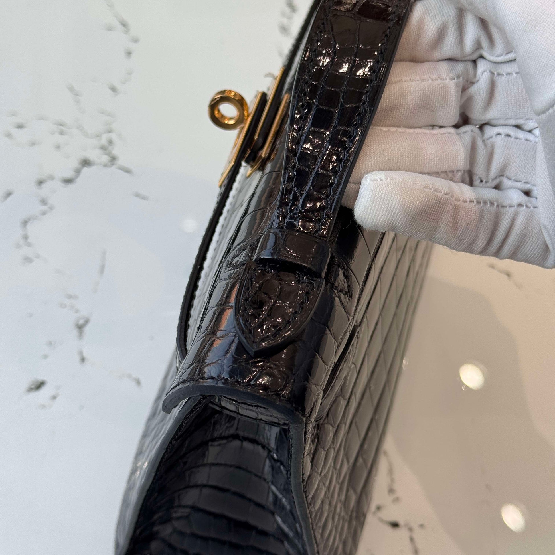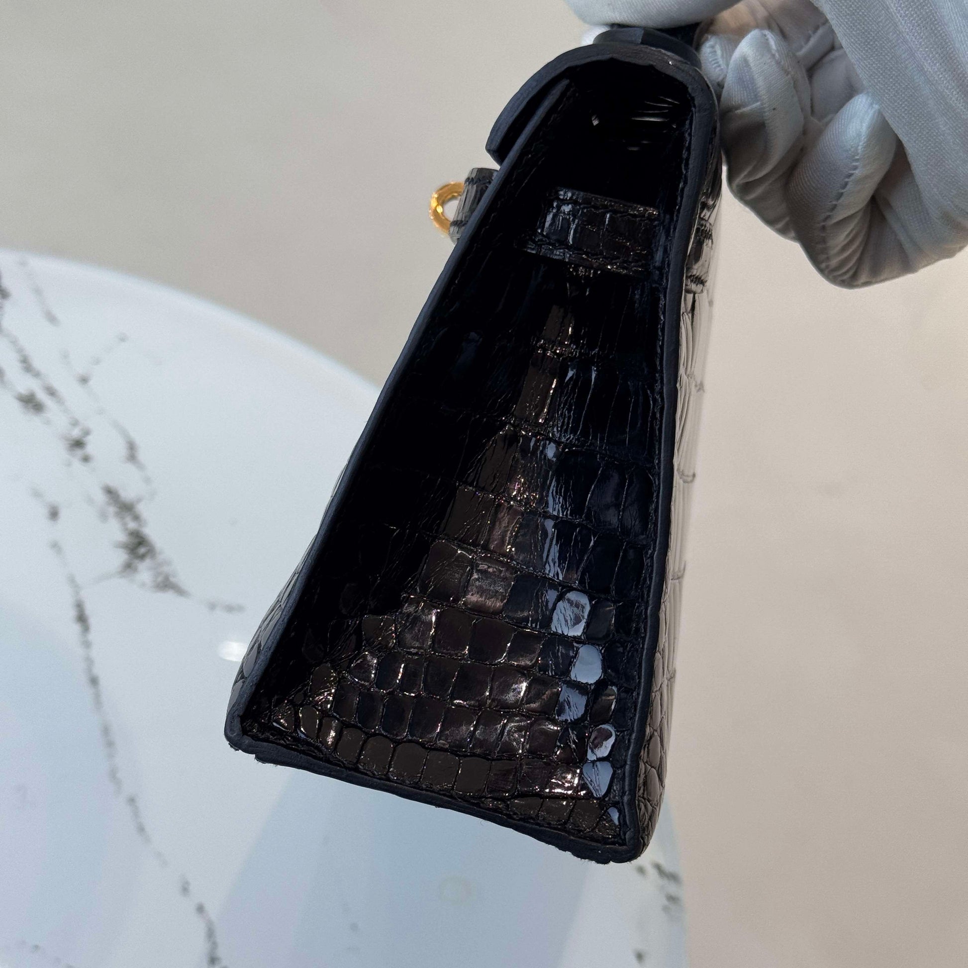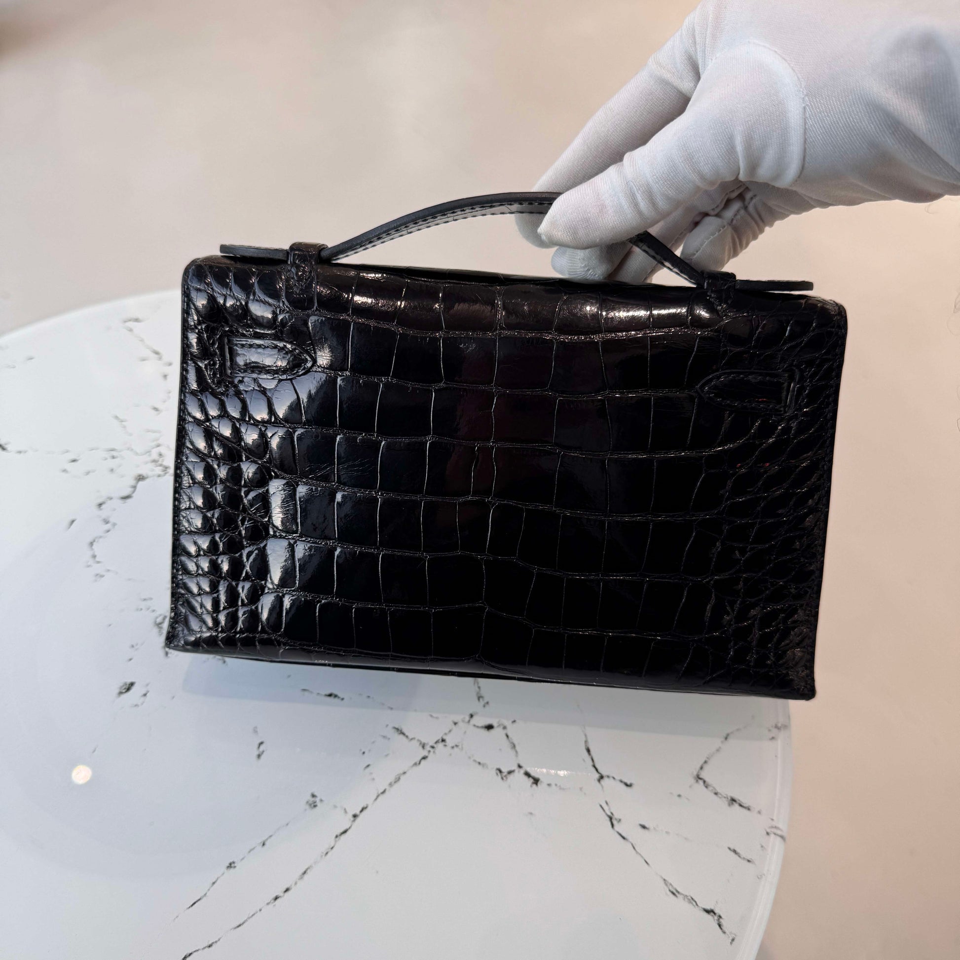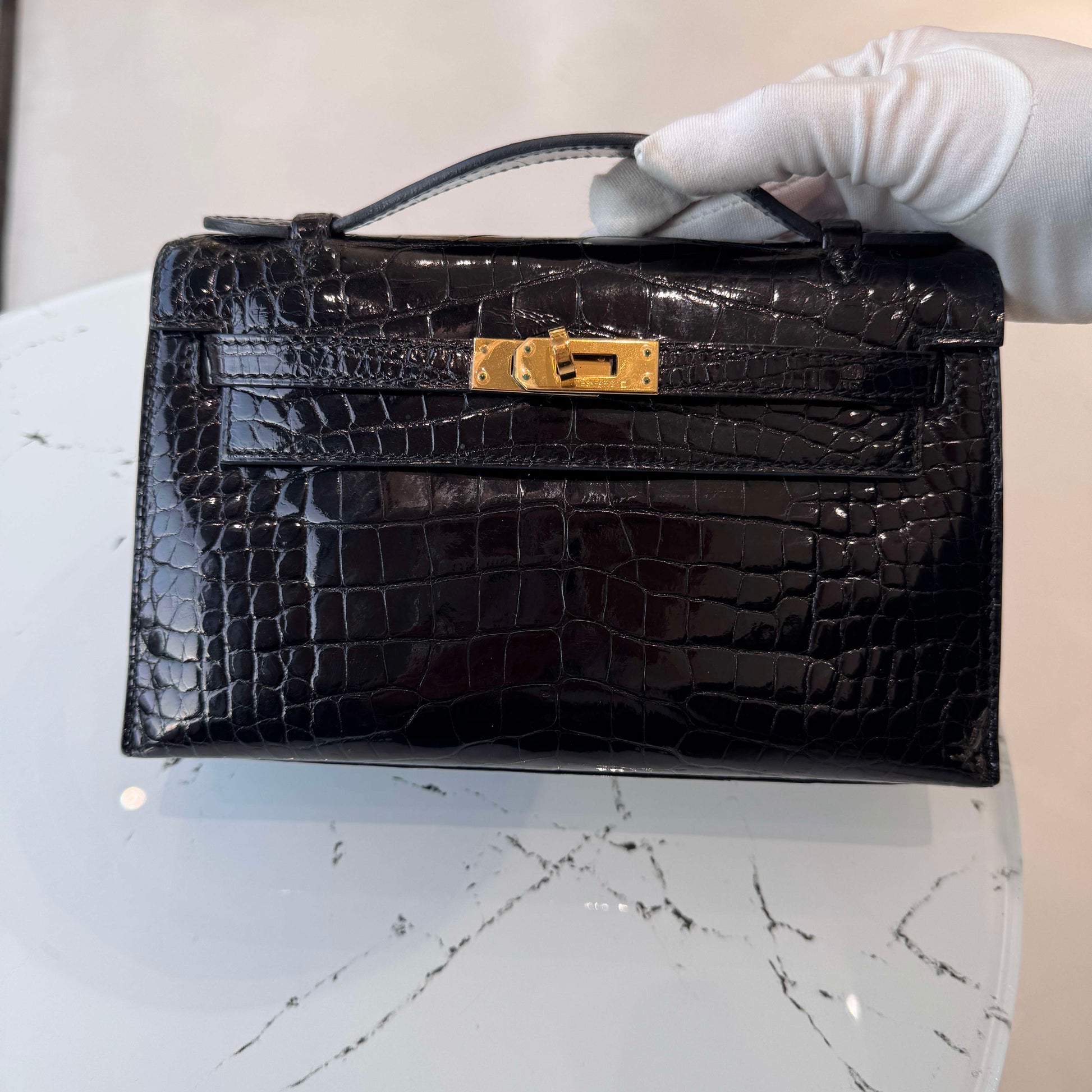 Hermès Kelly Pochette Amethyst Shiny Alligator with Gold Hardware