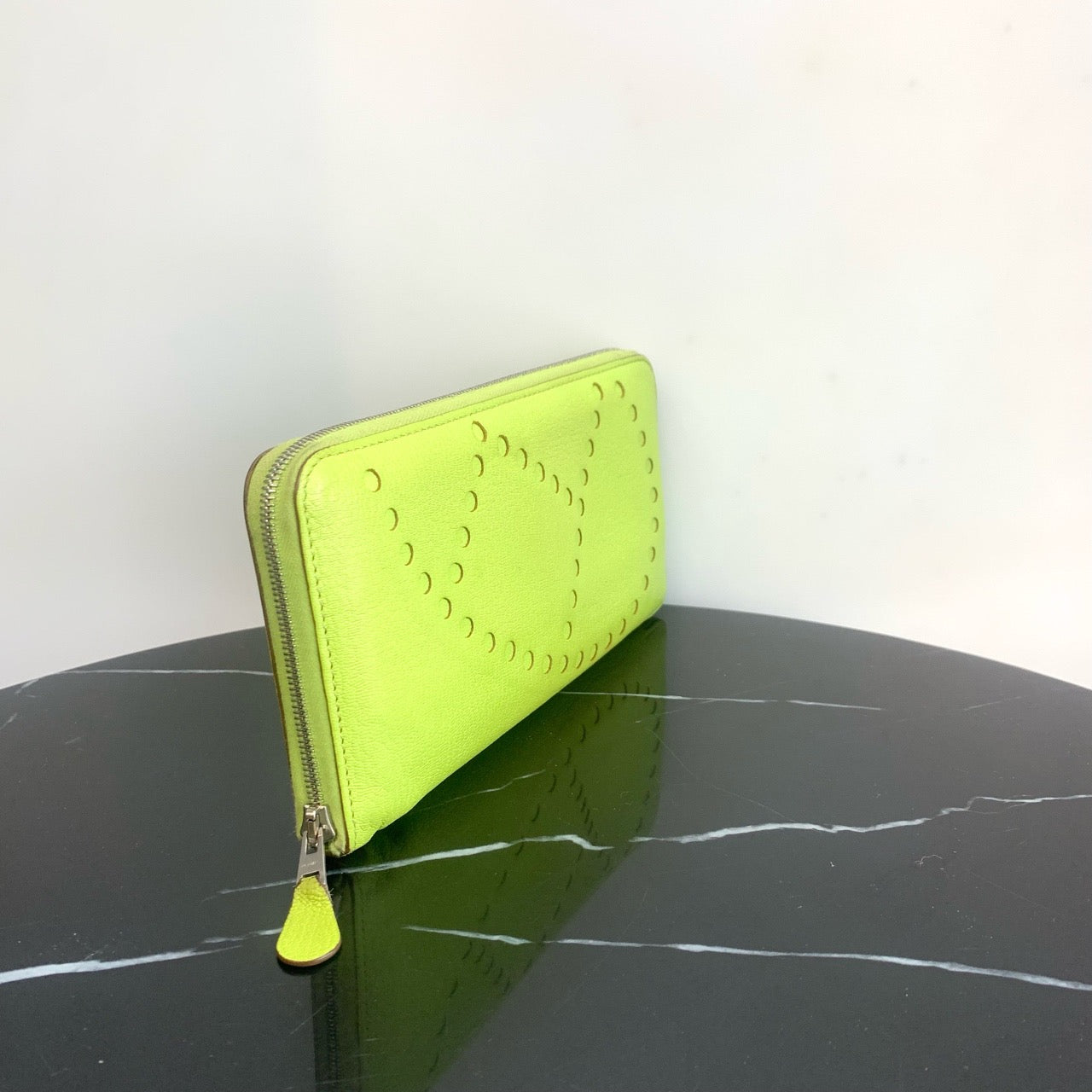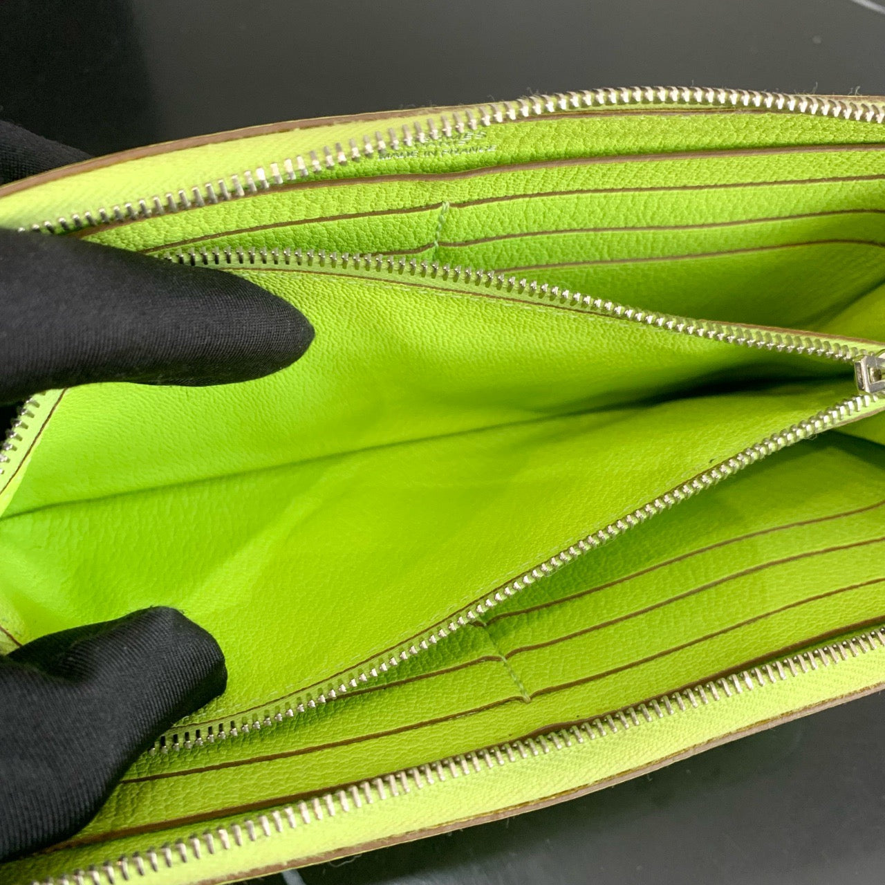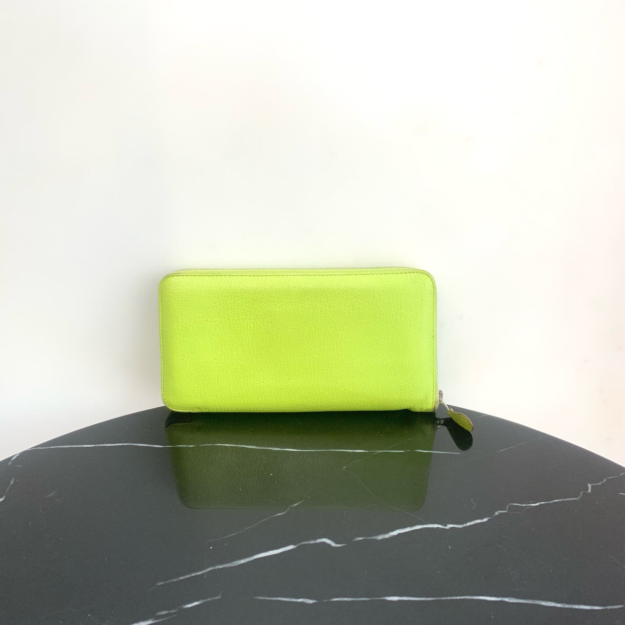 Hermes lemon yellow long goatskin wallet with silver hardware
