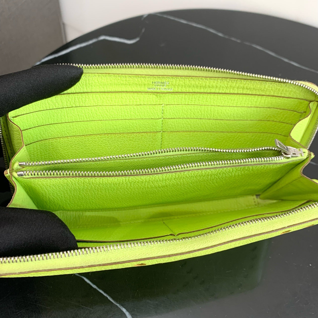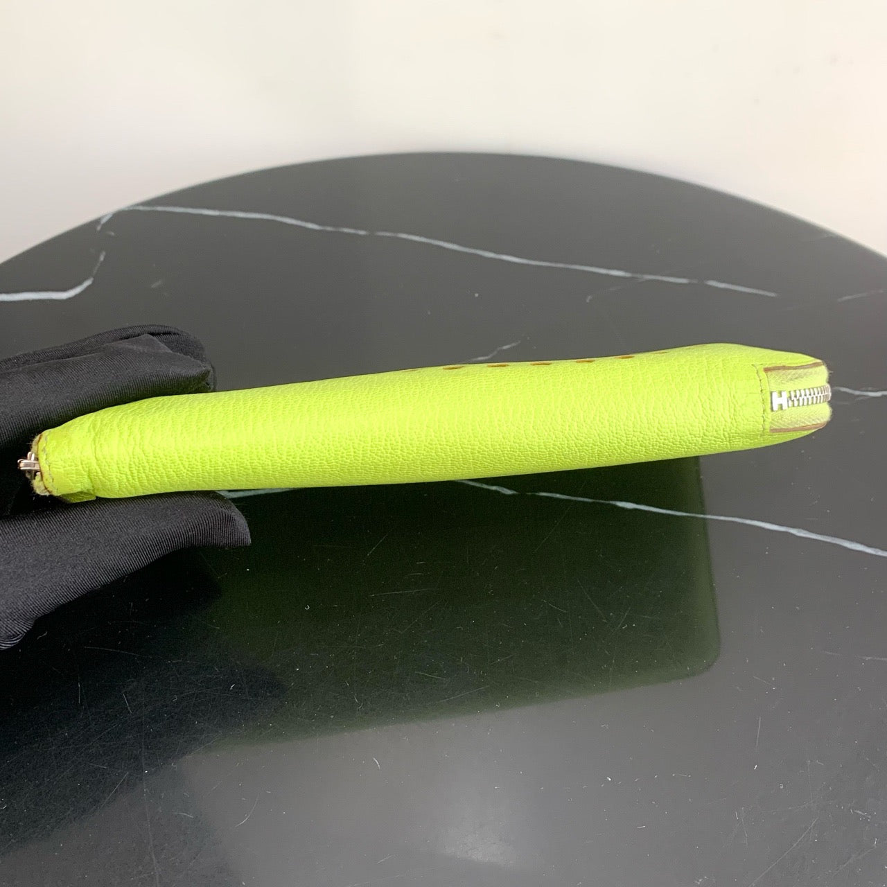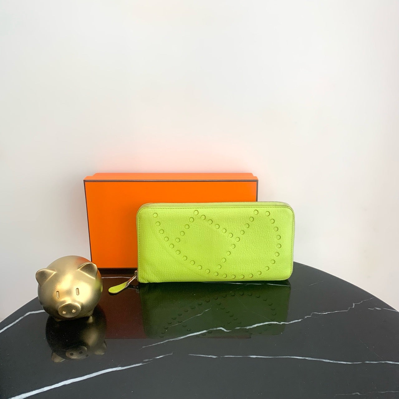 Hermes lemon yellow long goatskin wallet with silver hardware