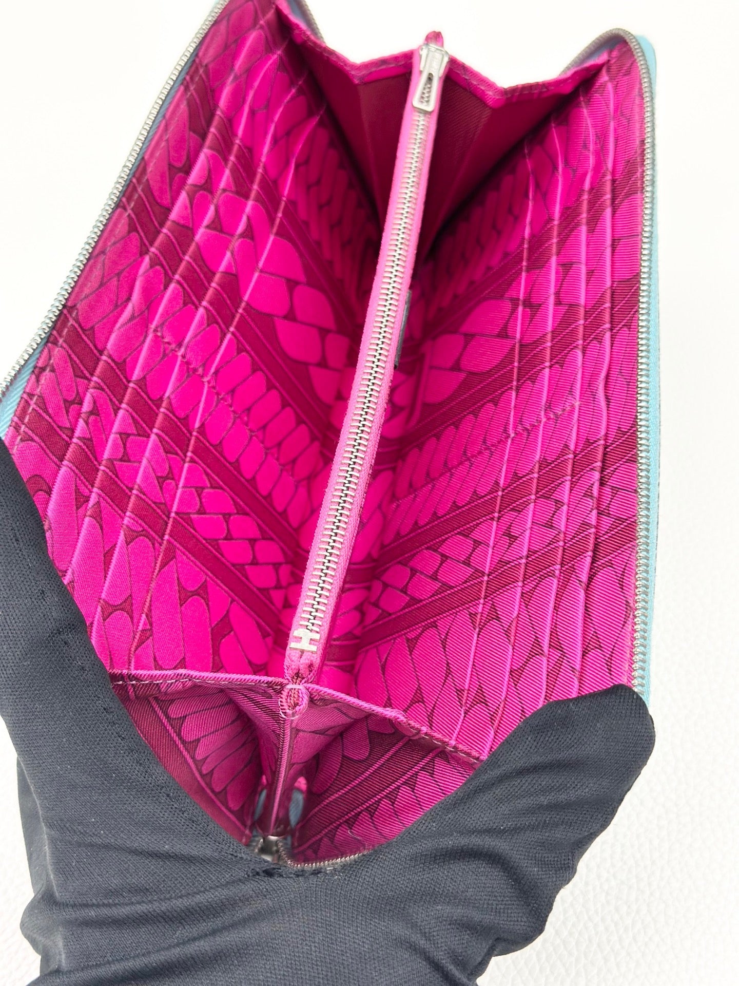 Hermes Macaron Blue Color Block Silk Lined Wallet