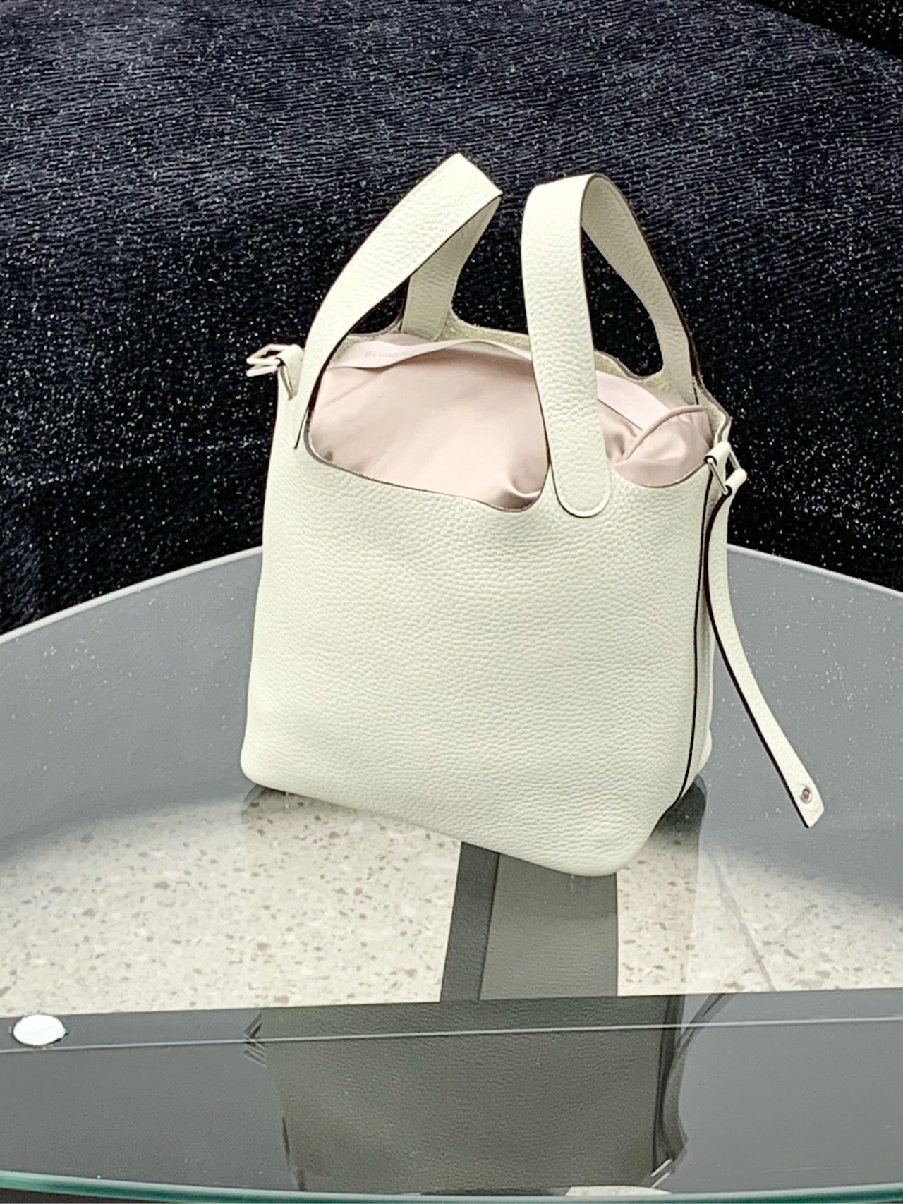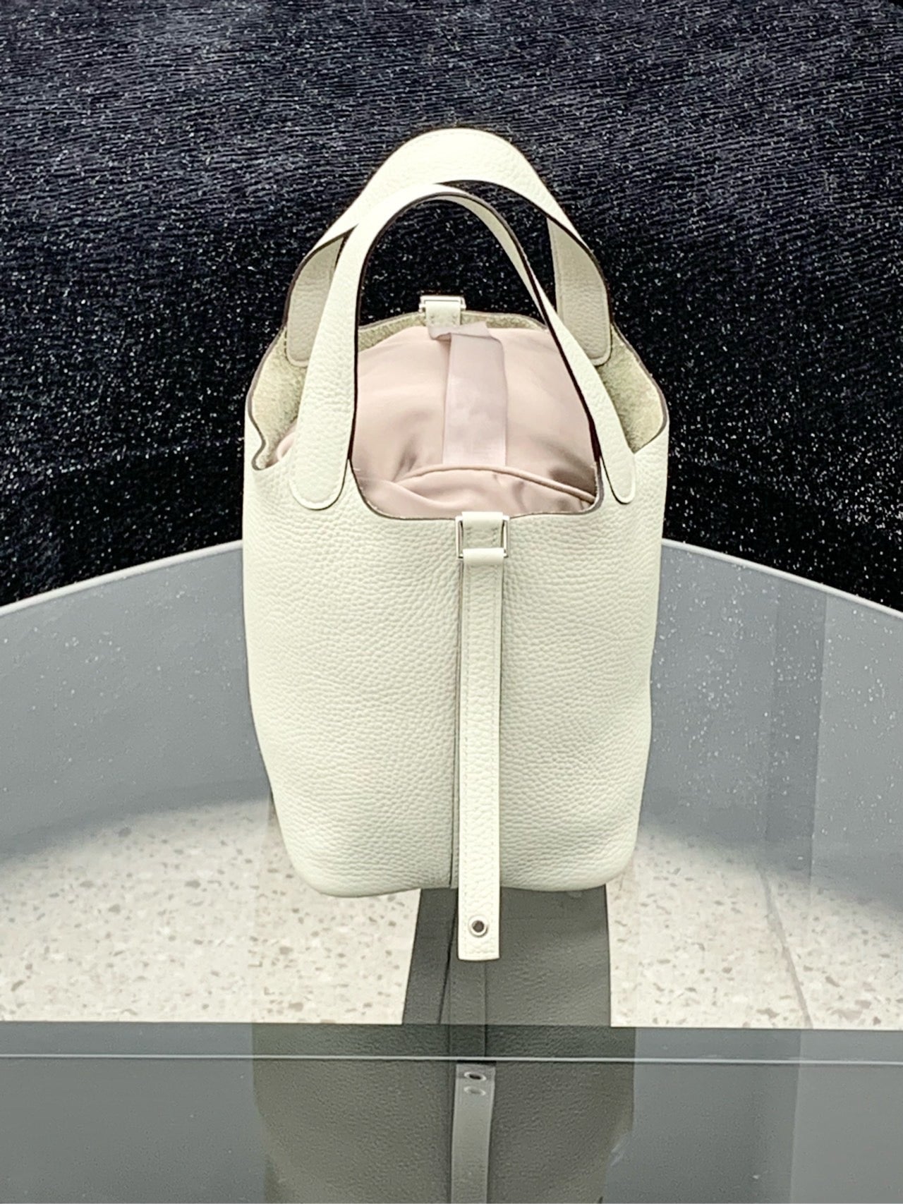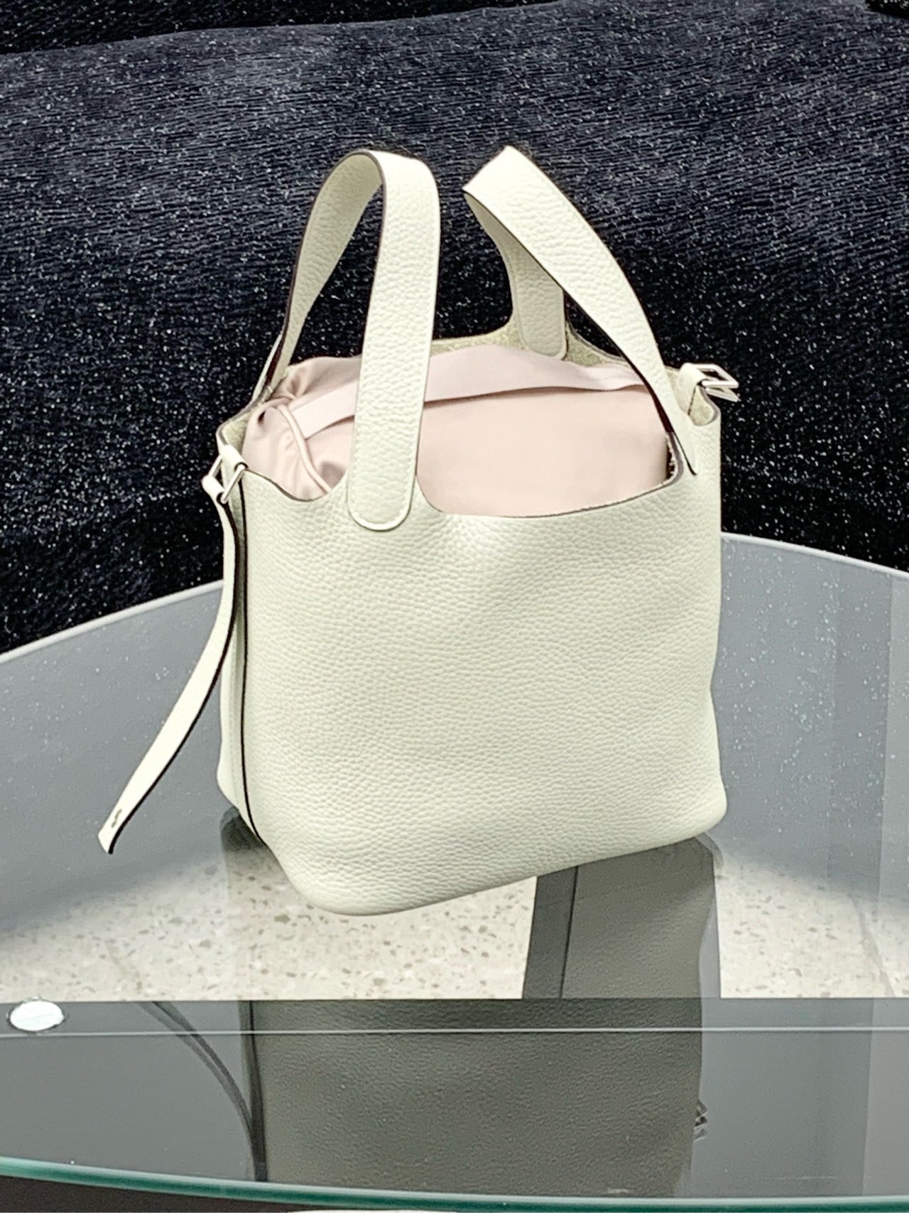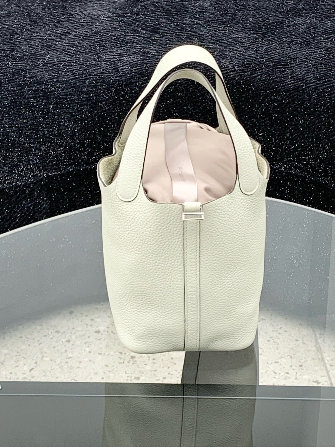 Hermes Picotin Bucket/Basket Bag 18 OW Ice Crystal Grey Handbag