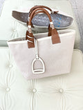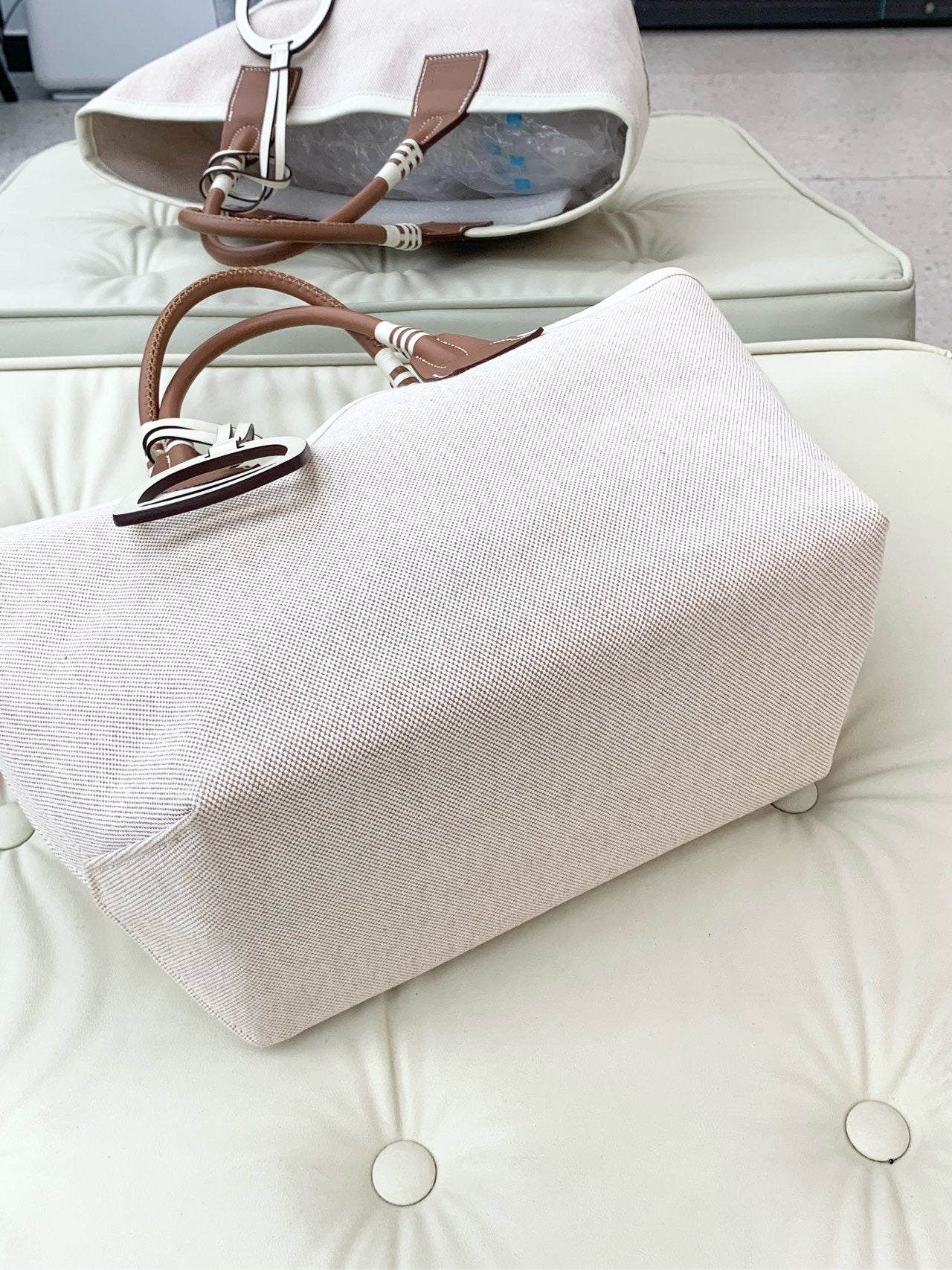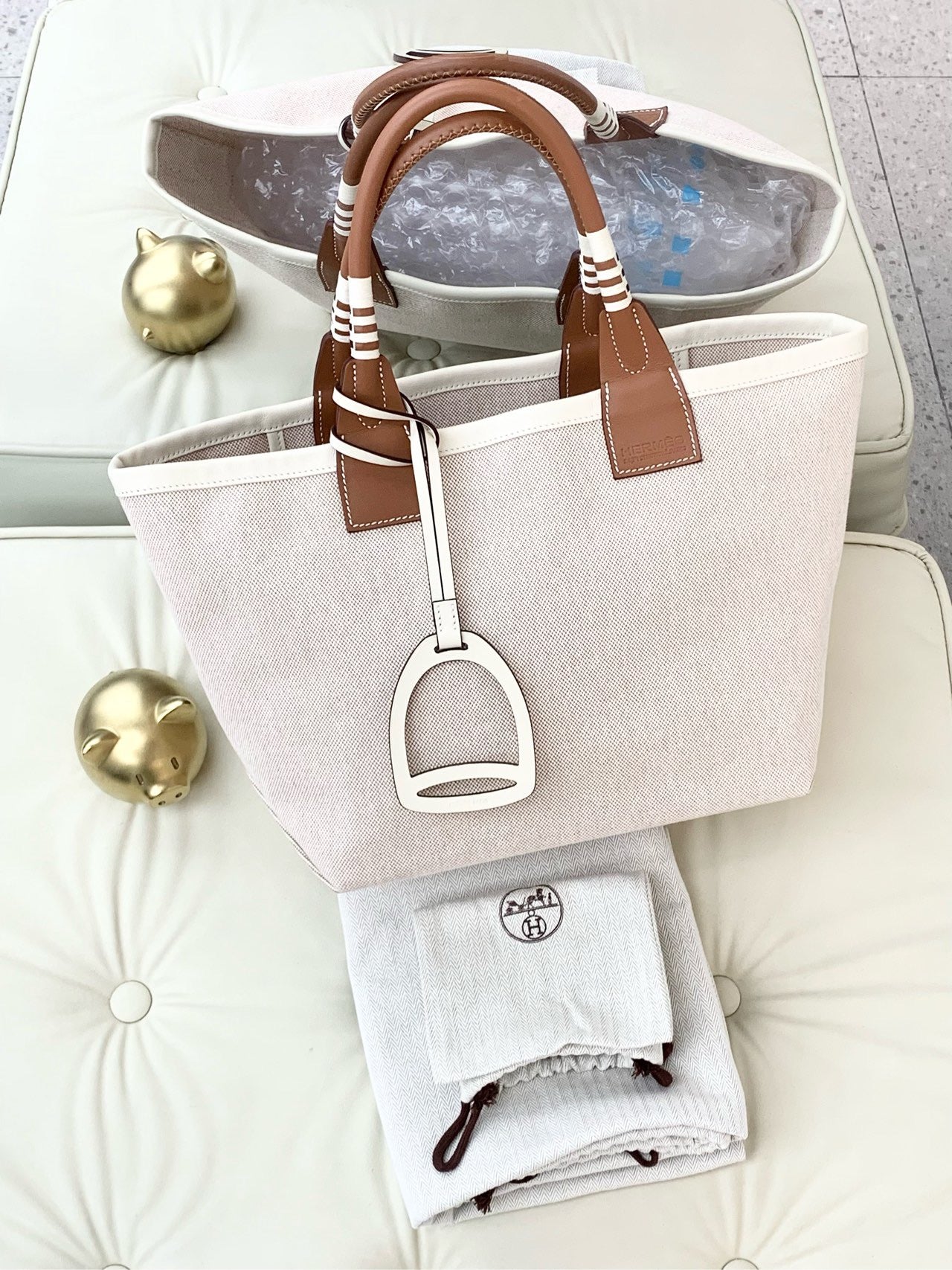 Hermès Steeple handbag, size 25, canvas H style/Swift leather, off-white/gold.