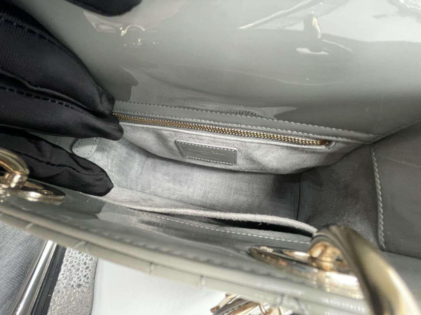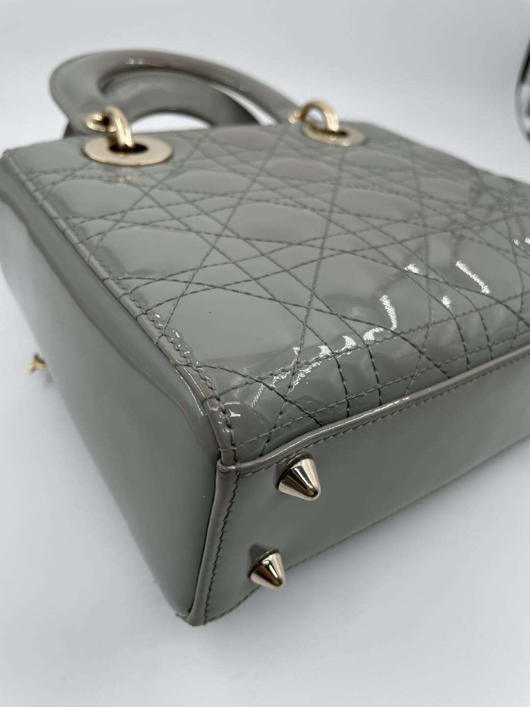 Lady dior patent leather handbag Dior Grey in Patent leather