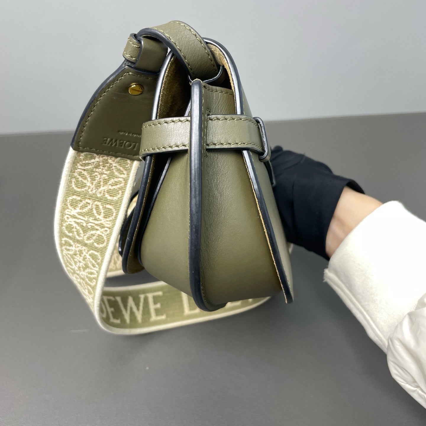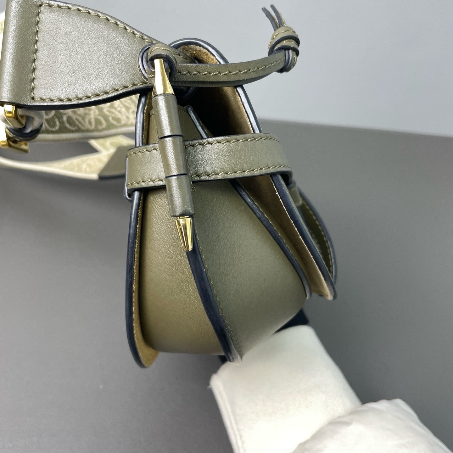 Loewe Gate Small Shoulder Bag in Khaki Leather
