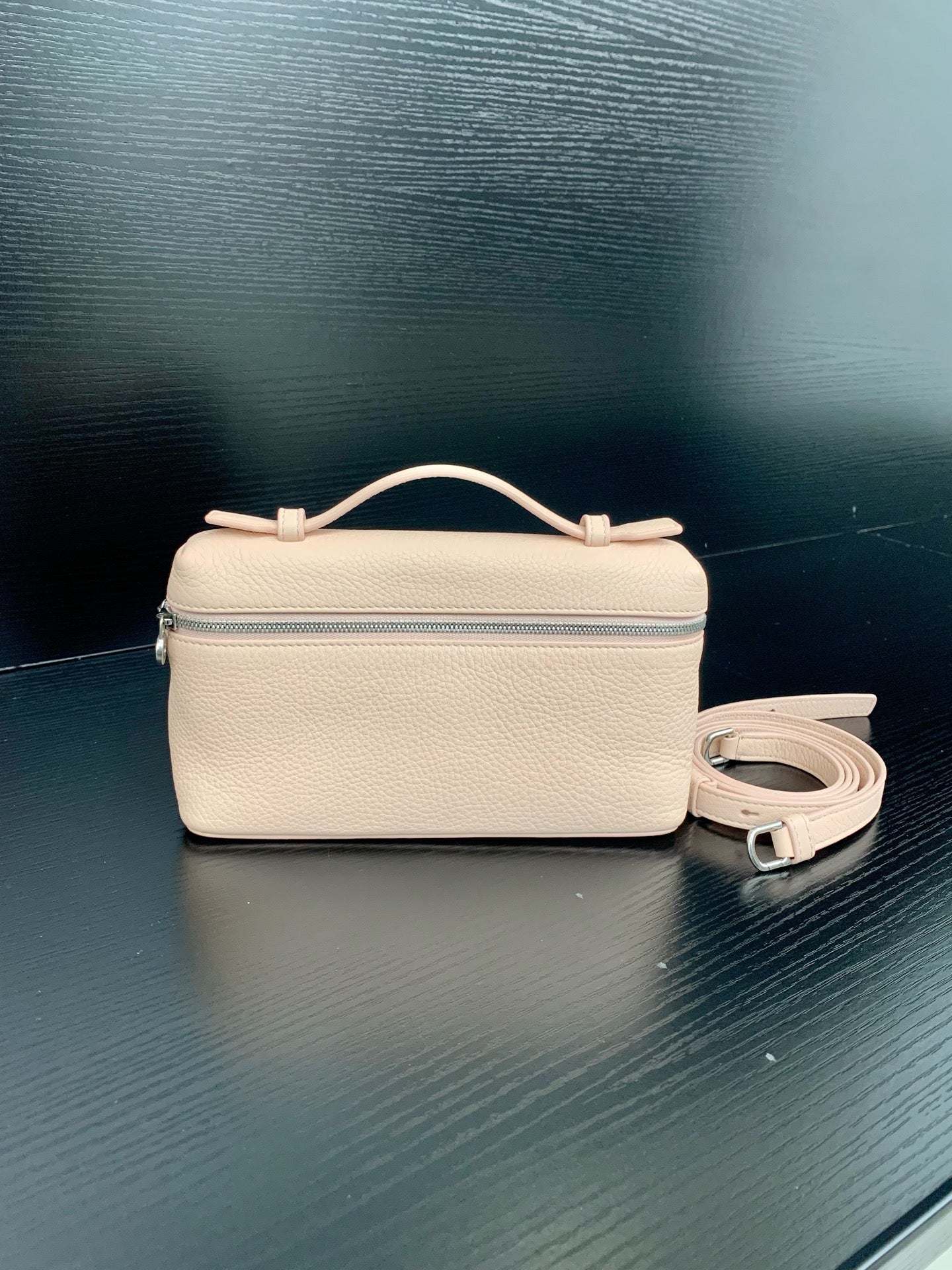 Loro Piana /LP Extrapocket L19 Pink Leather Shoulder/Crossbody Bag with Silver Buckle