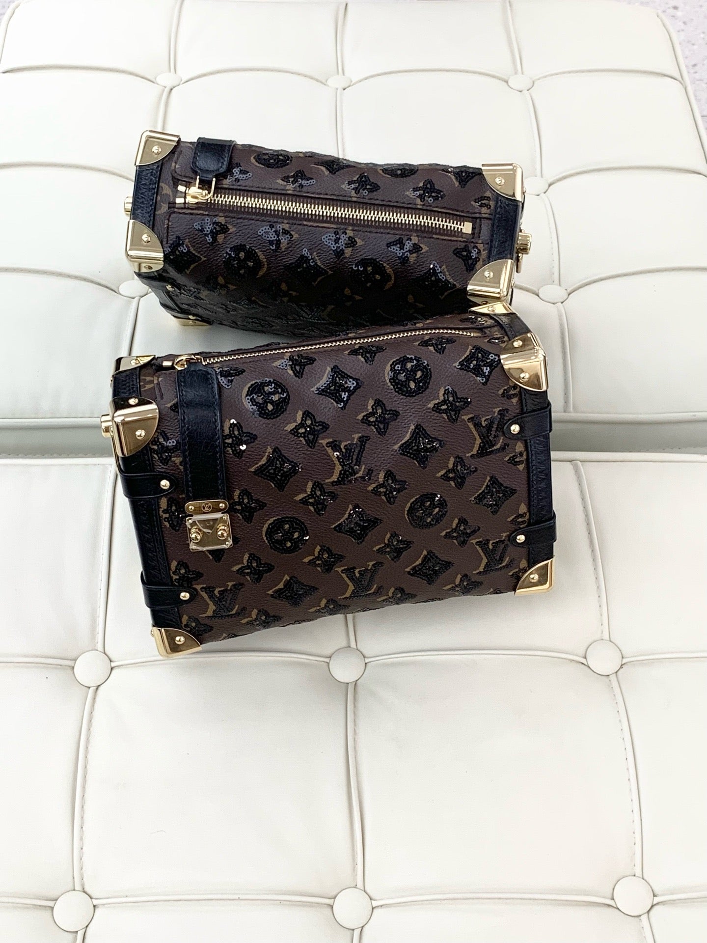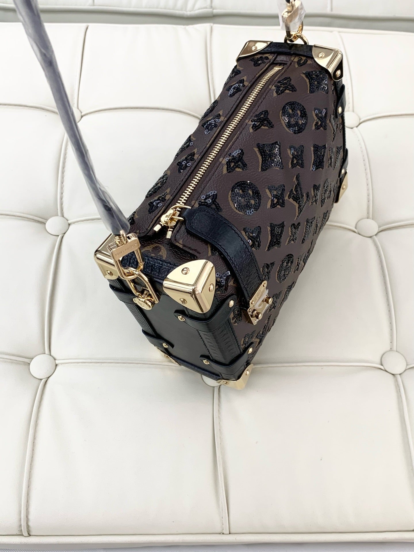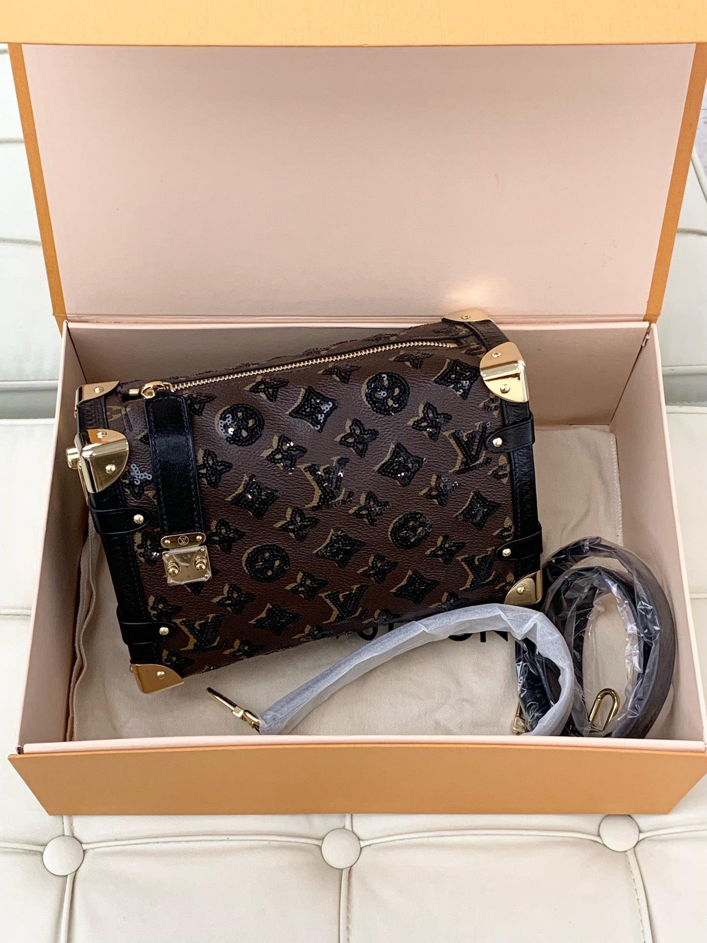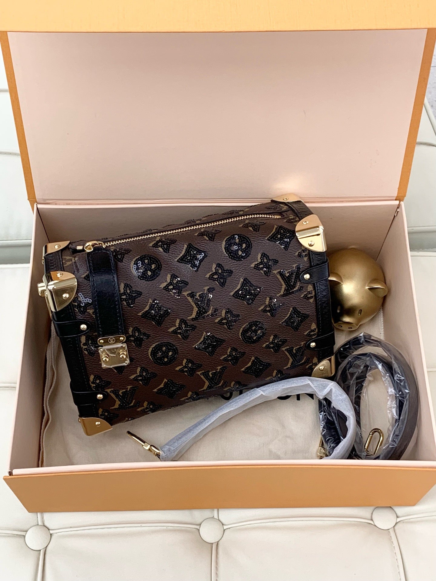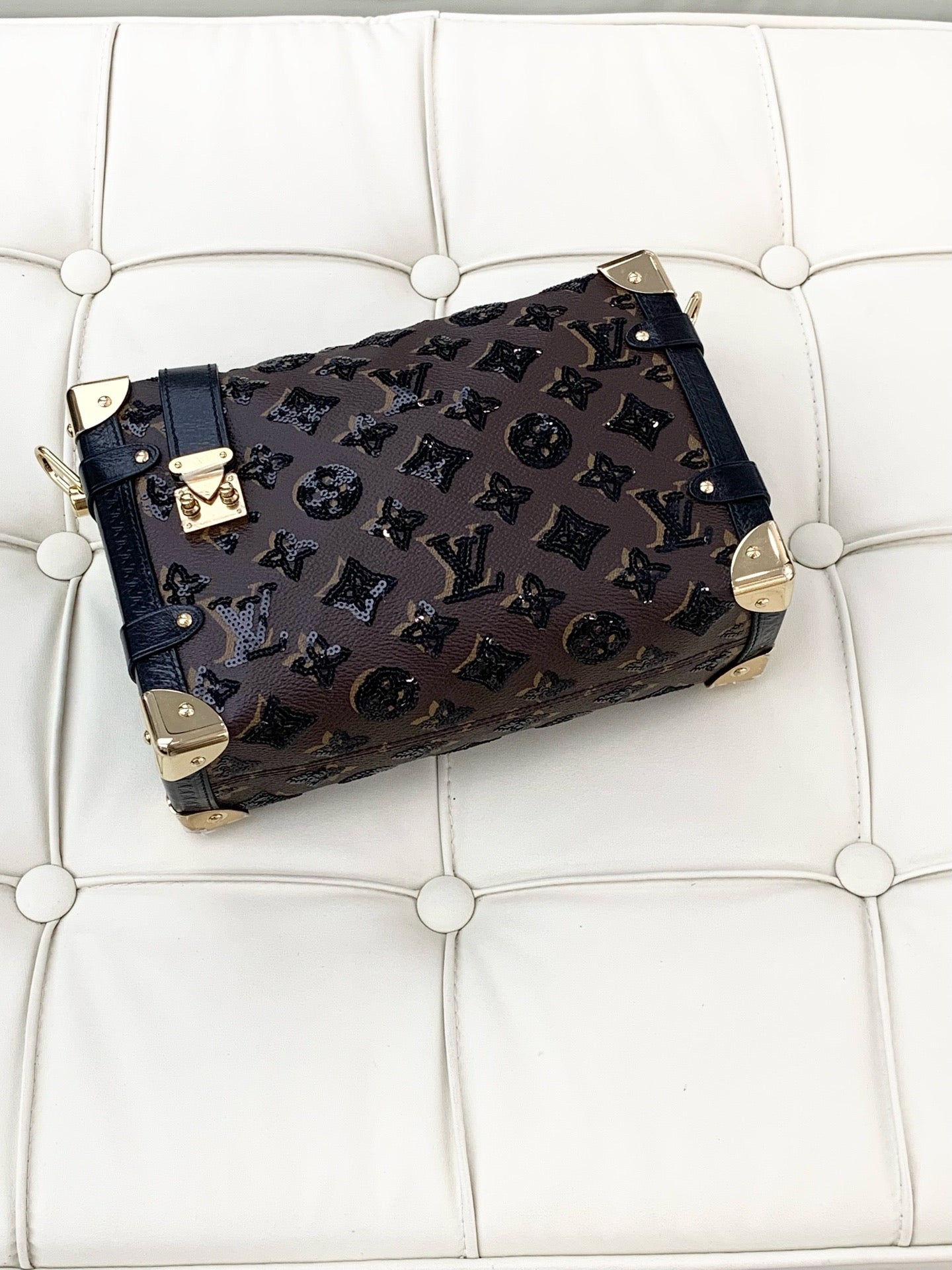Louis Vuitton Side Trunk, Medium-Sized Leather Box Bag with Gold Buckle