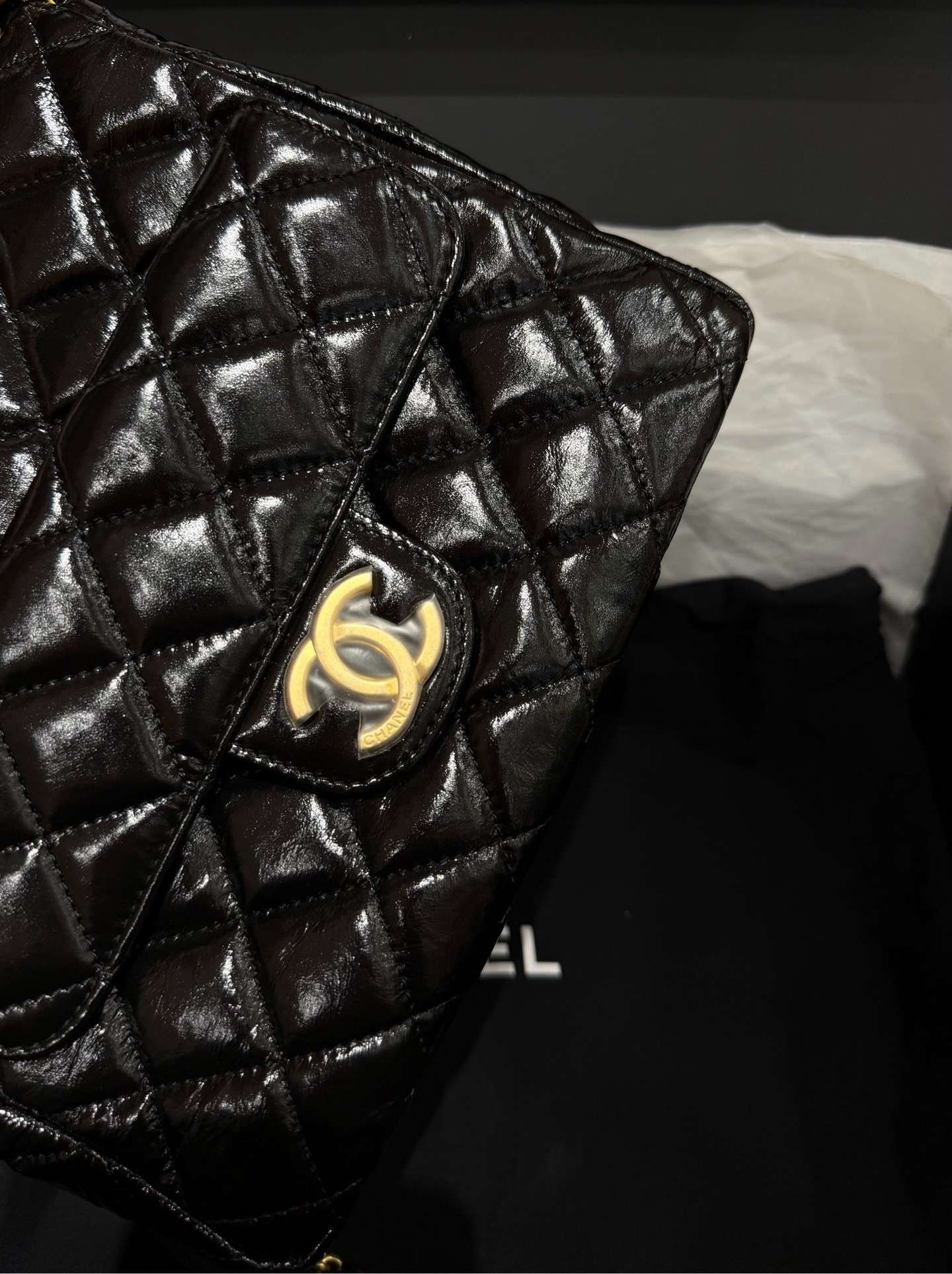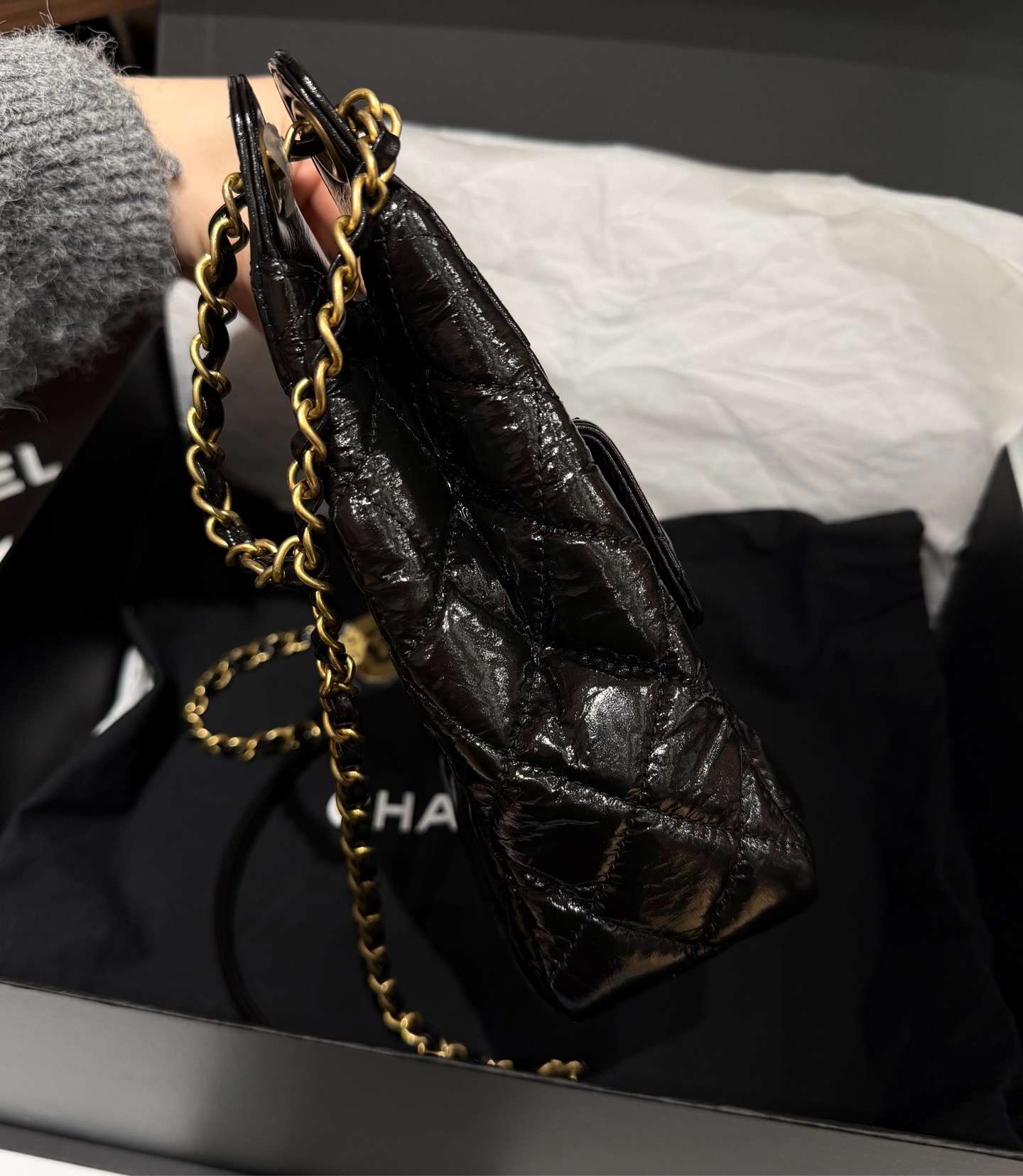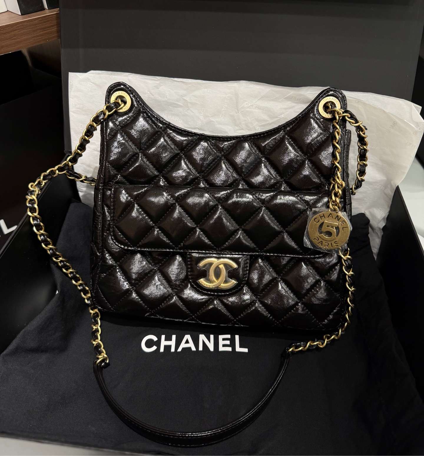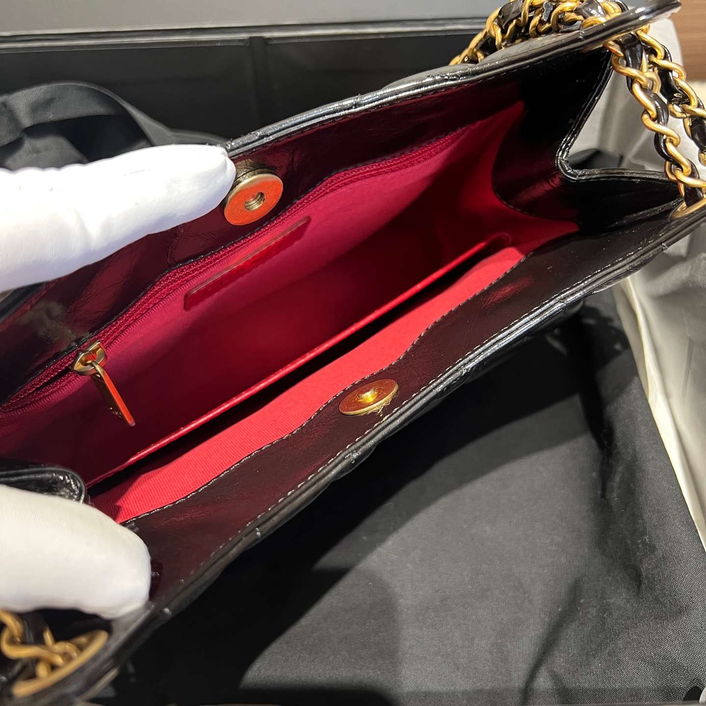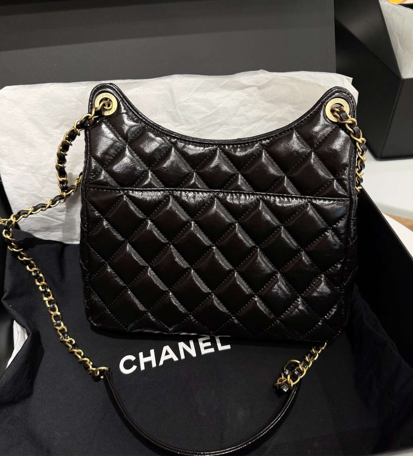 Matelasse Hobo 双链肩包,黑色皮革,金色五金配件