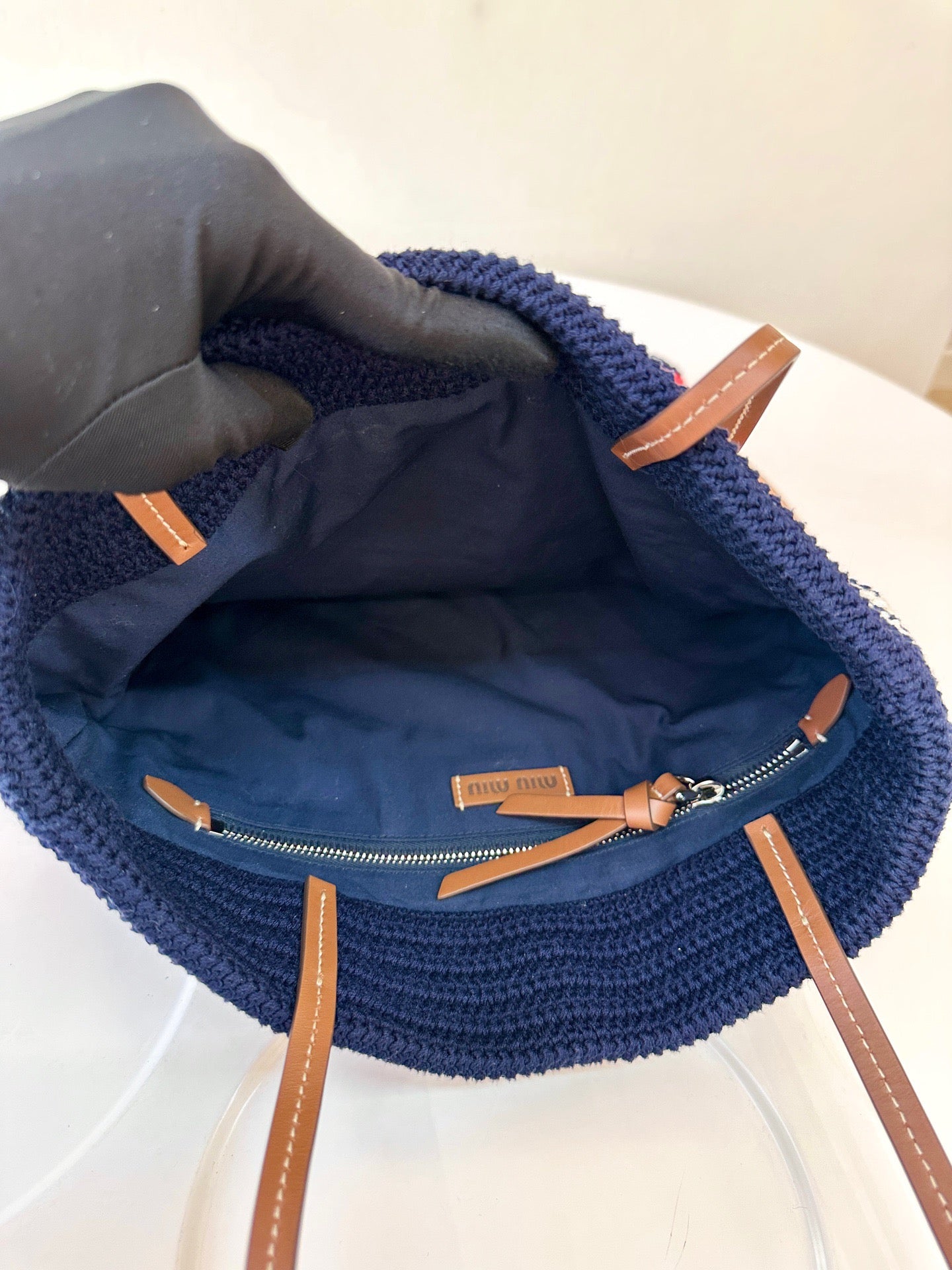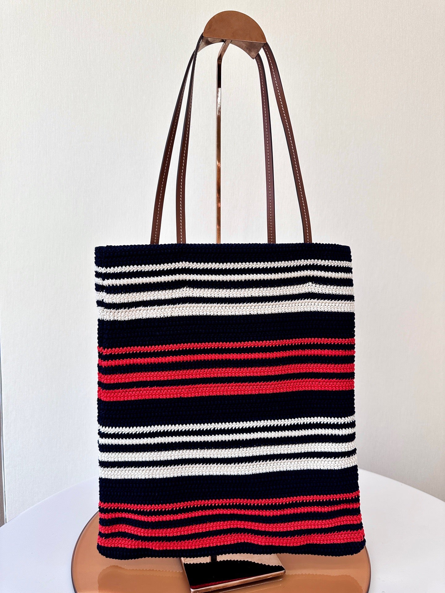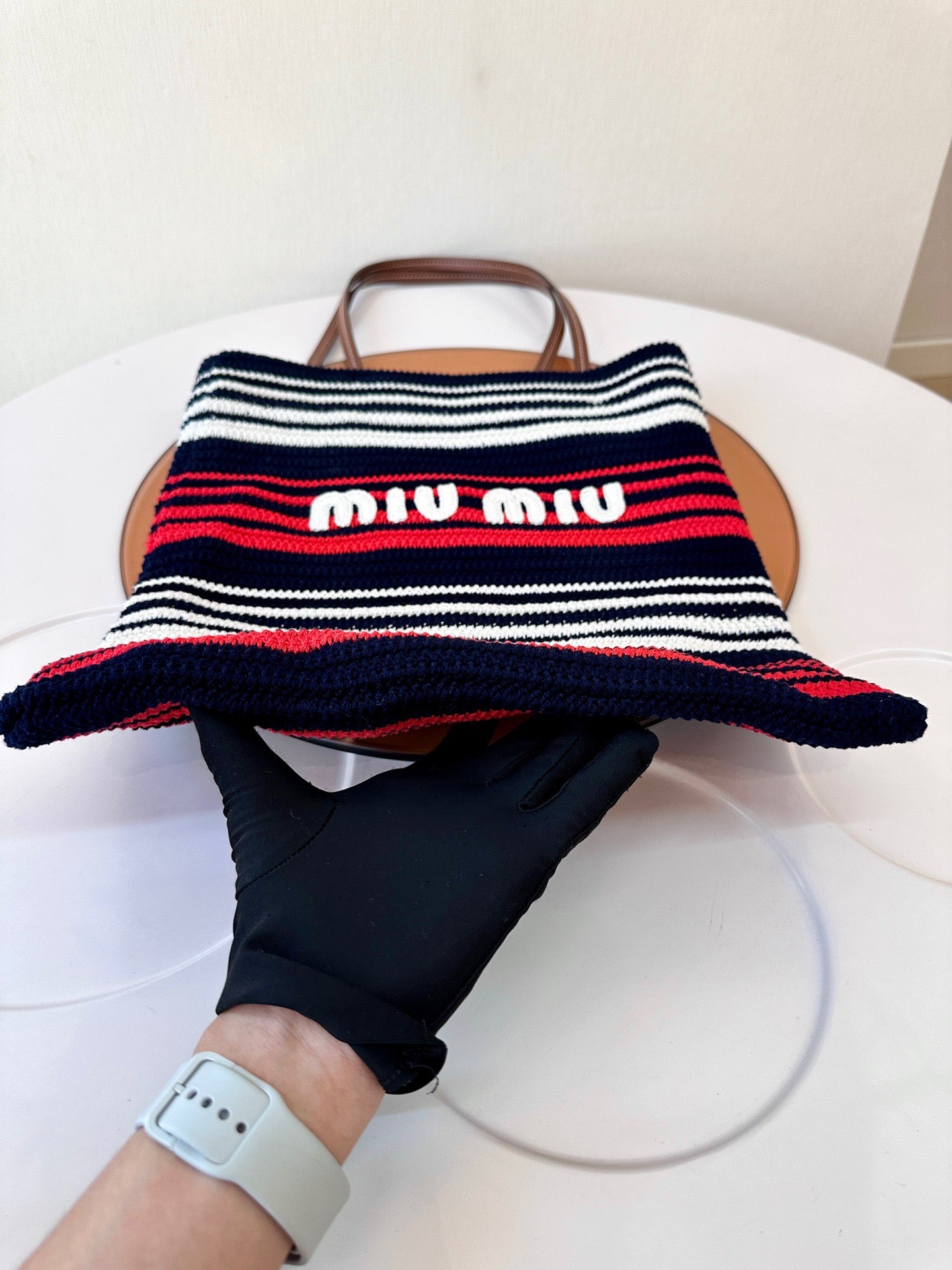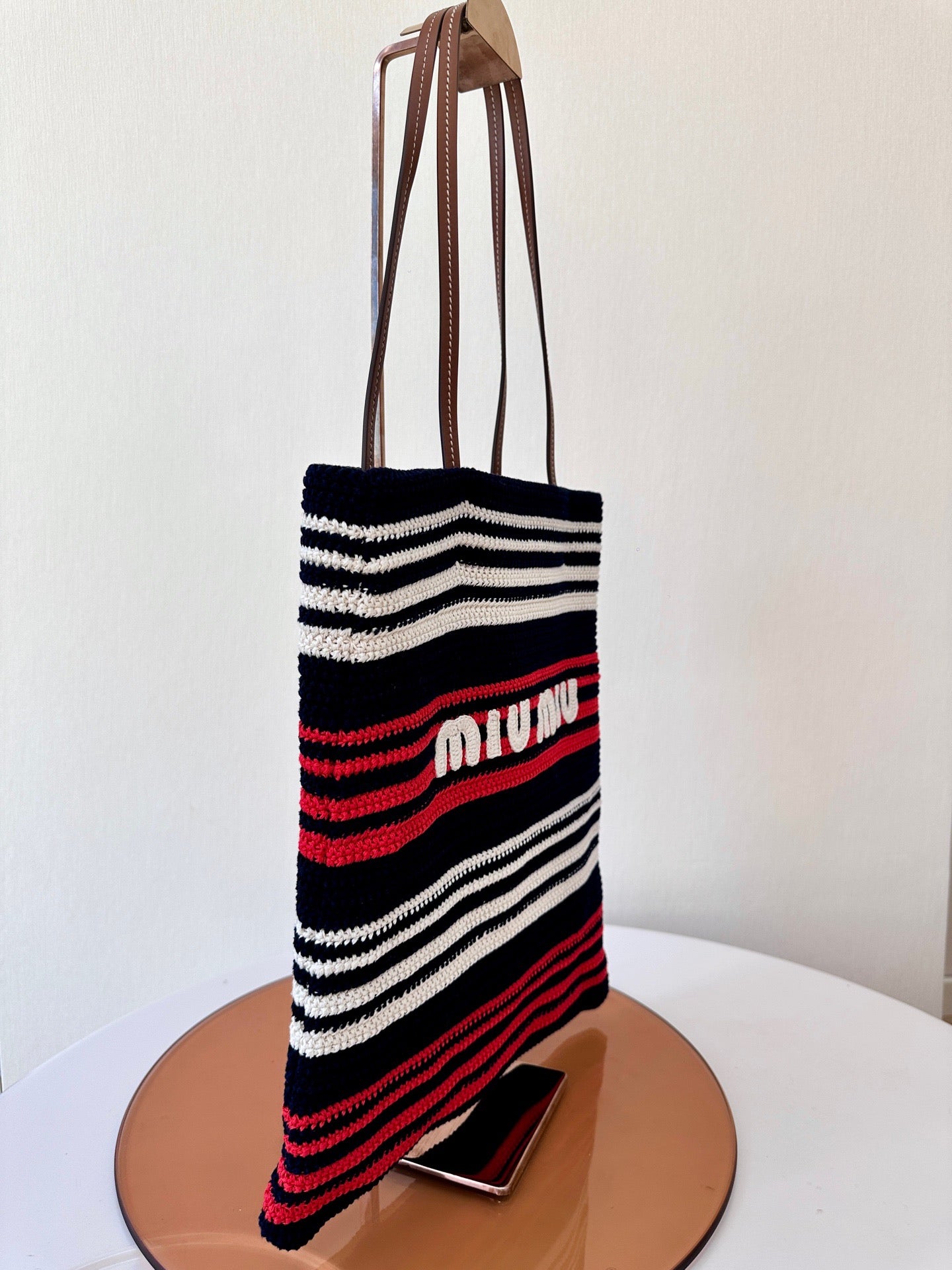 Miu Miu Striped Crochet Handbag in Blue, Red, and White