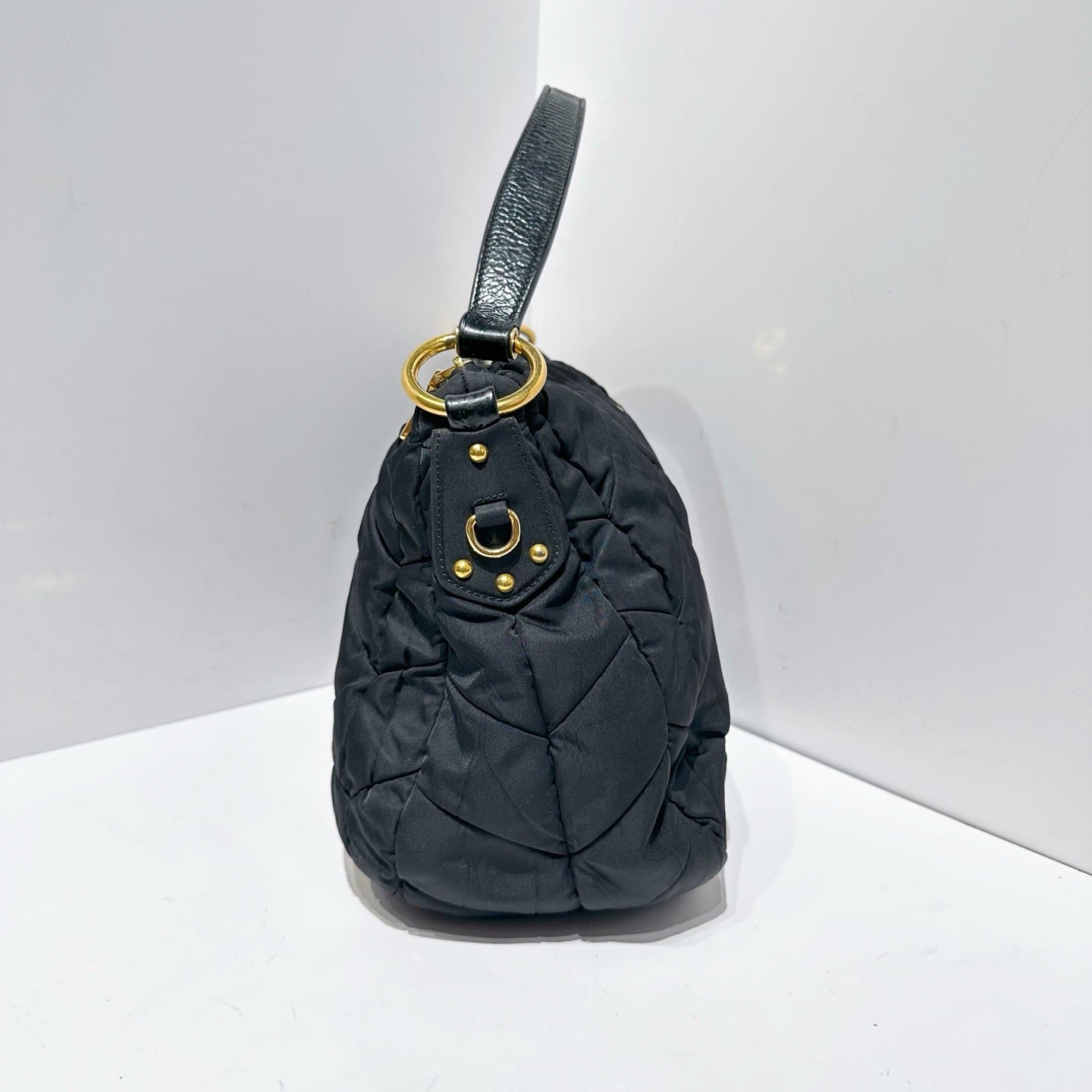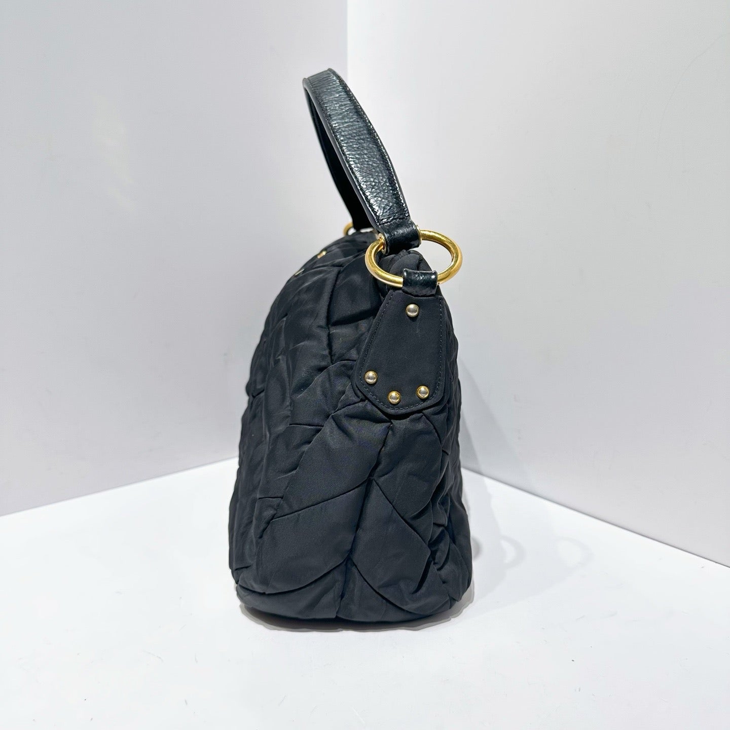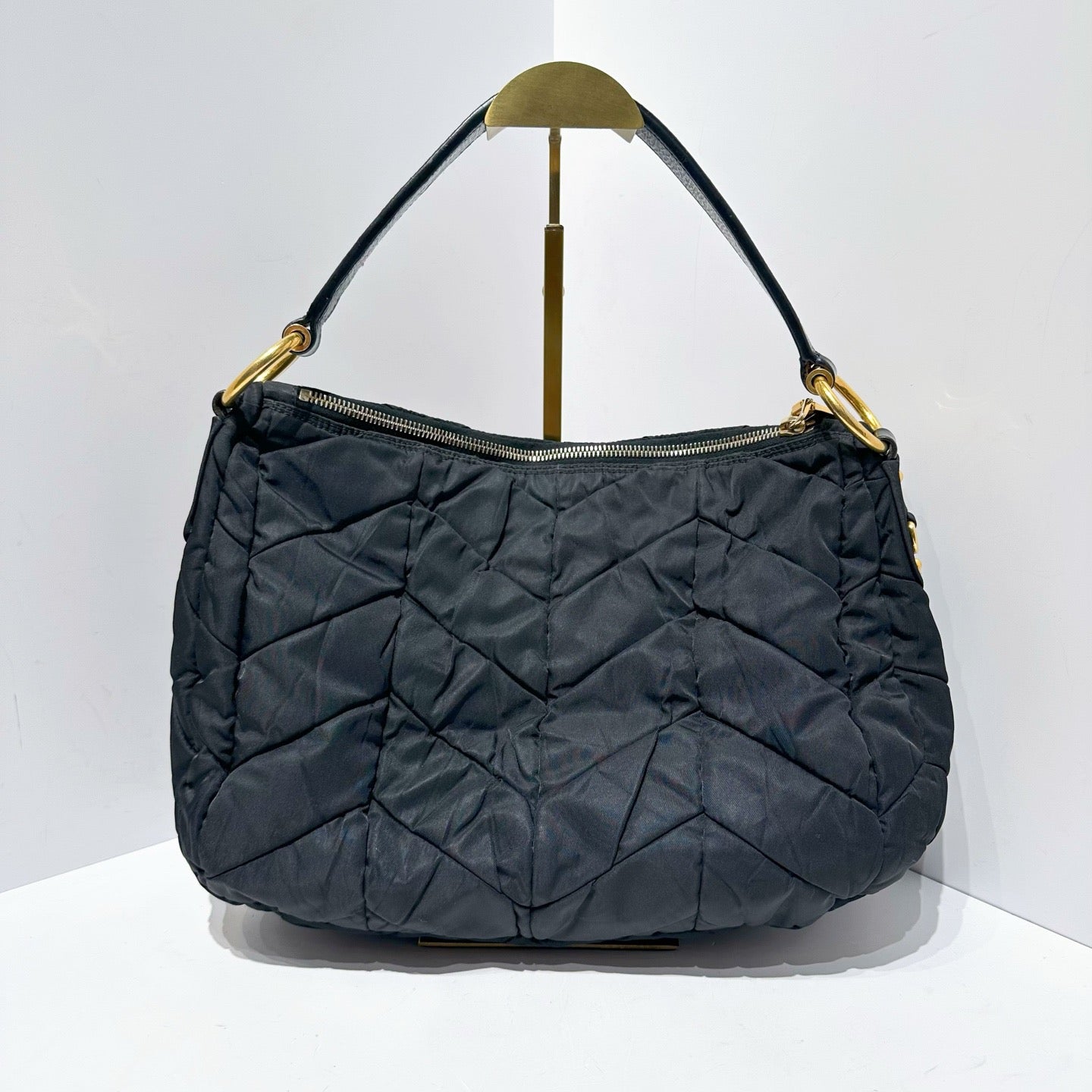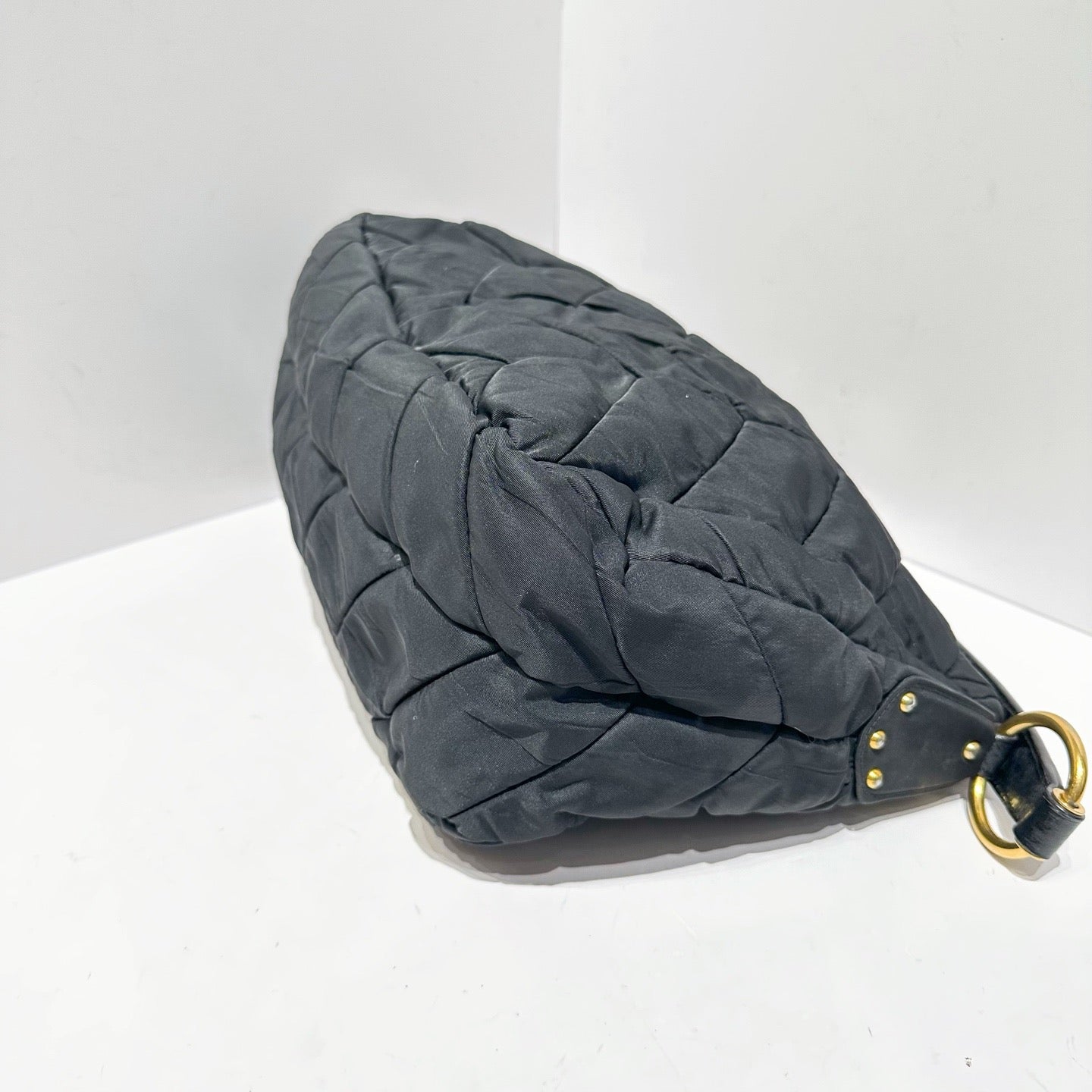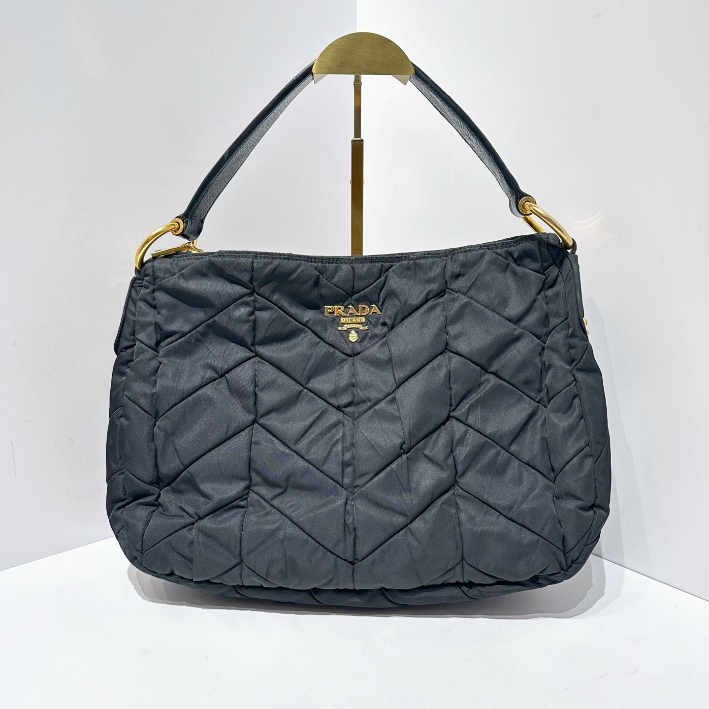 Prada Black Herringbone Quilted Nylon Shoulder Bag