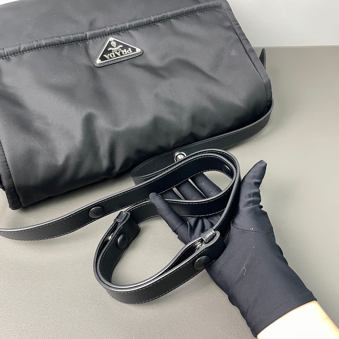 Prada Cini Re-Nylon Large Nylon Shoulder/Crossbody Messenger Bag (Black)