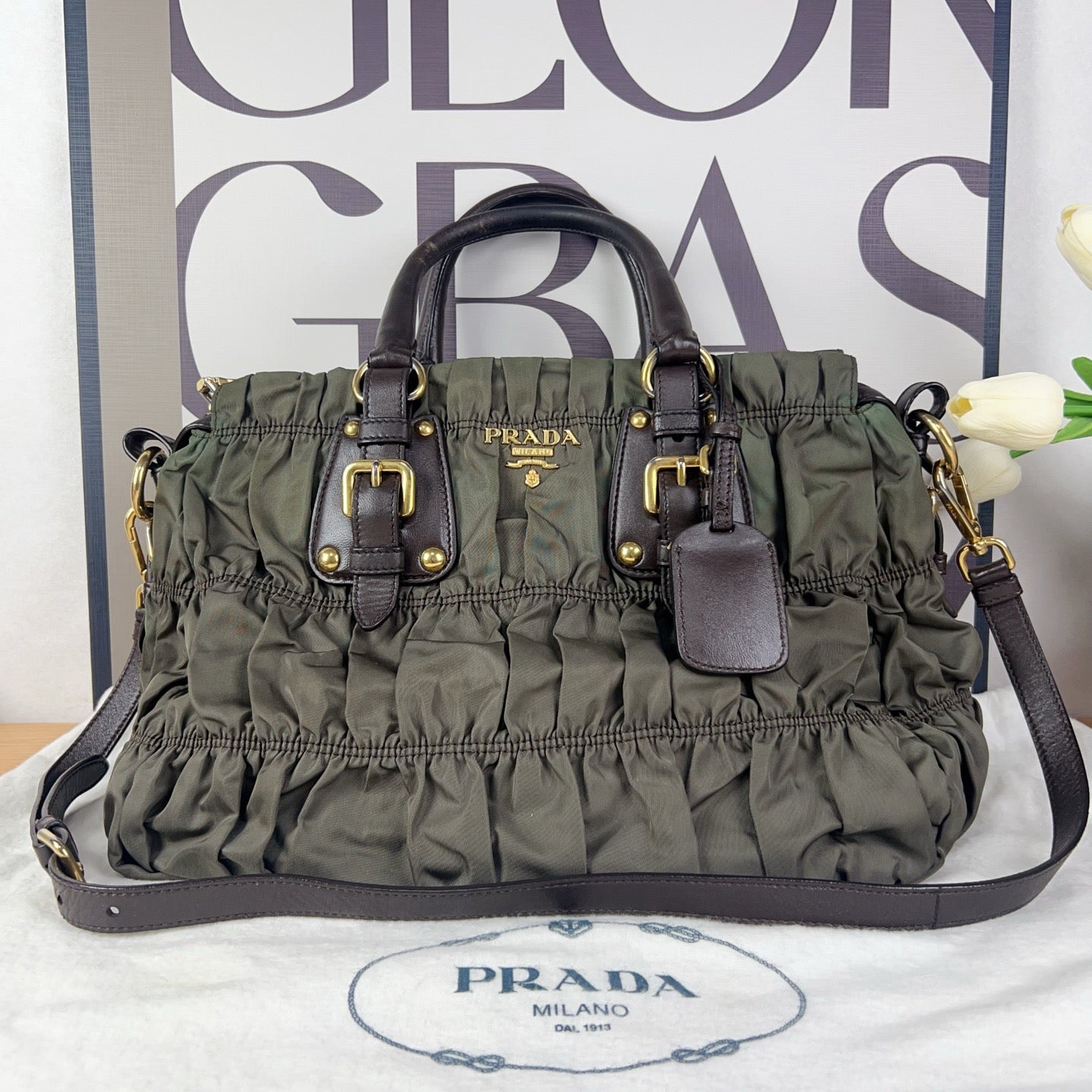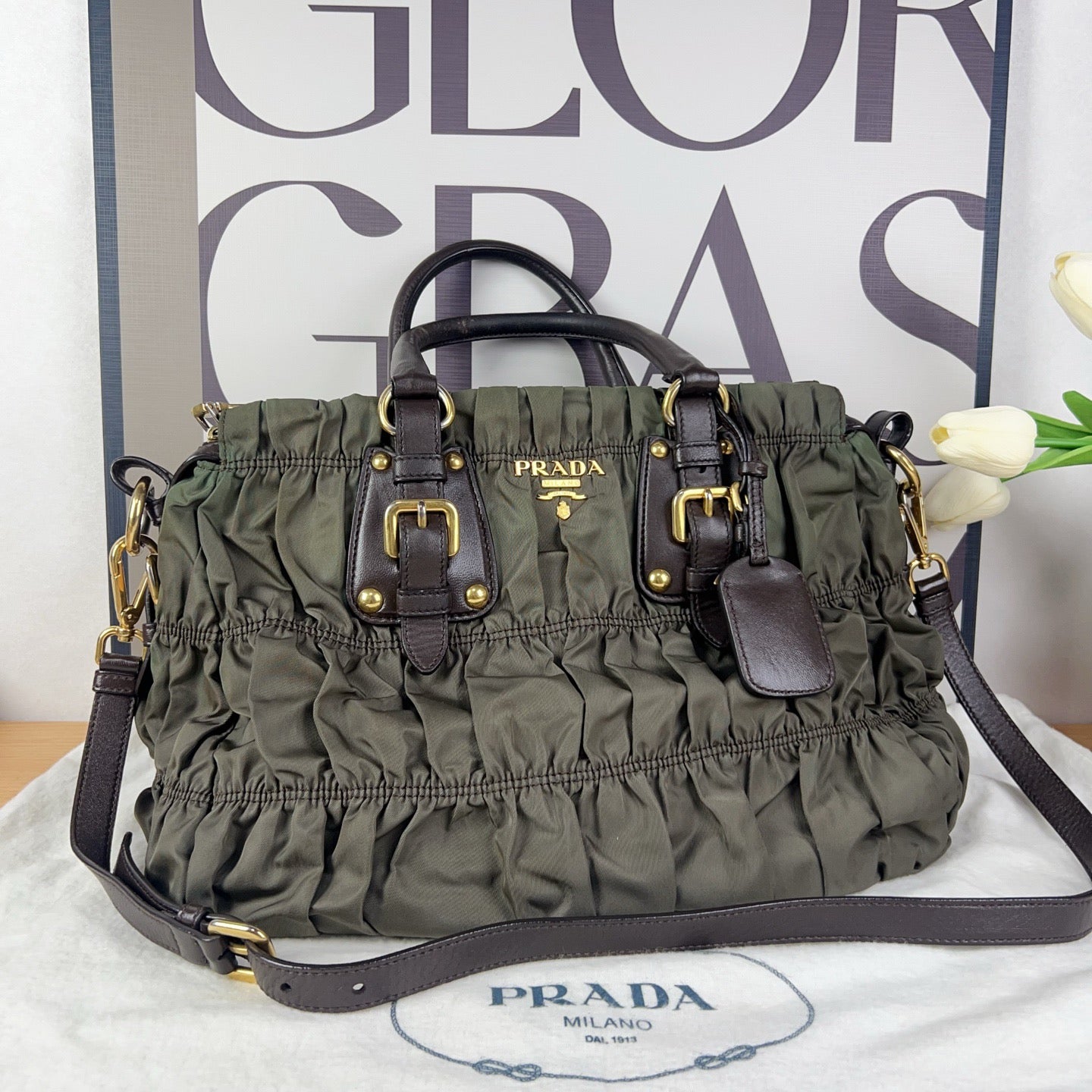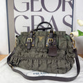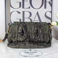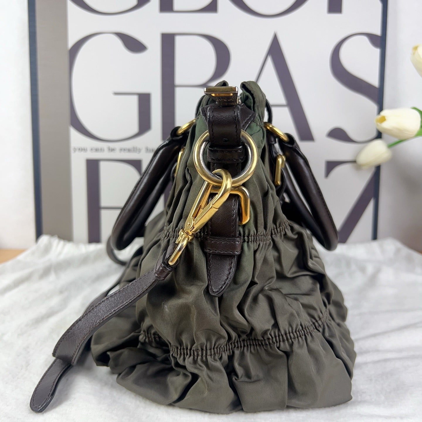 PRADA Green Nylon Pleated Reversible Shoulder Bag