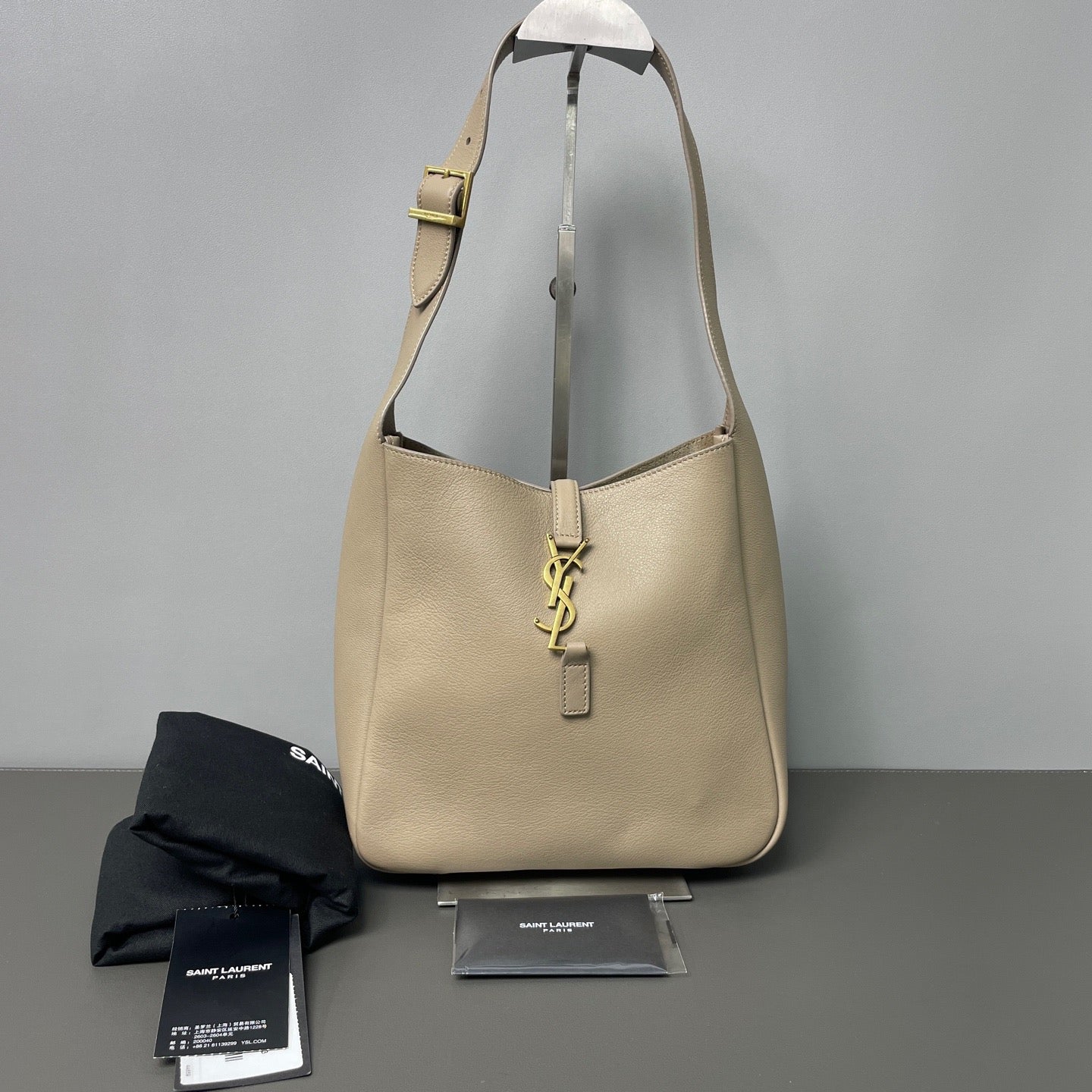 Saint Laurent Small Grained Calfskin Le 5 A 7 Soft Shoulder Bag, Grey-Brown