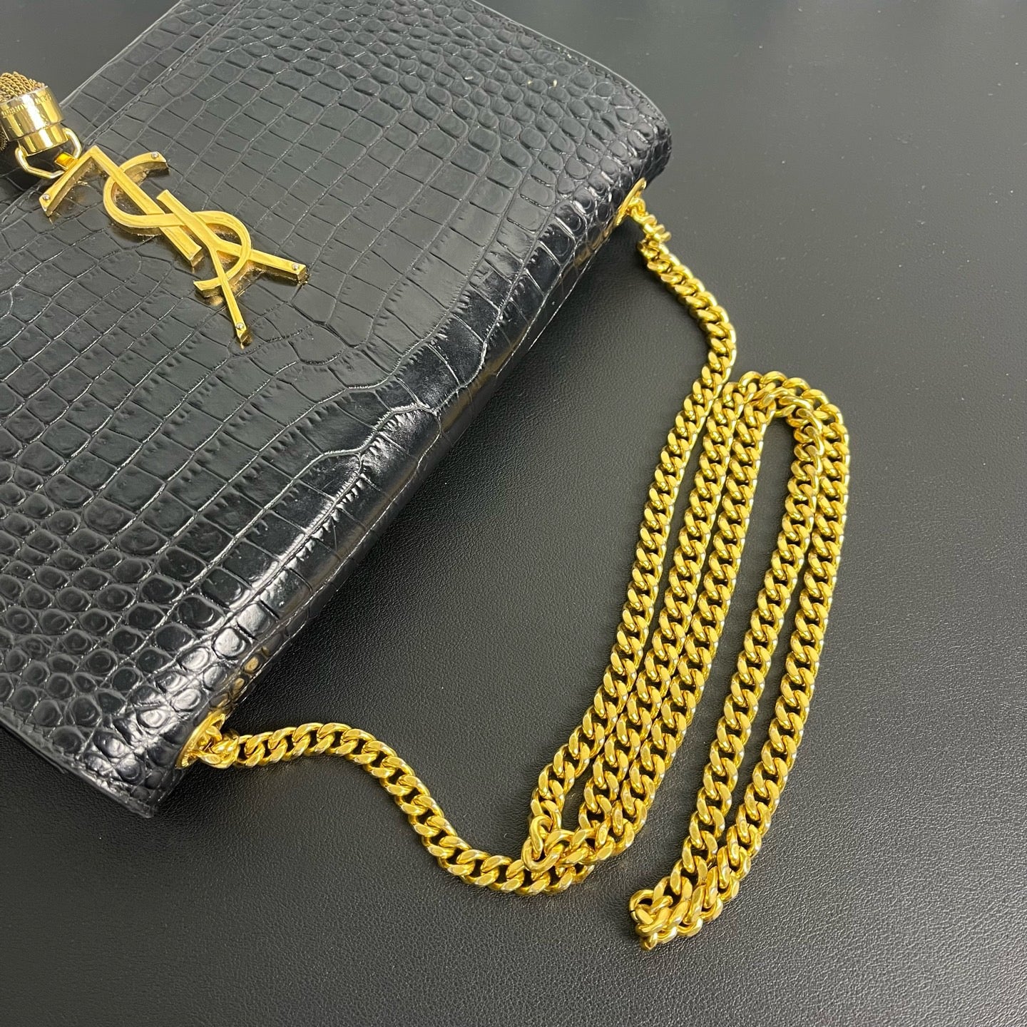 YSL Pompom Kate Leather Crossbody Bag