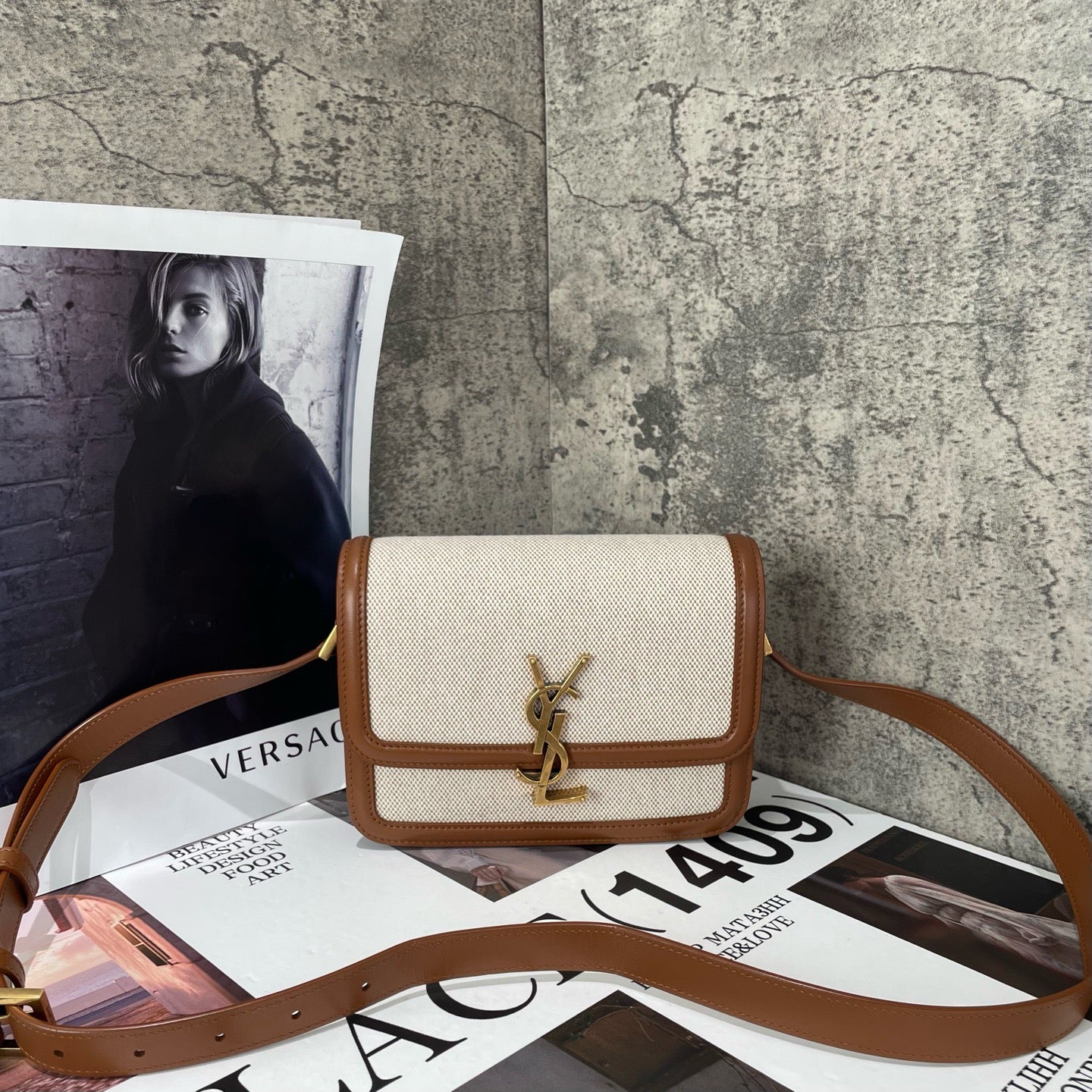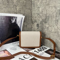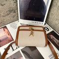 YSL Saint Laurent Solferino White Canvas with Gold and Brown Trim - Tofu Bag/Box